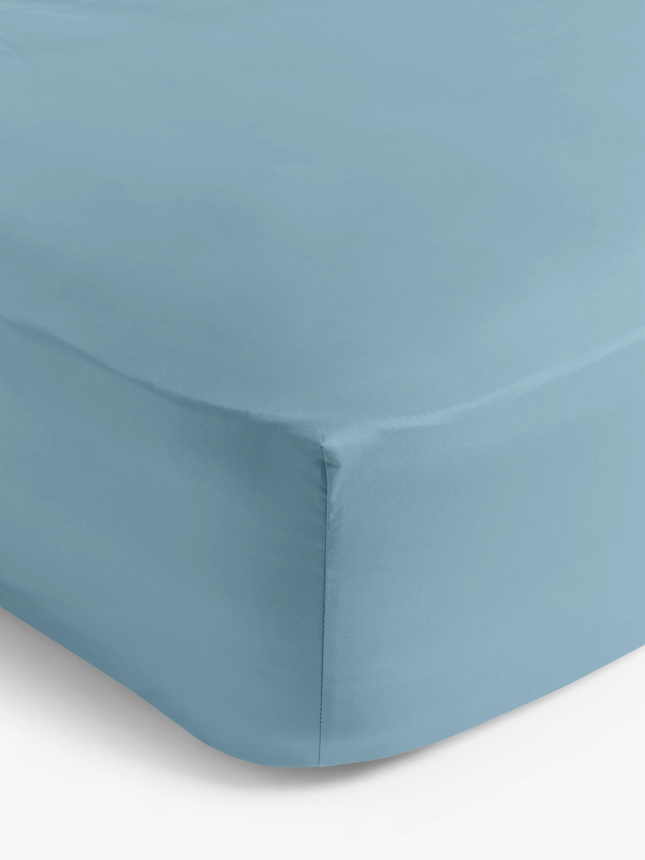 John LewisCrisp & Fresh Egyptian Cotton Percale 200 Thread Count Fitted Sheet, Lake Blue