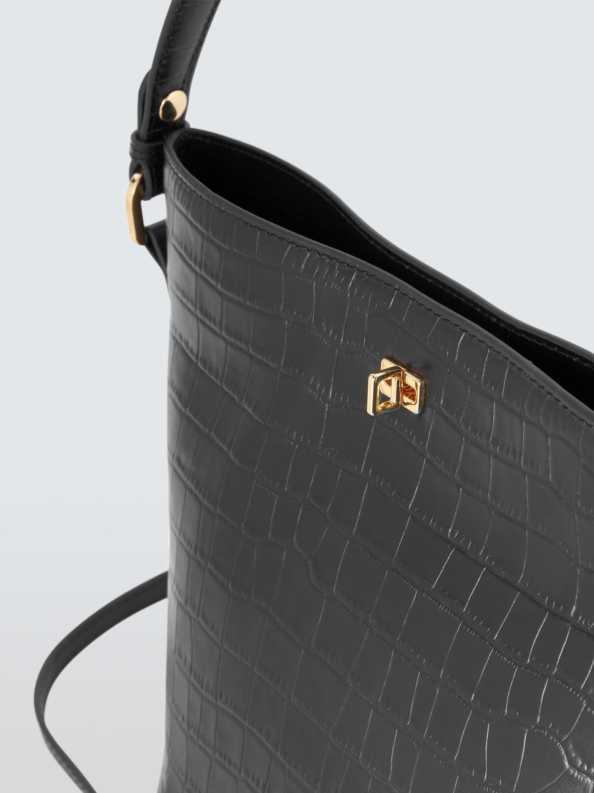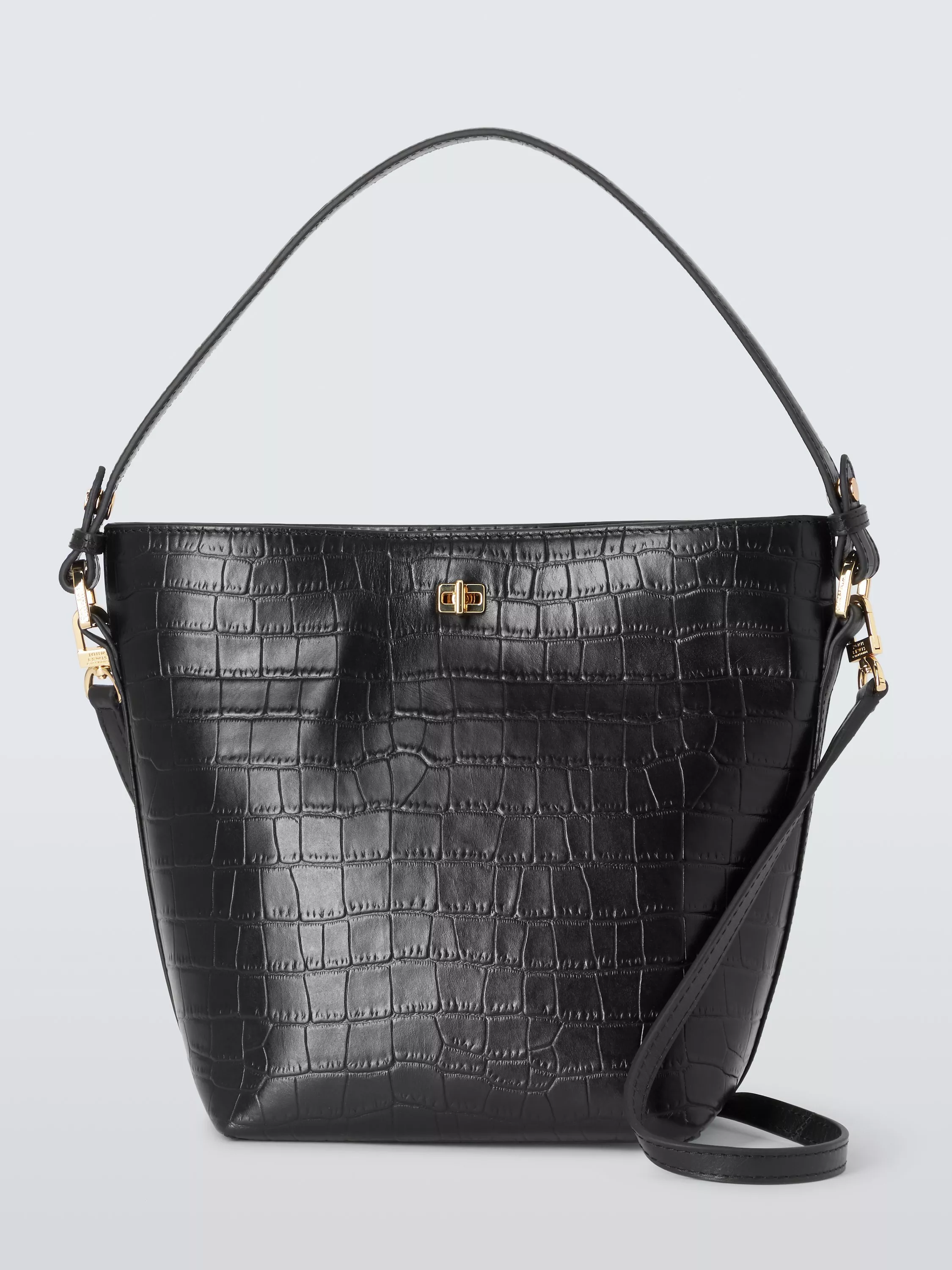 John LewisCroc Effect Leather Turn Lock Bucket Bag