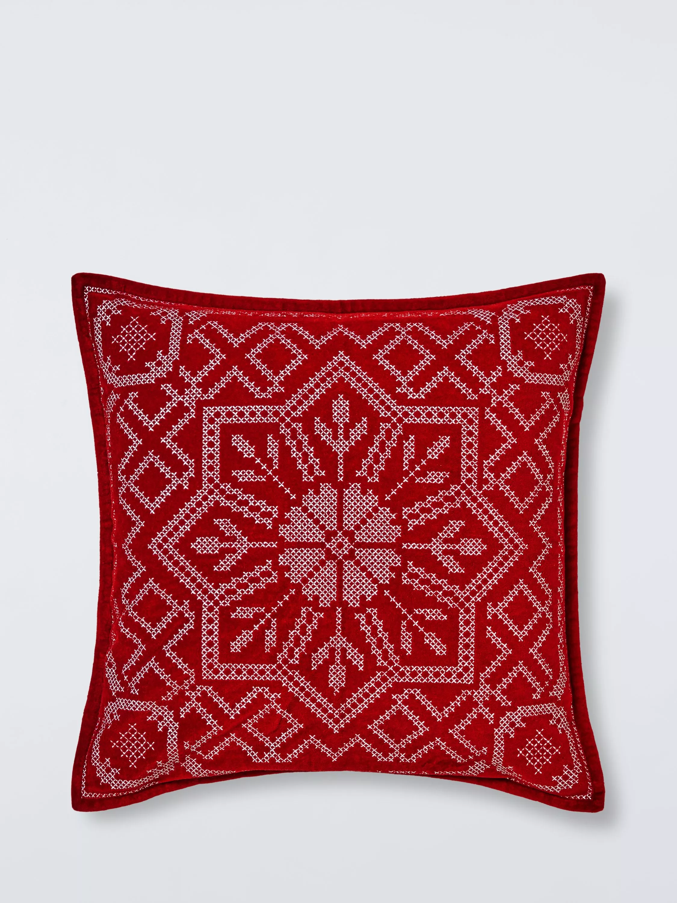 John LewisCross Stitch Snowflake Cushion, Red