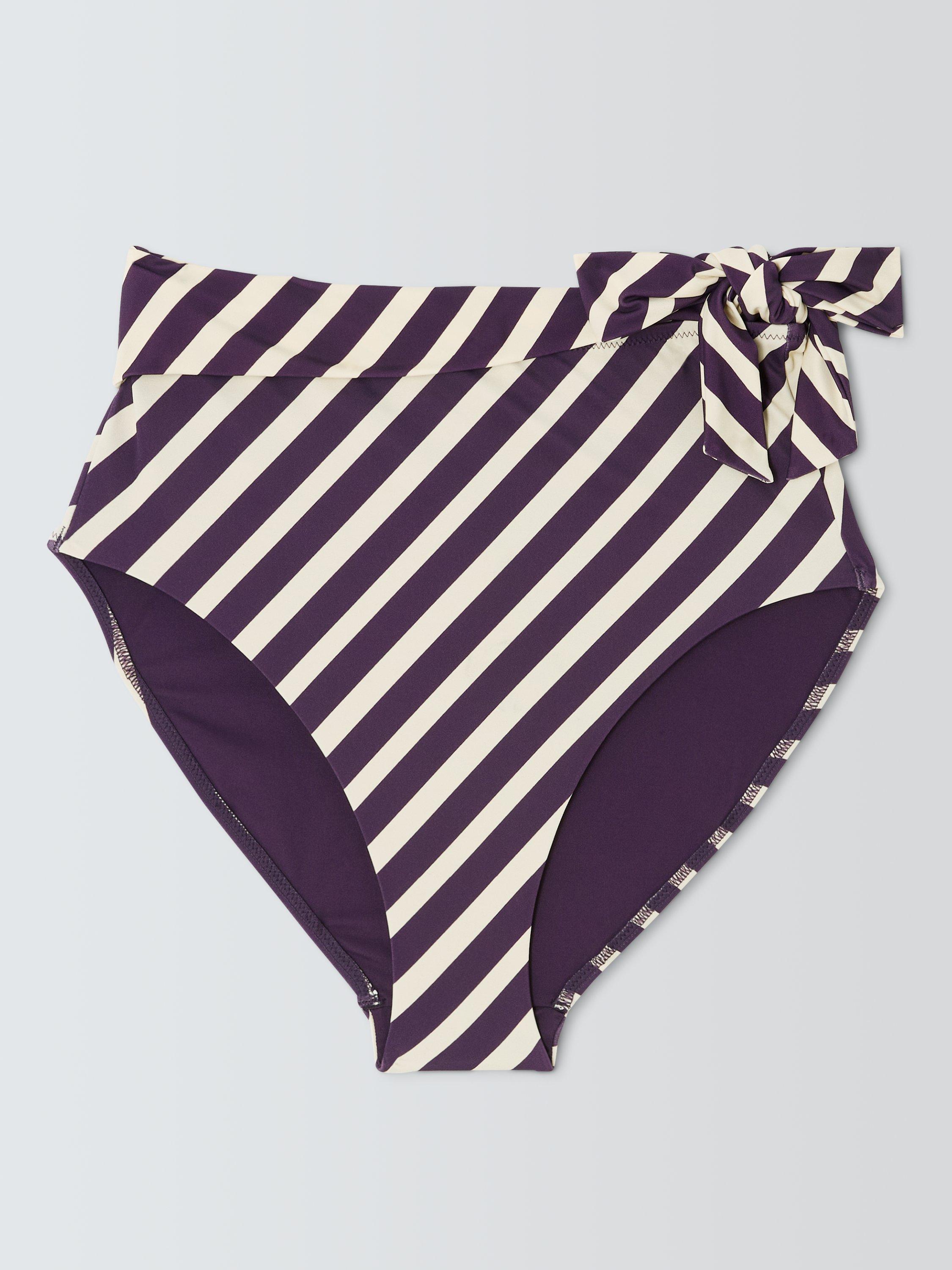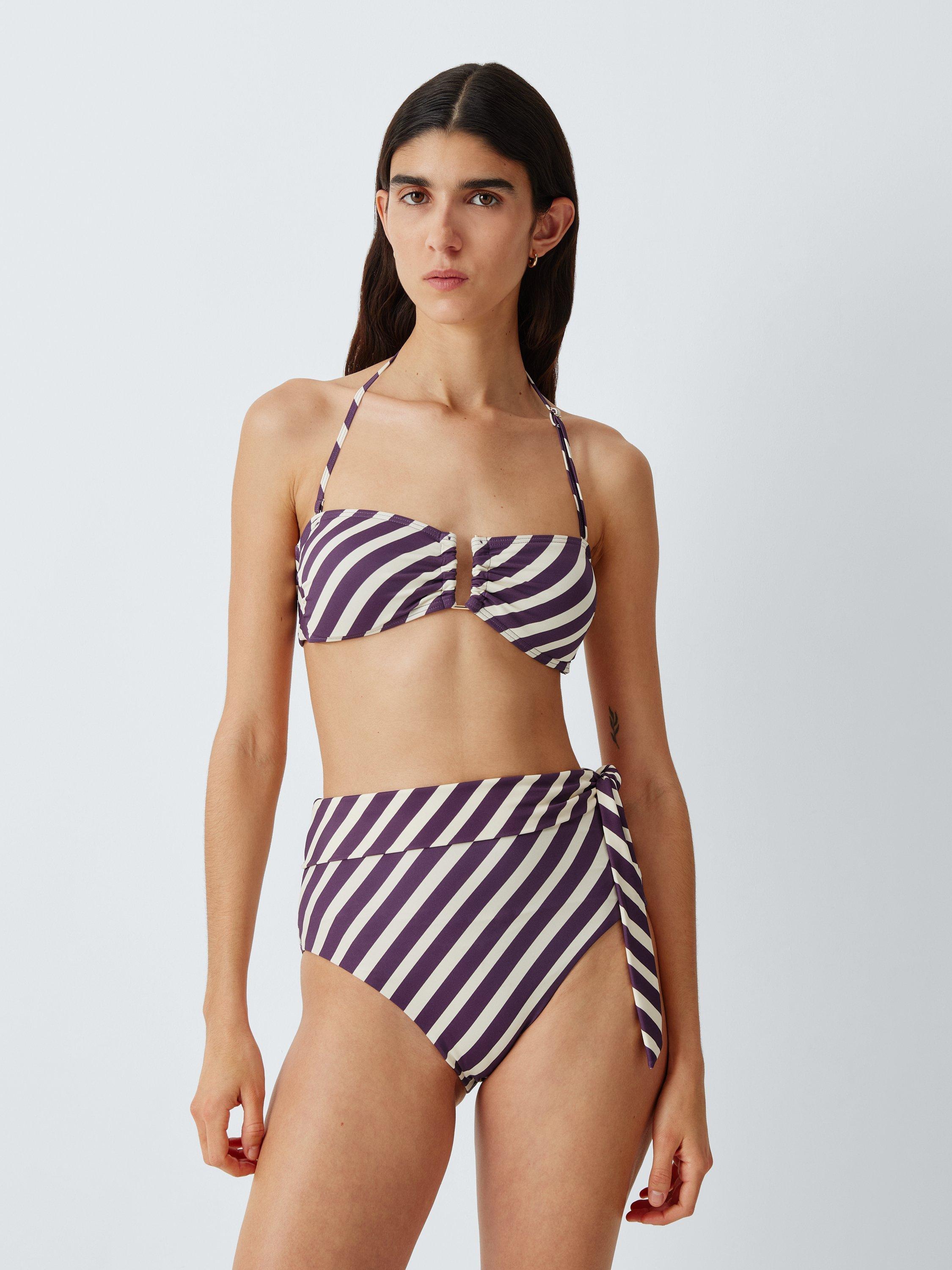Reconfiguring the classical nautical look, our Cruz swimwear features diagonal stripes that work with the contours of your body. These fully lined bikini bottoms are in a flattering high-waist silhouette for confident tummy coverage and support. The adjustable sash adds a customizable touch to the fit. Pair with the matching bandeau bikini top to complete the look.