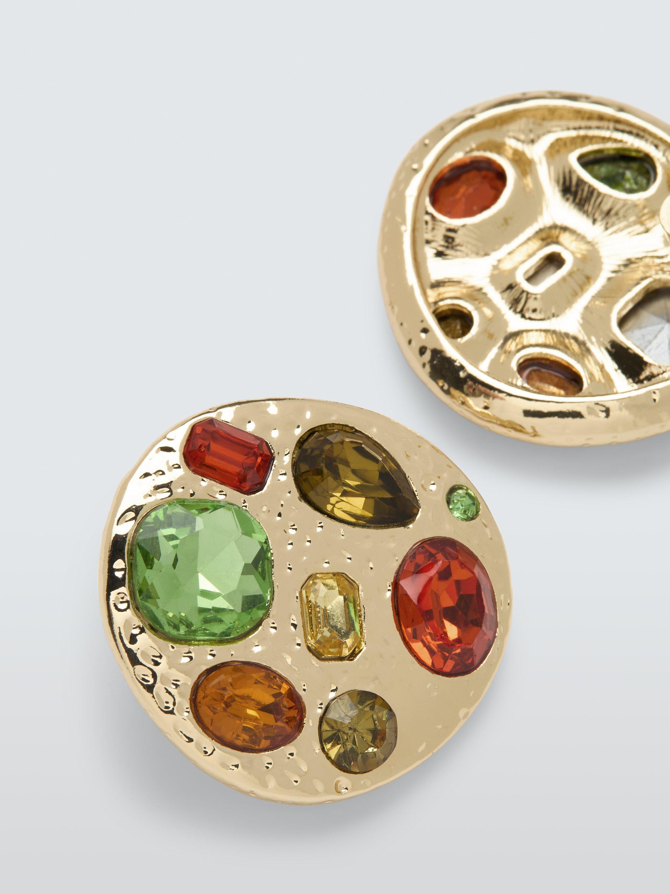 Boasting an array of coloured crystals and a tactile finish, these circular studs have a retro-inspired feel. For pierced ears only.