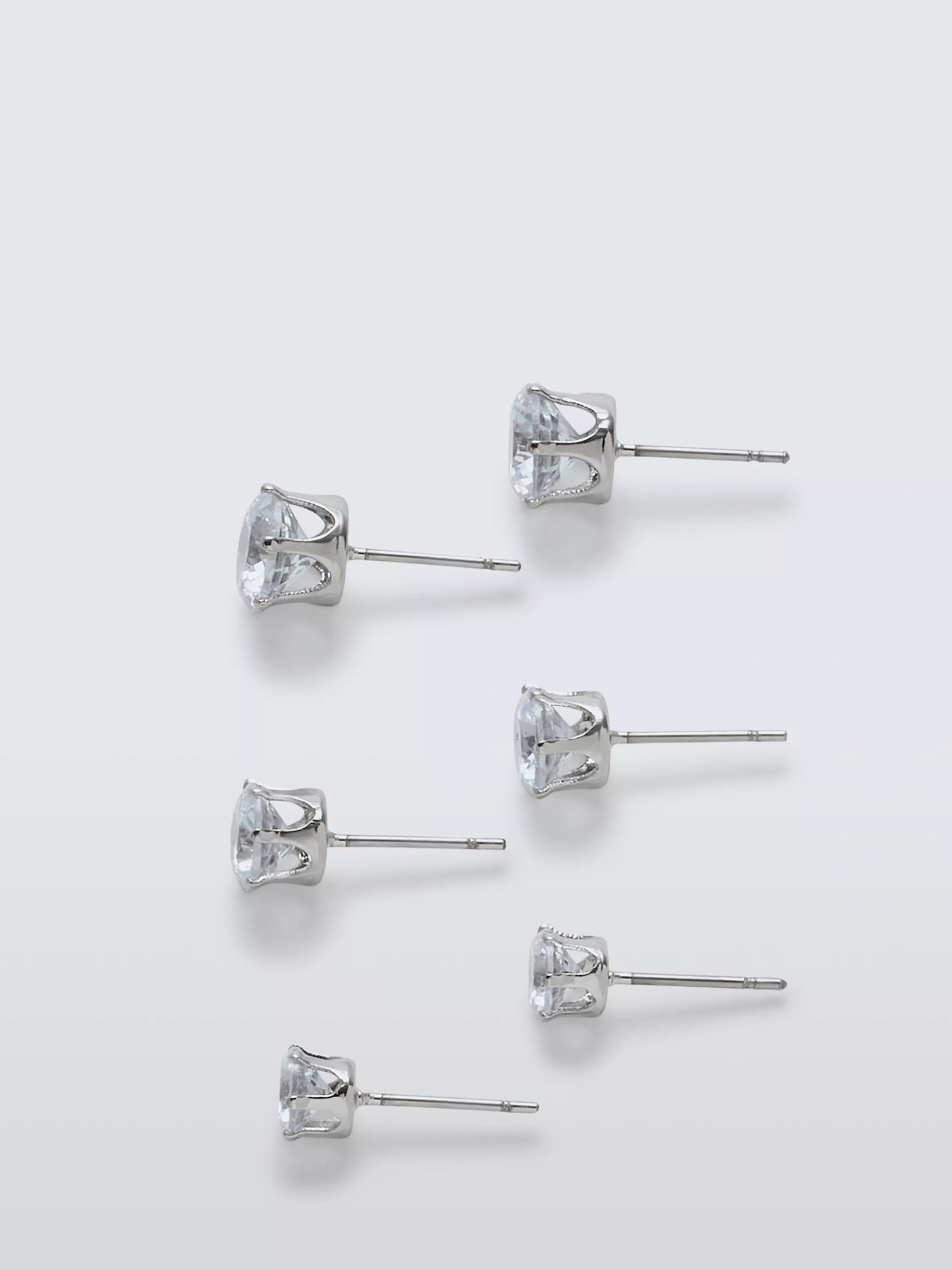 Stack and sparkle with our three pack of cubic zirconia studs. They're suitable for pierced ears only.