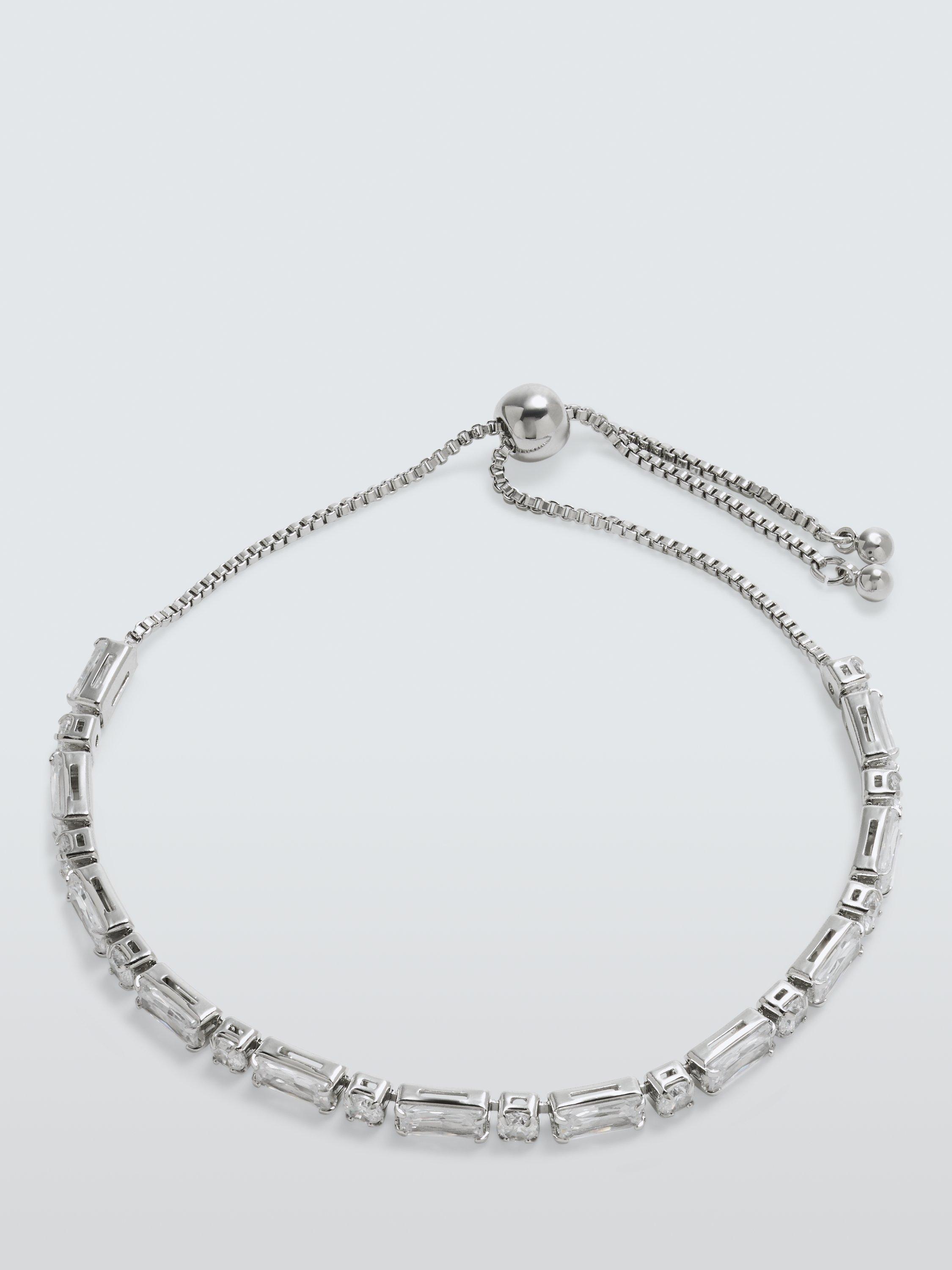 This delicate baguette cut clear cubic zirconia bracelet has a toggle fastening that adjusts for the perfect fit.