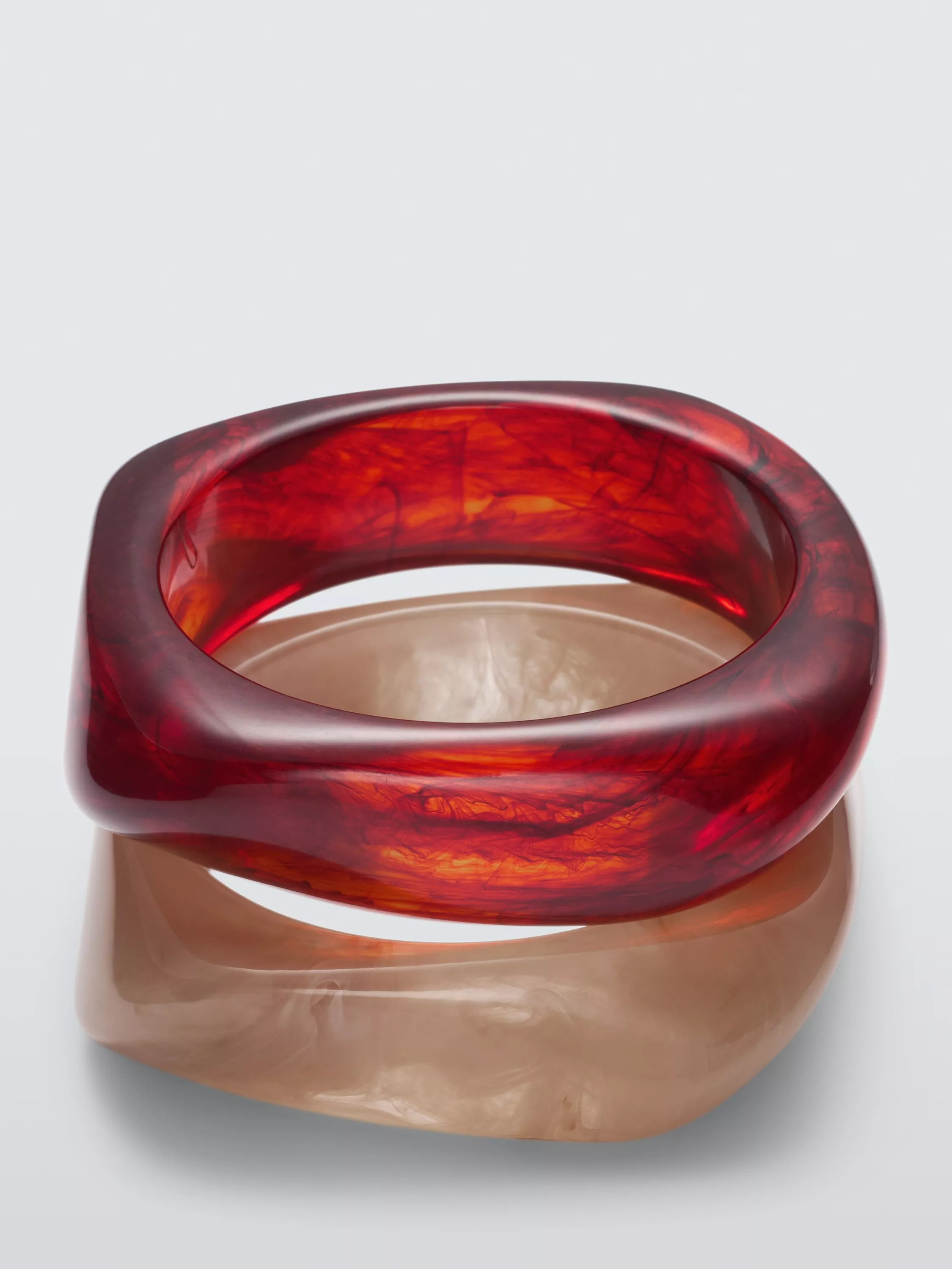 A pair of chunky resin bangles. A semi-transparent finish means they'll catch the light whenever you move.