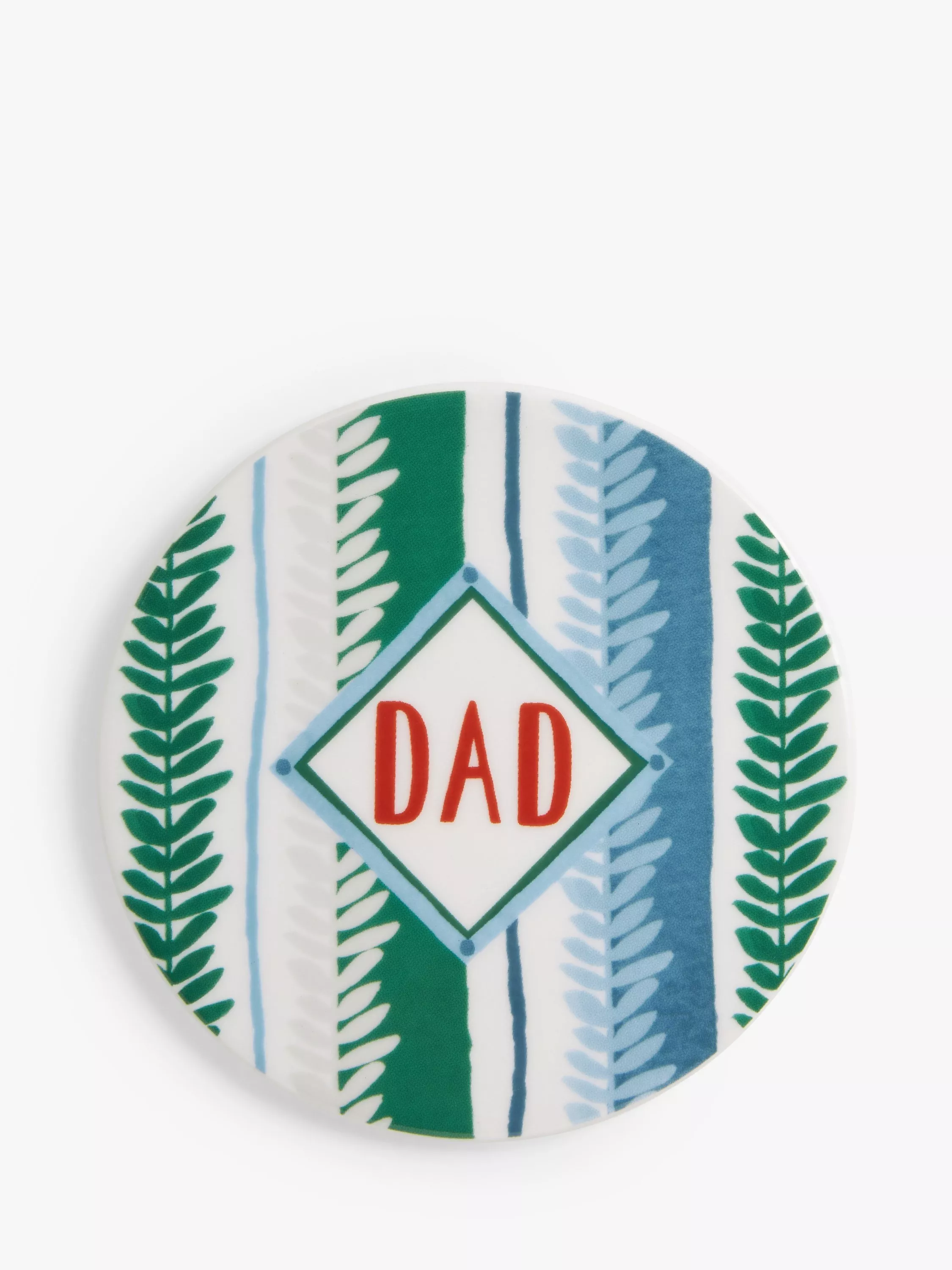 Giftable fine china coaster for 'Dad', decorated in plant stem patterns.