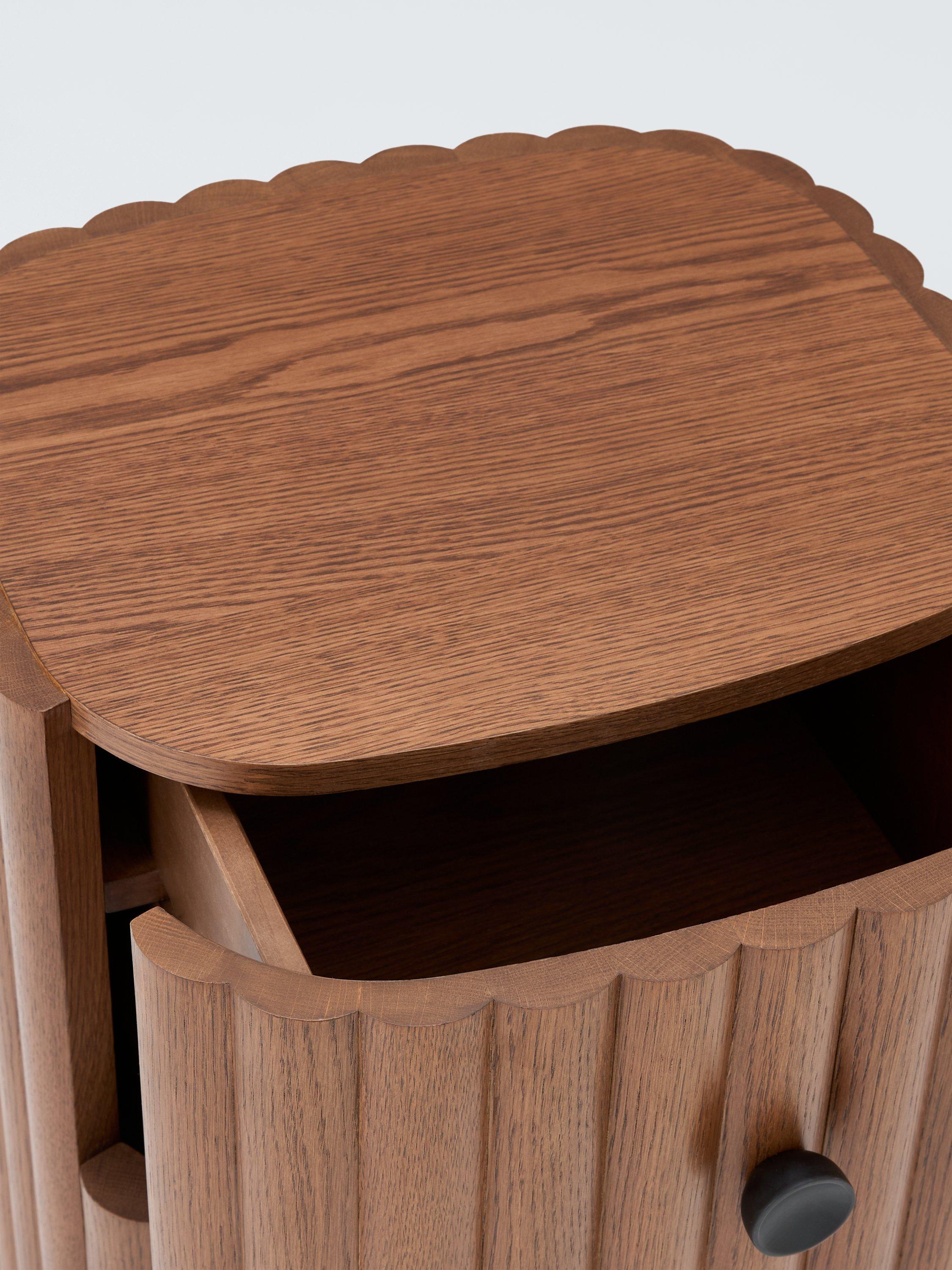 This bedside table combines practicality with refined design. Crafted from wood and softened by gently rounded edges, it brings warmth and charm to your bedroom.