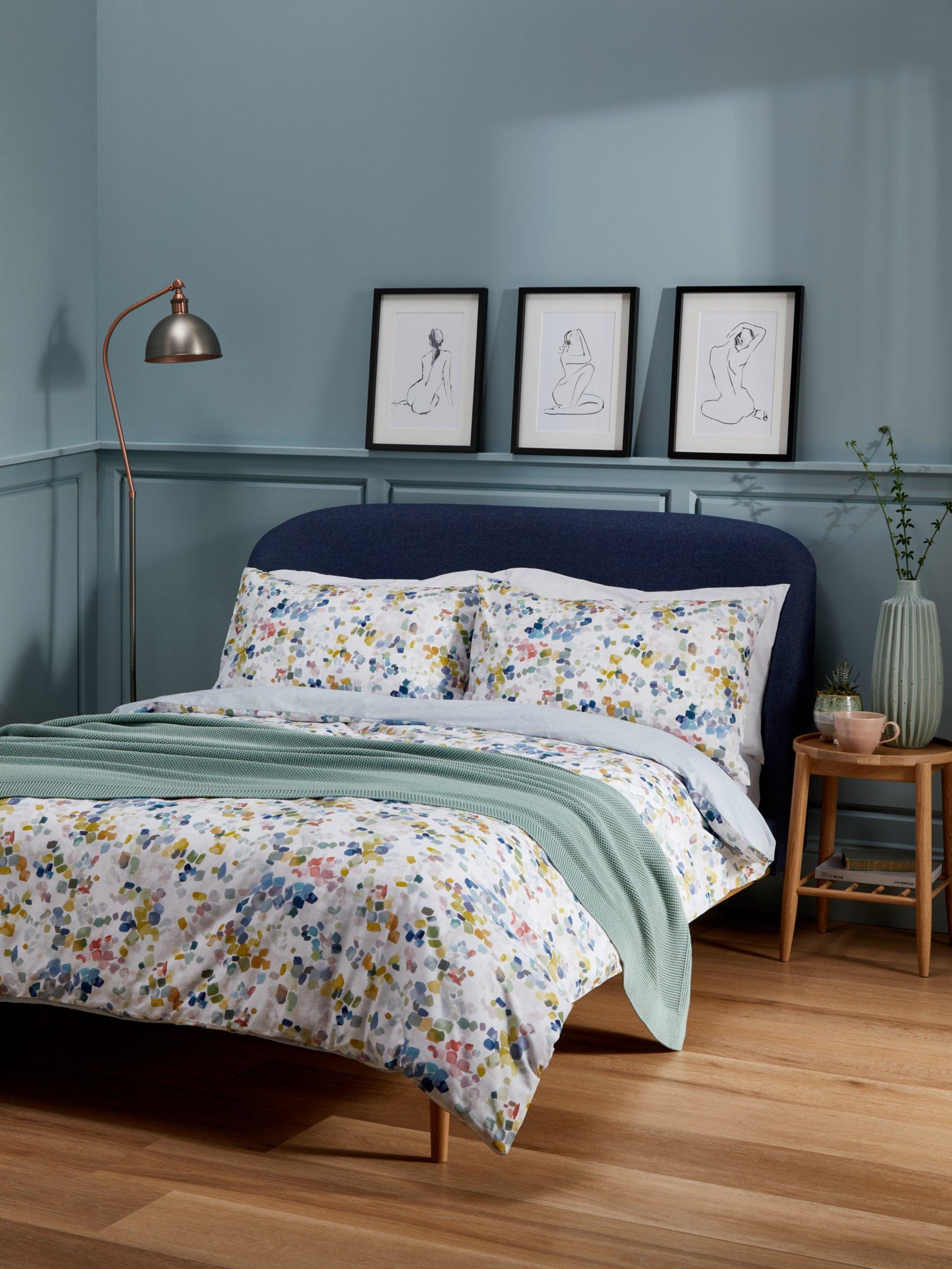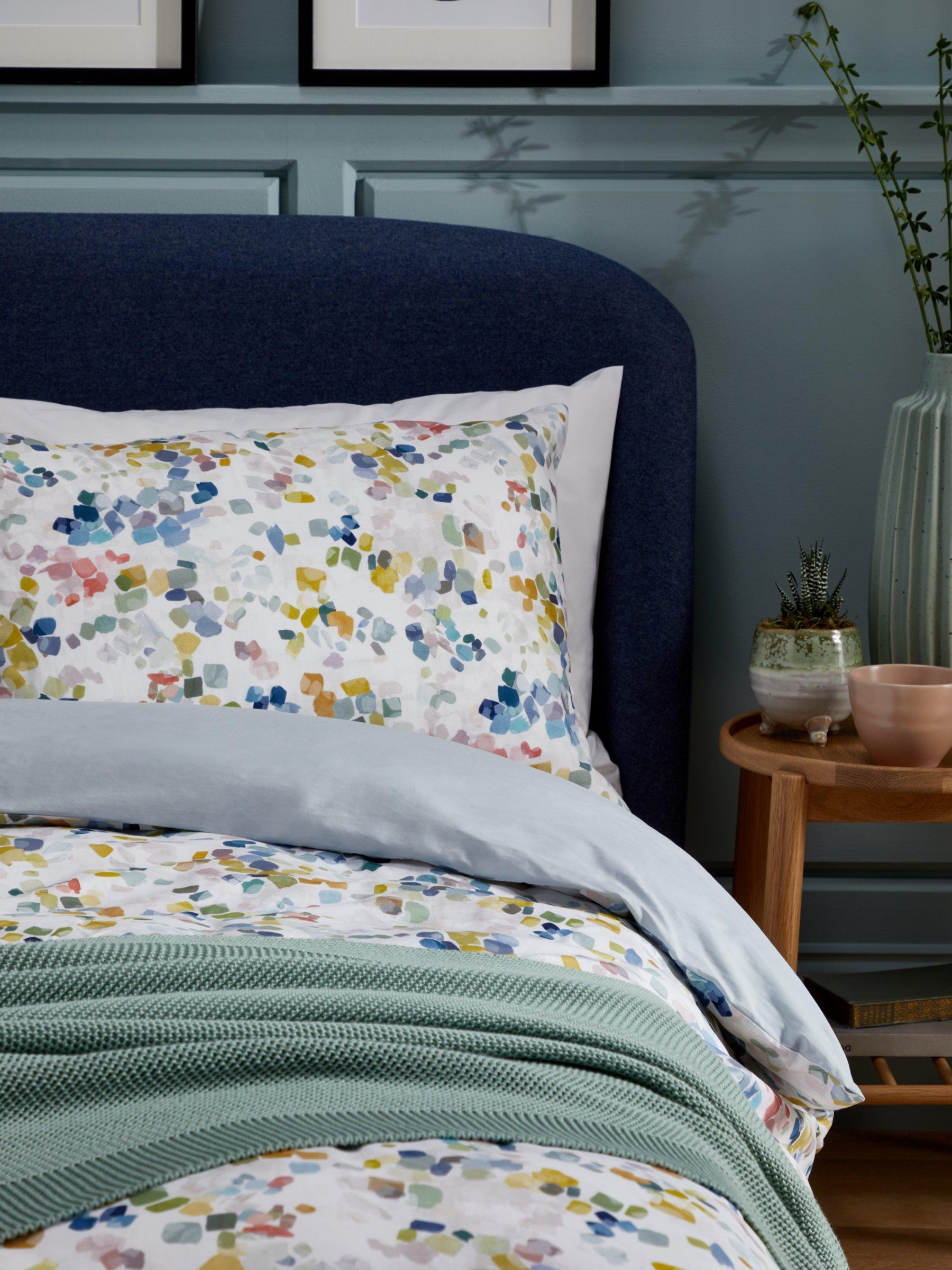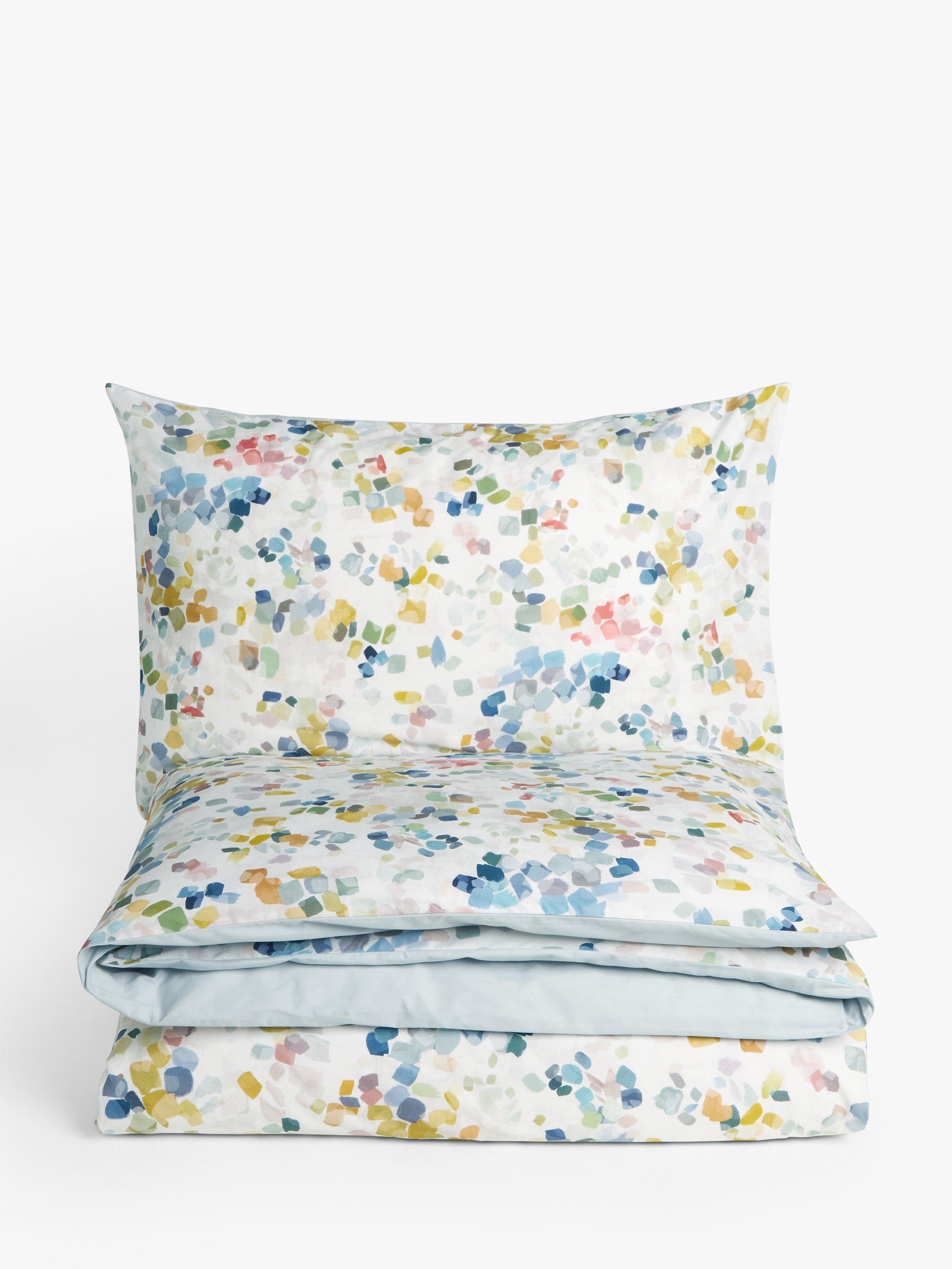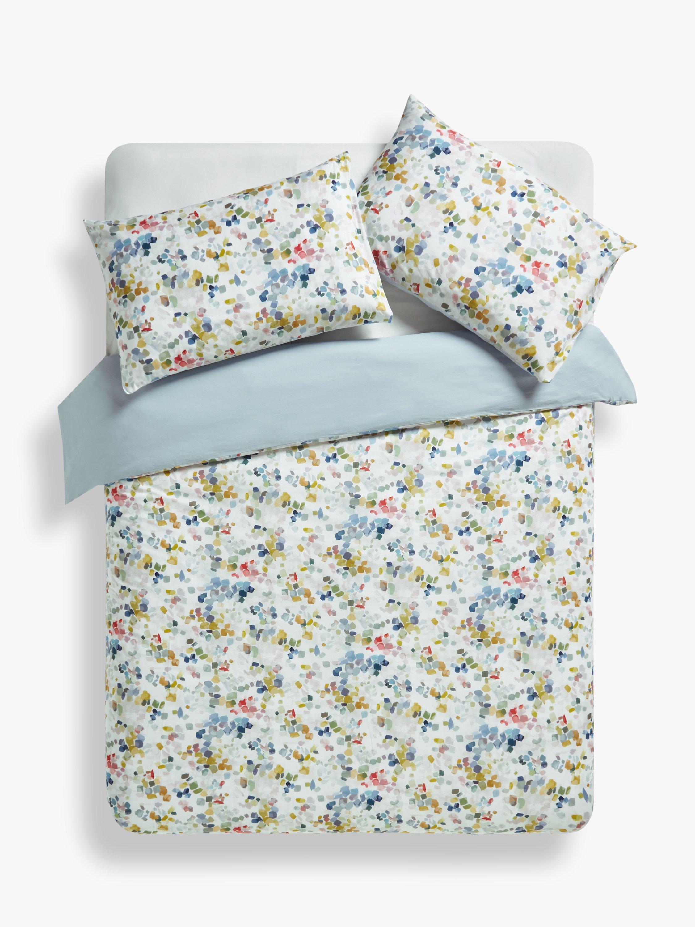 This versatile and relaxed bed linen has a design of multicoloured, painted shapes.
