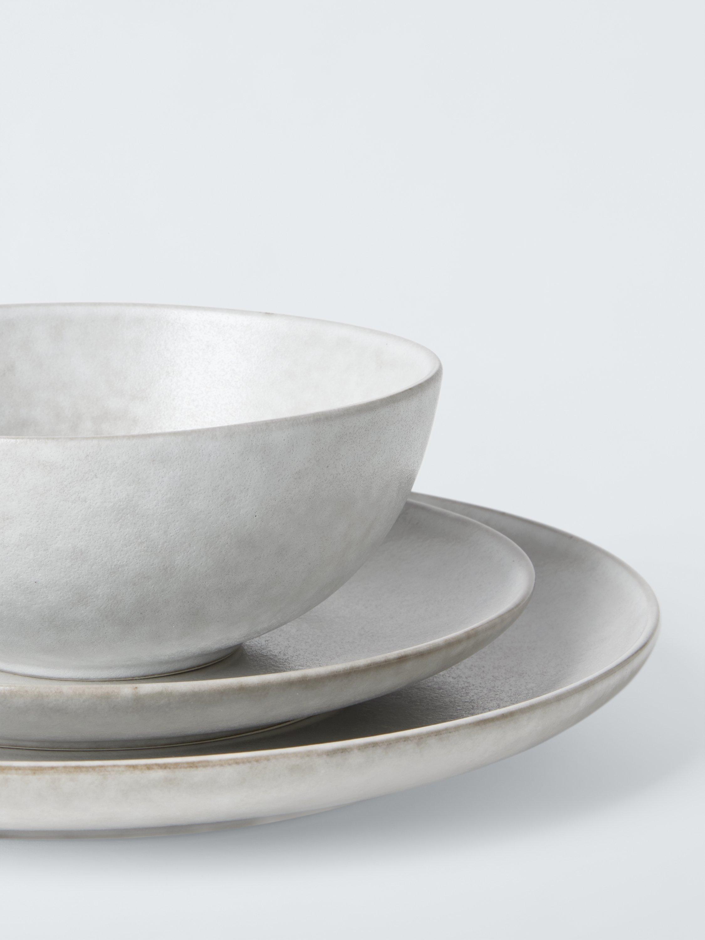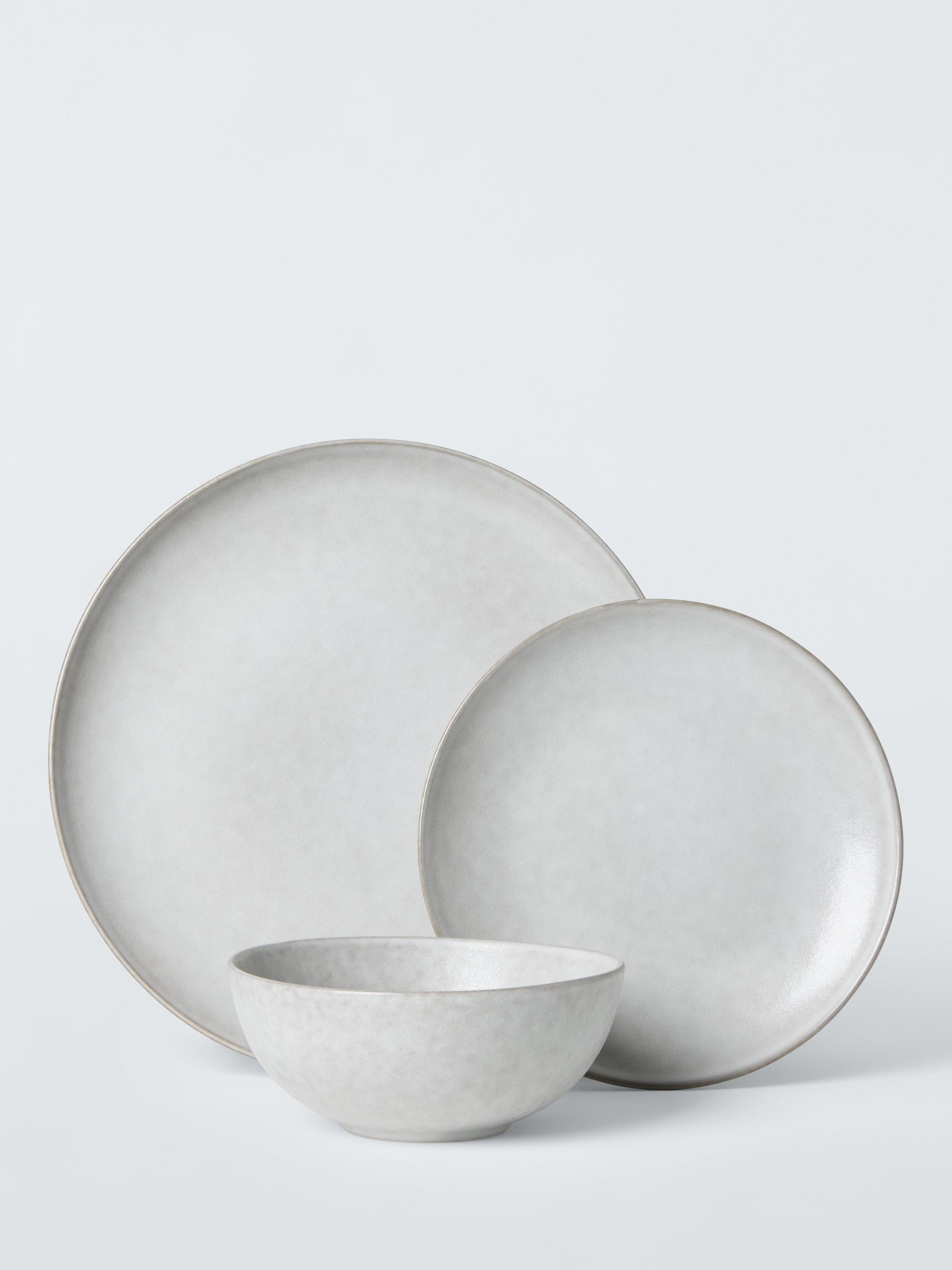 John LewisDappled Glaze Stoneware Dinnerware Set, 12 Piece, Light Grey