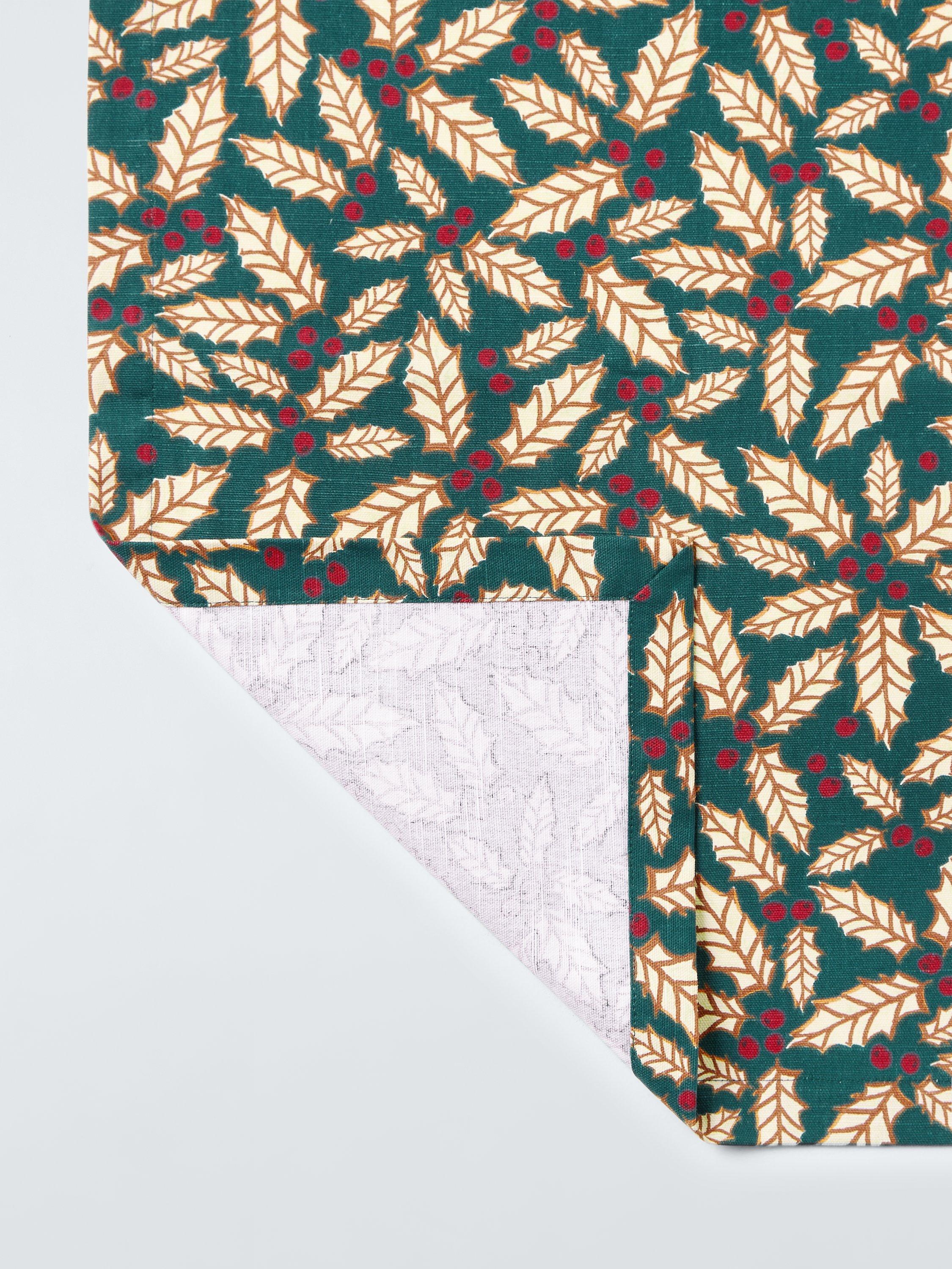 Cotton table runner in our festive Dark Holly print. Machine washable for easy cleaning. Team it with other table linens in the matching Dark Holly design for your seasonal table.