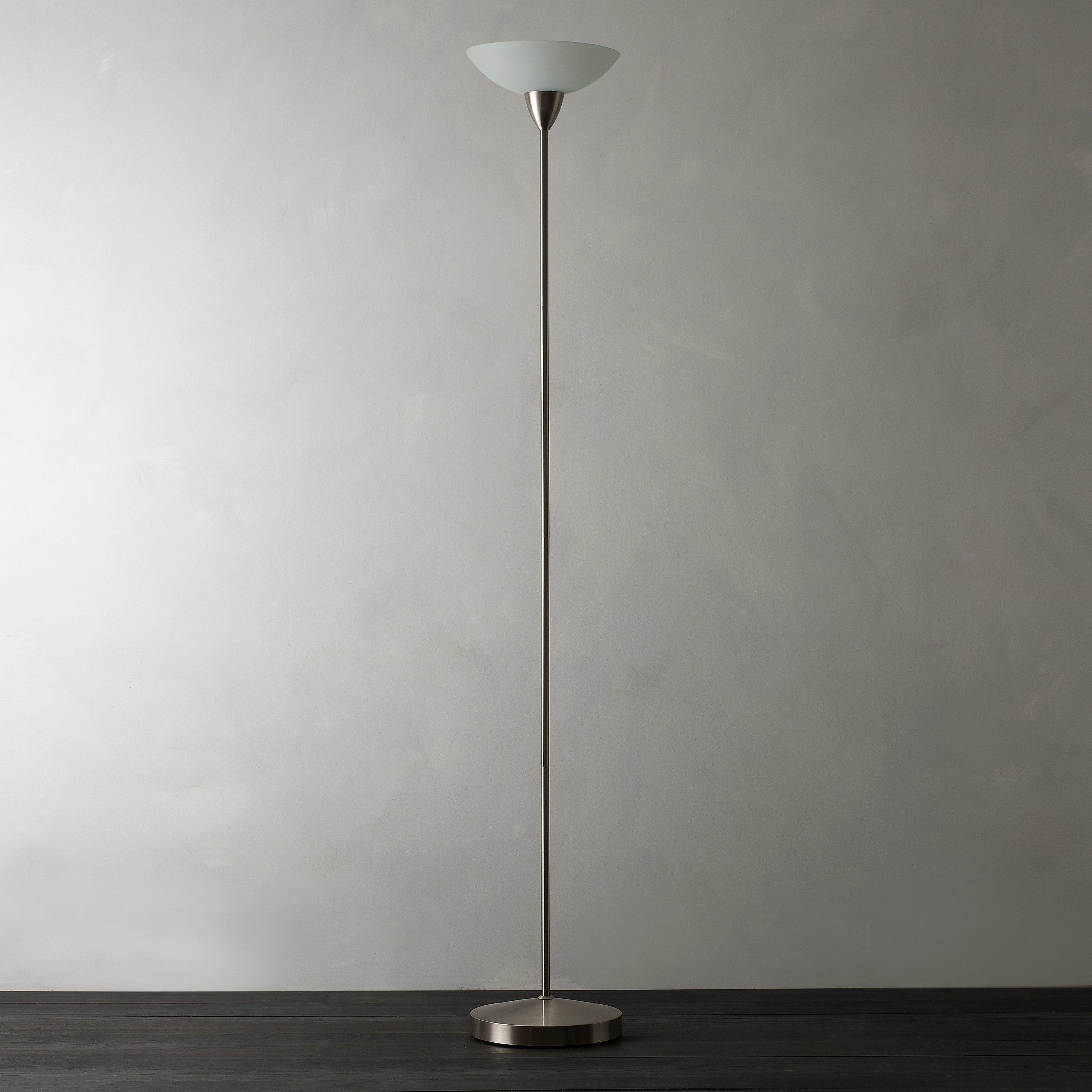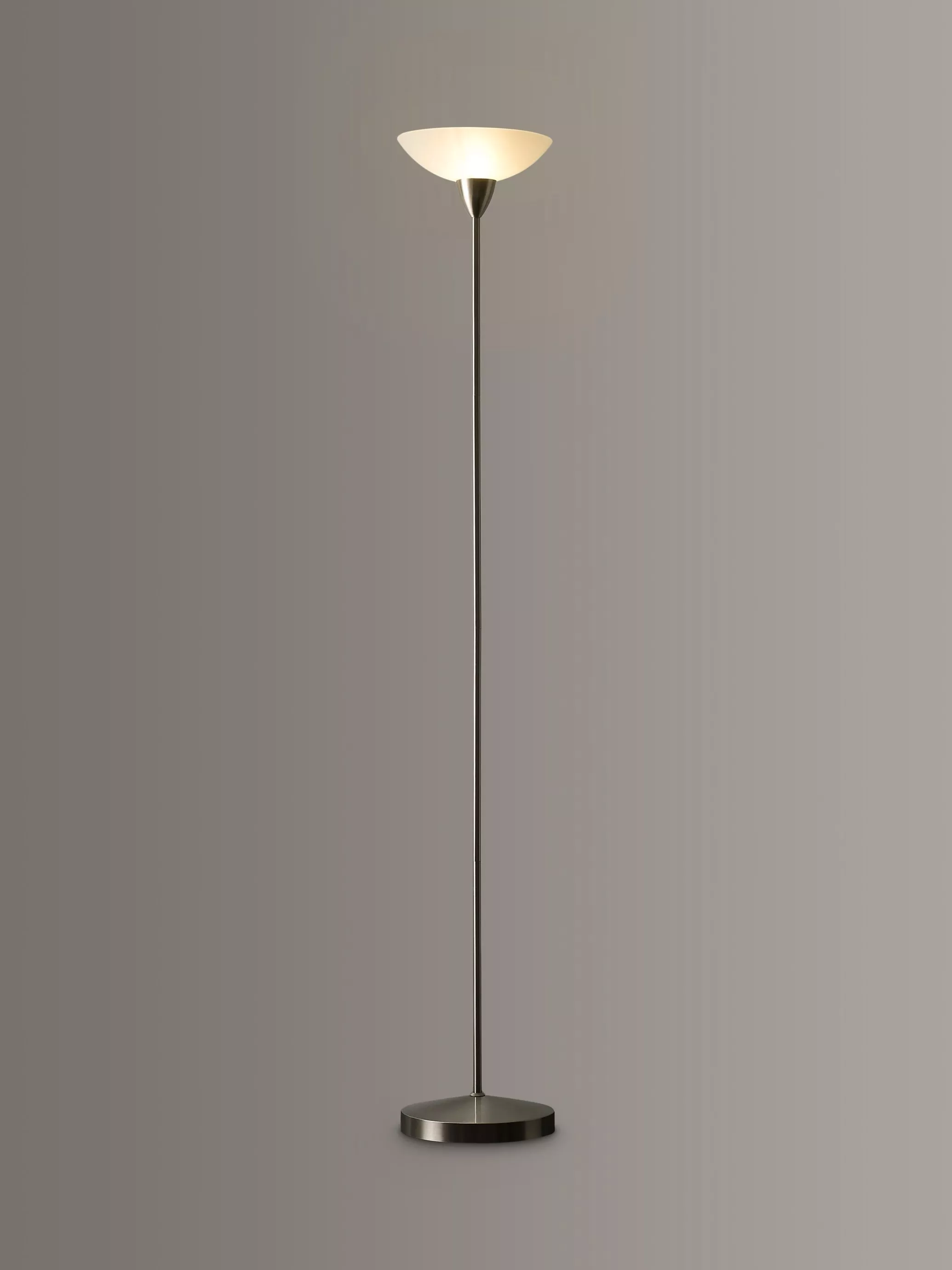 This uplighter floor lamp is ideal for adding ambience to your room, especially as the frosted glass shade enhances a warm glow of light. It's a simple style, but the brushed finish of the metal gives it a smart and timeless look, at a brilliant price.