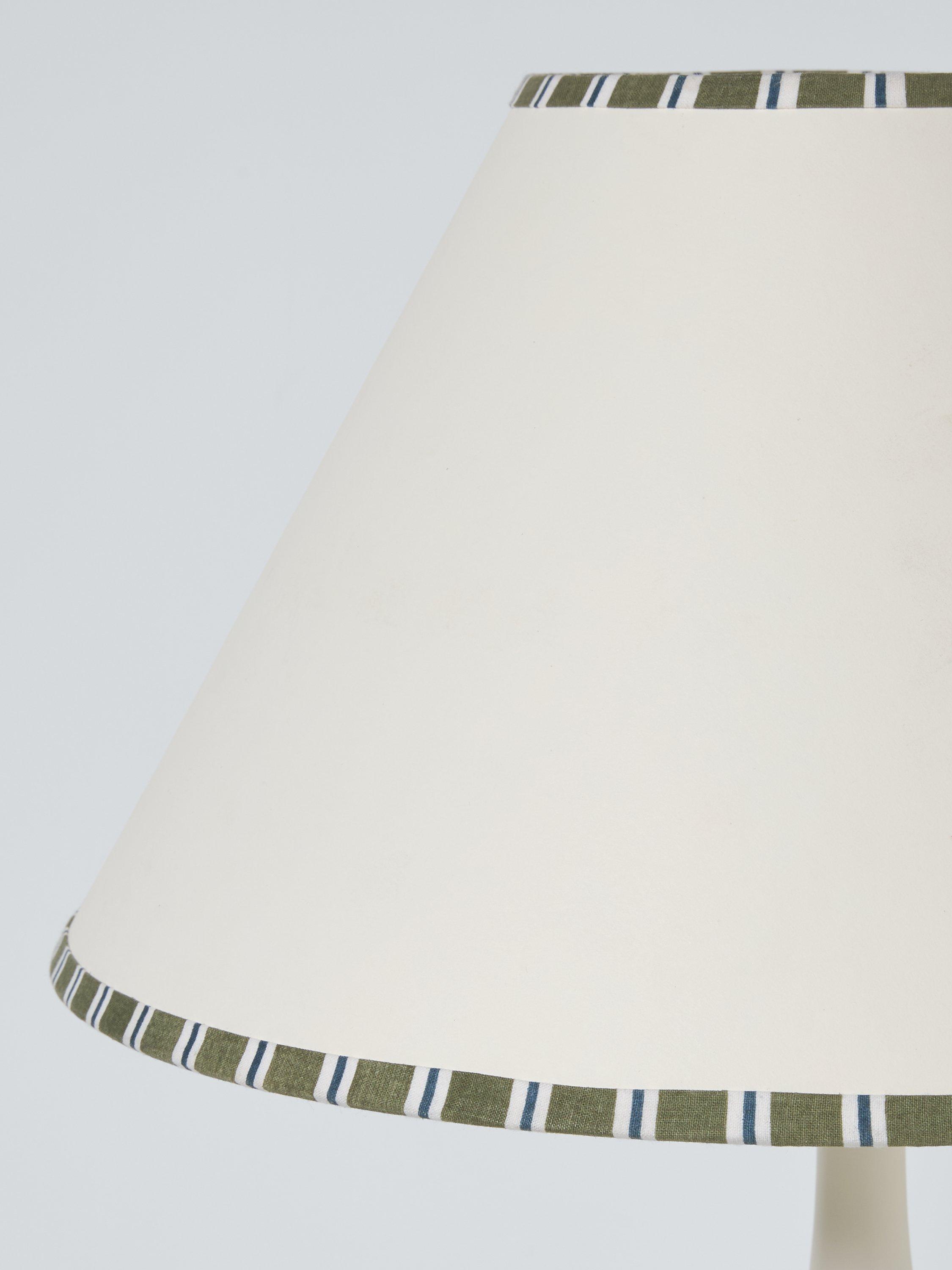 Designed in a timeless tapered shape with a fabric printed stripe border, this lampshade is suitable for table lamp bases.