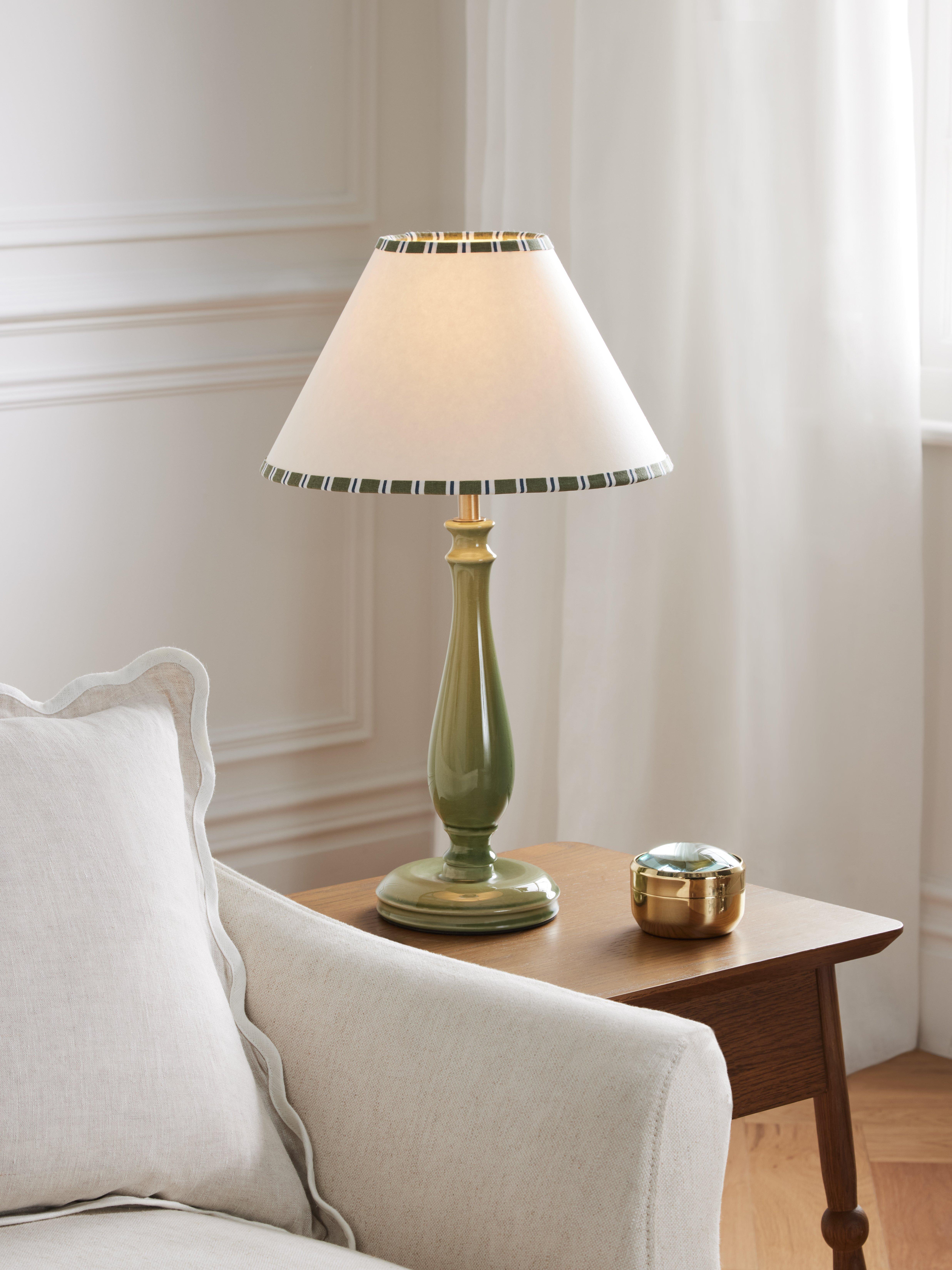 Our straight-sided or drum lampshades are well-paired with modern lamp bases, while tapered lampshades work well with classic-style bases. You can shop our range of lamp bases