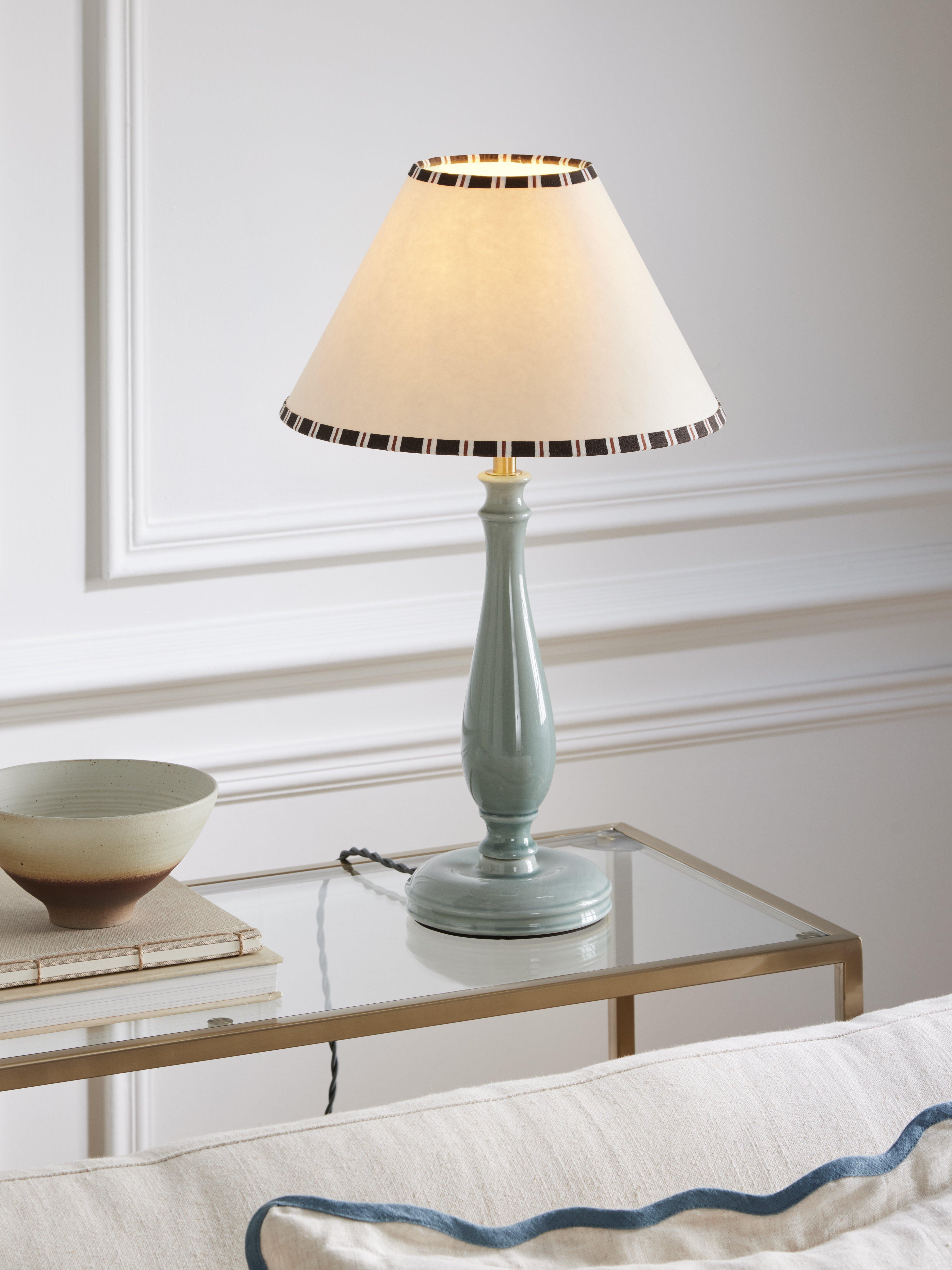 Our straight-sided or drum lampshades are well-paired with modern lamp bases, while tapered lampshades work well with classic-style bases. You can shop our range of lamp bases