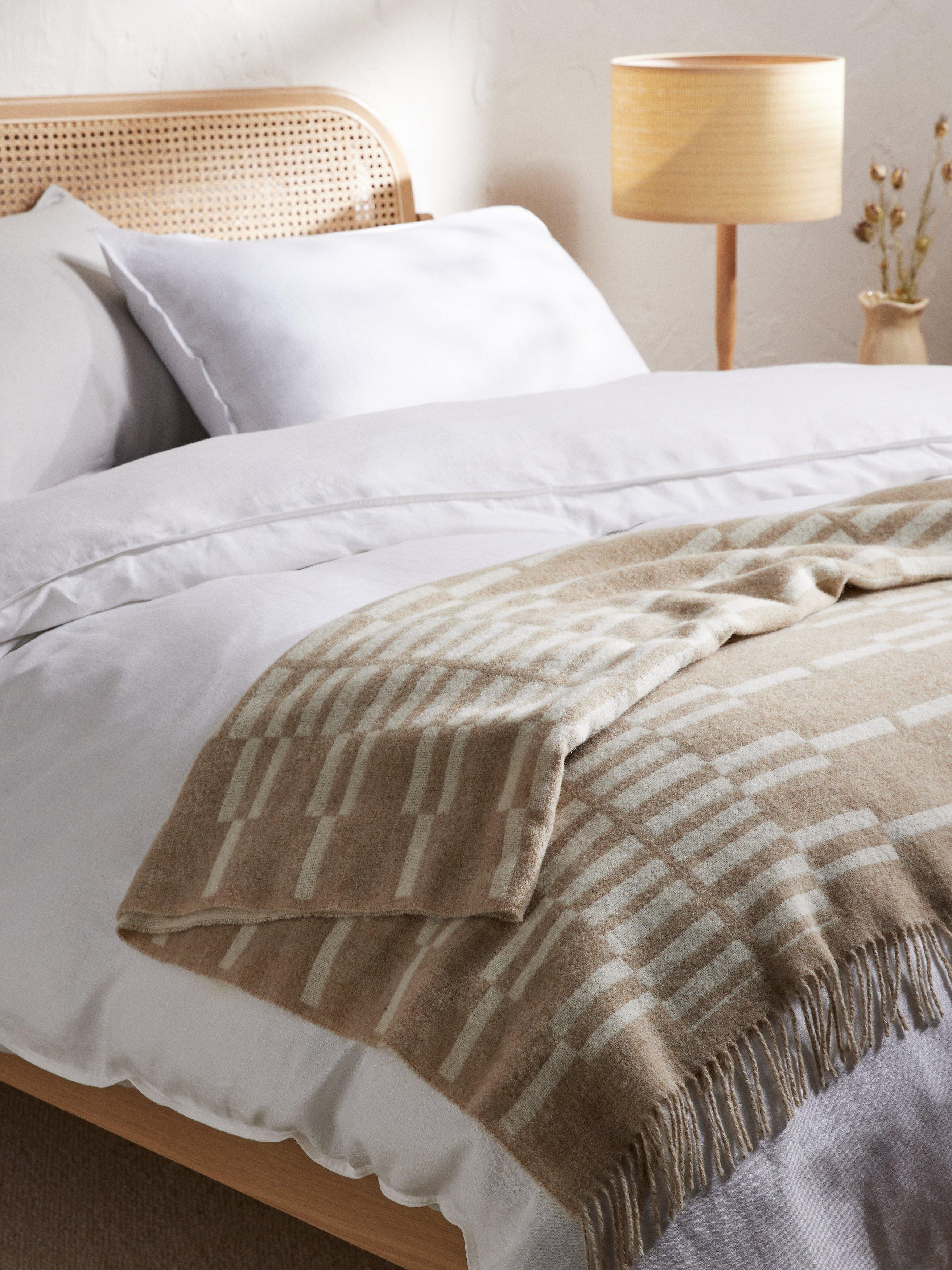 This luxurious woven throw is made from one of the most sought-after wool fibres. High-quality Merino wool is super soft and lightweight. Known for its breathable and insulating properties, wool is the perfect cosy layer. Plus, wool's natural resistance to bacteria means that this throw is naturally hypoallergenic.