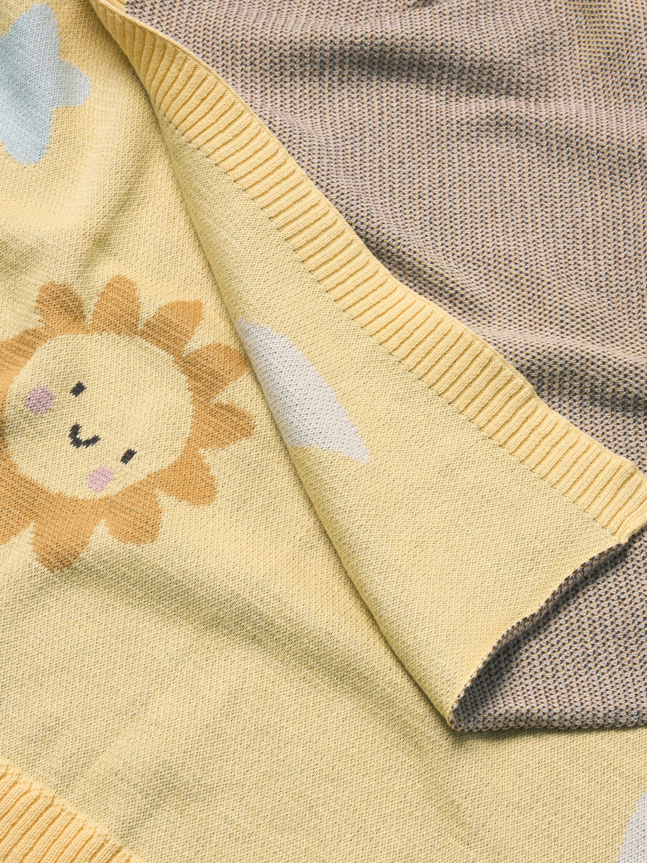 A knitted blanket, made from pure cotton for softness against delicate skin.