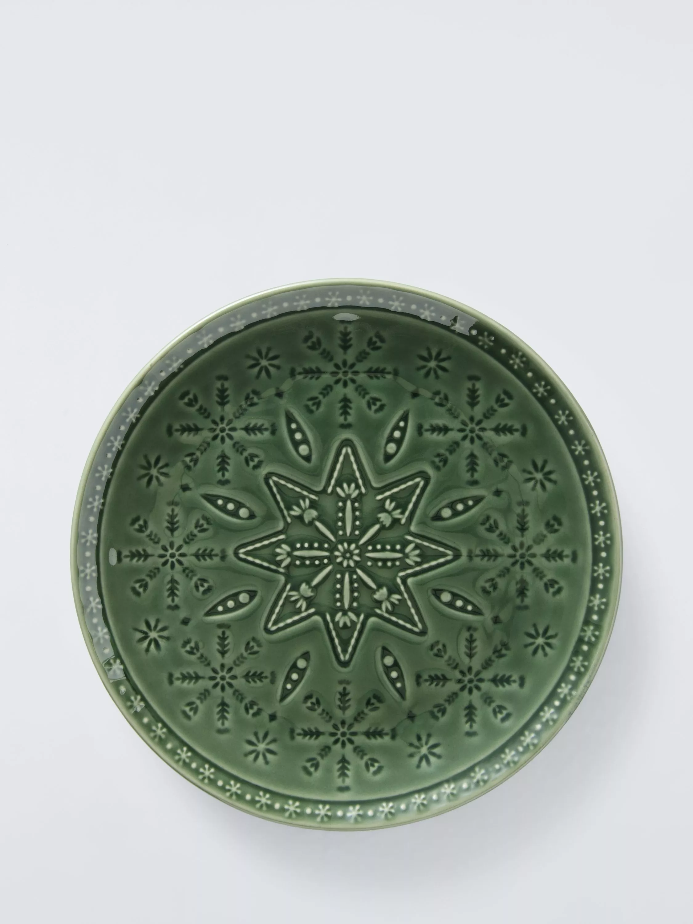 Debossed with a snowflake and star design and finished in a glossy glaze, this side plate is ideal for festive food. Made of stoneware, it's dishwasher and microwave-safe.