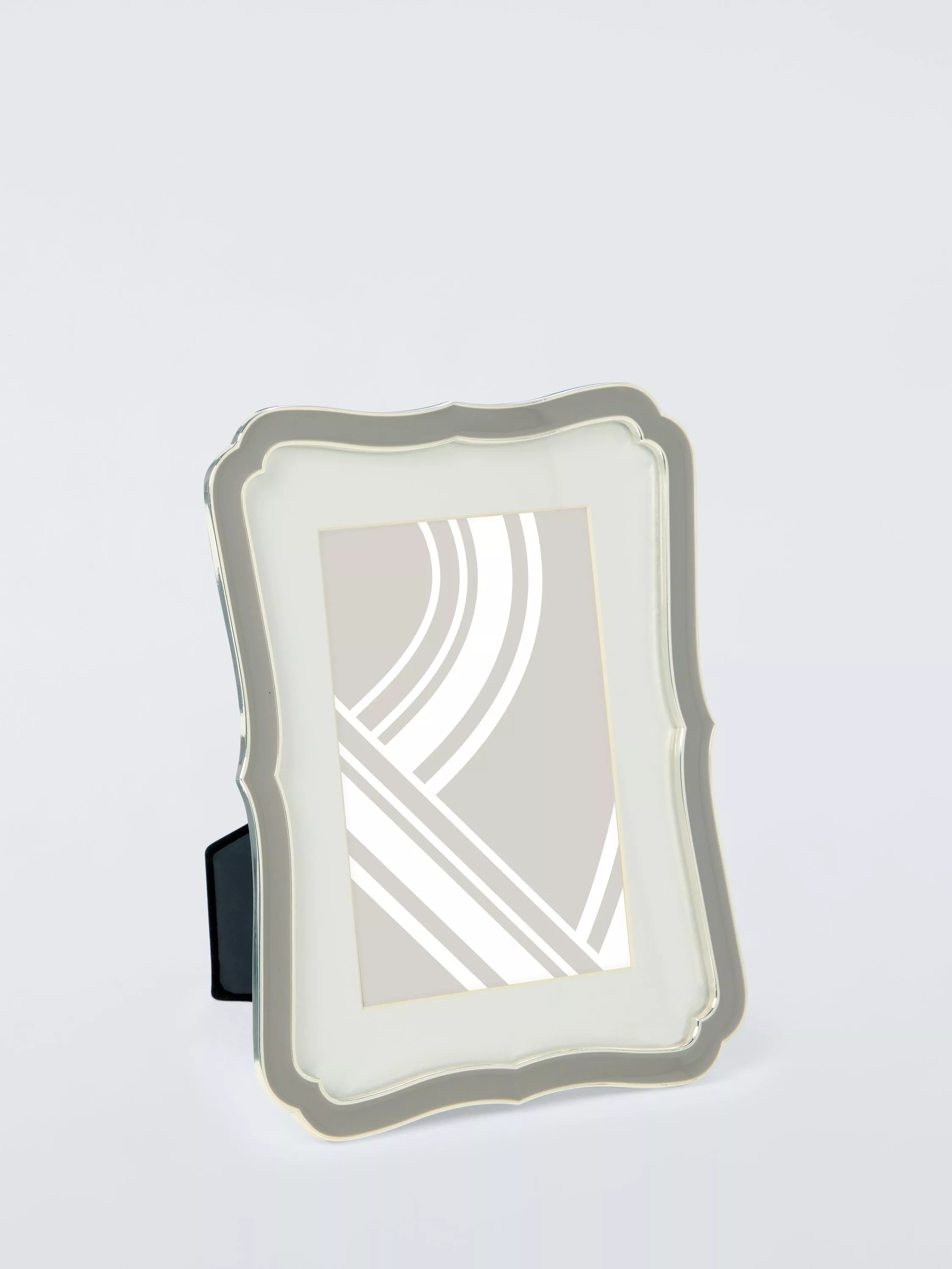 Inspired by Art Deco design, this photo frame has a shiny silver-plated, die-cast zinc alloy frame with colourful enamel. Comes with a matt white window mount and can be displayed freestanding, horizontally or vertically.