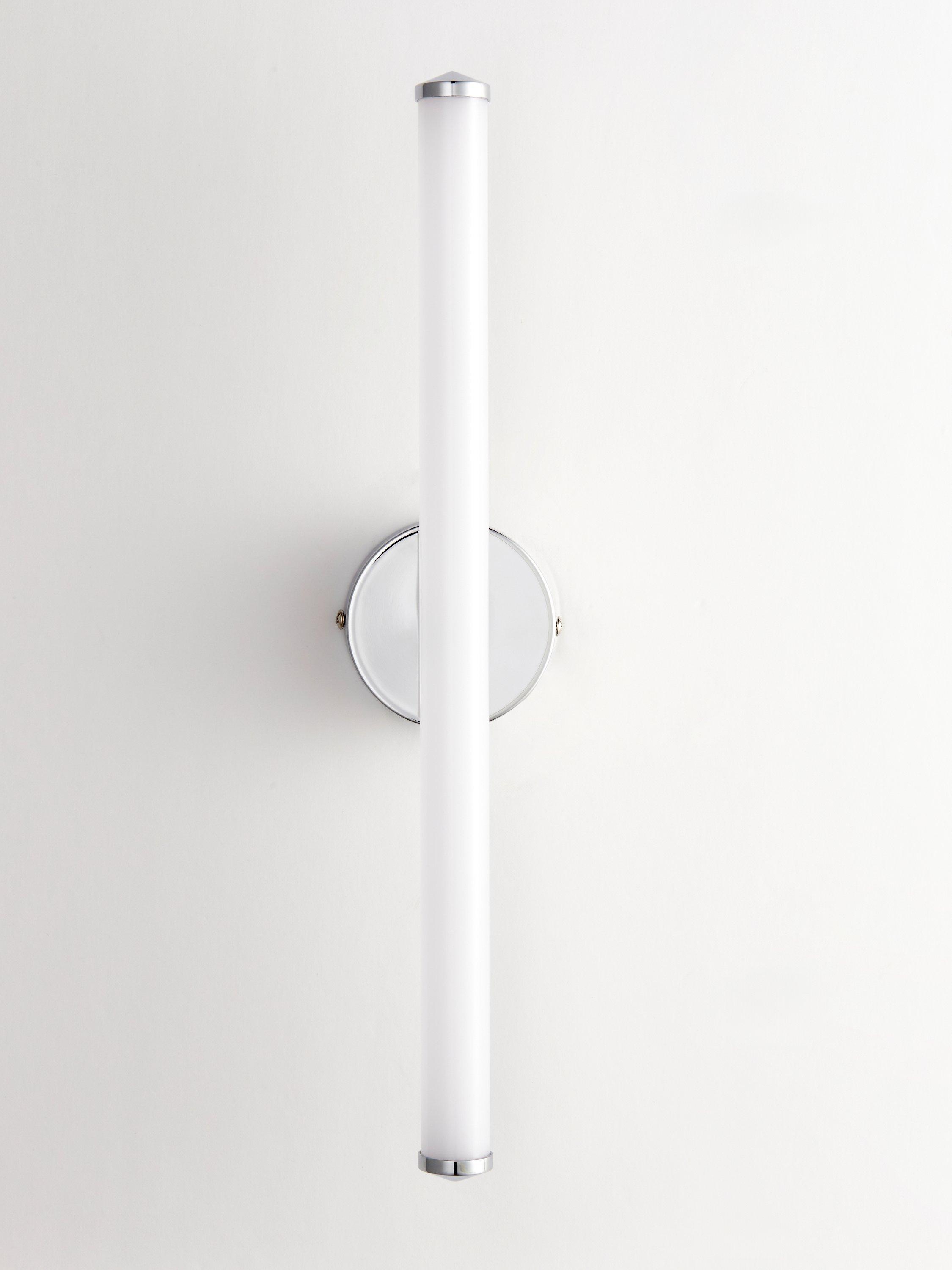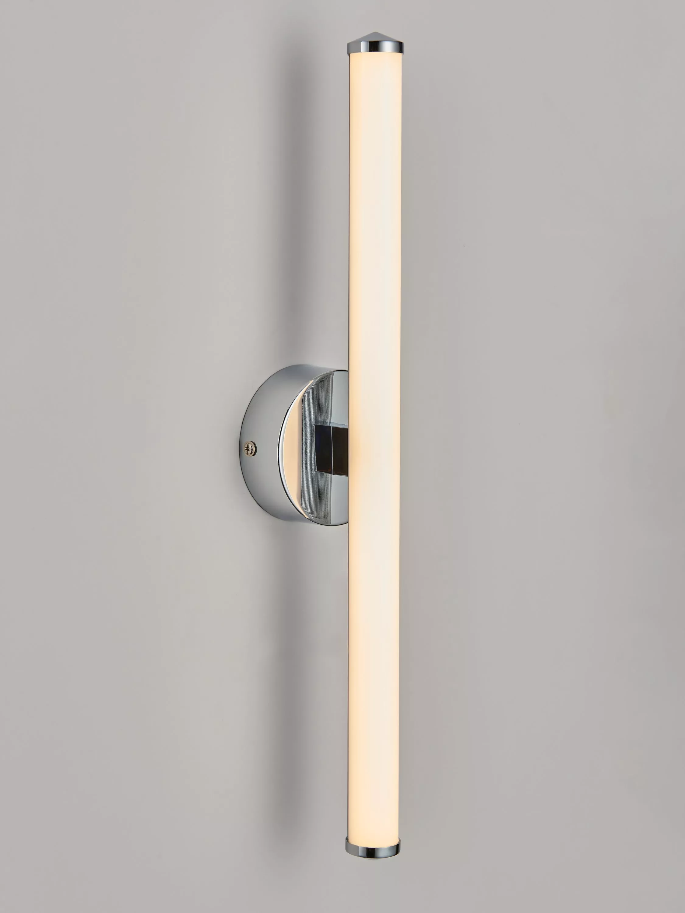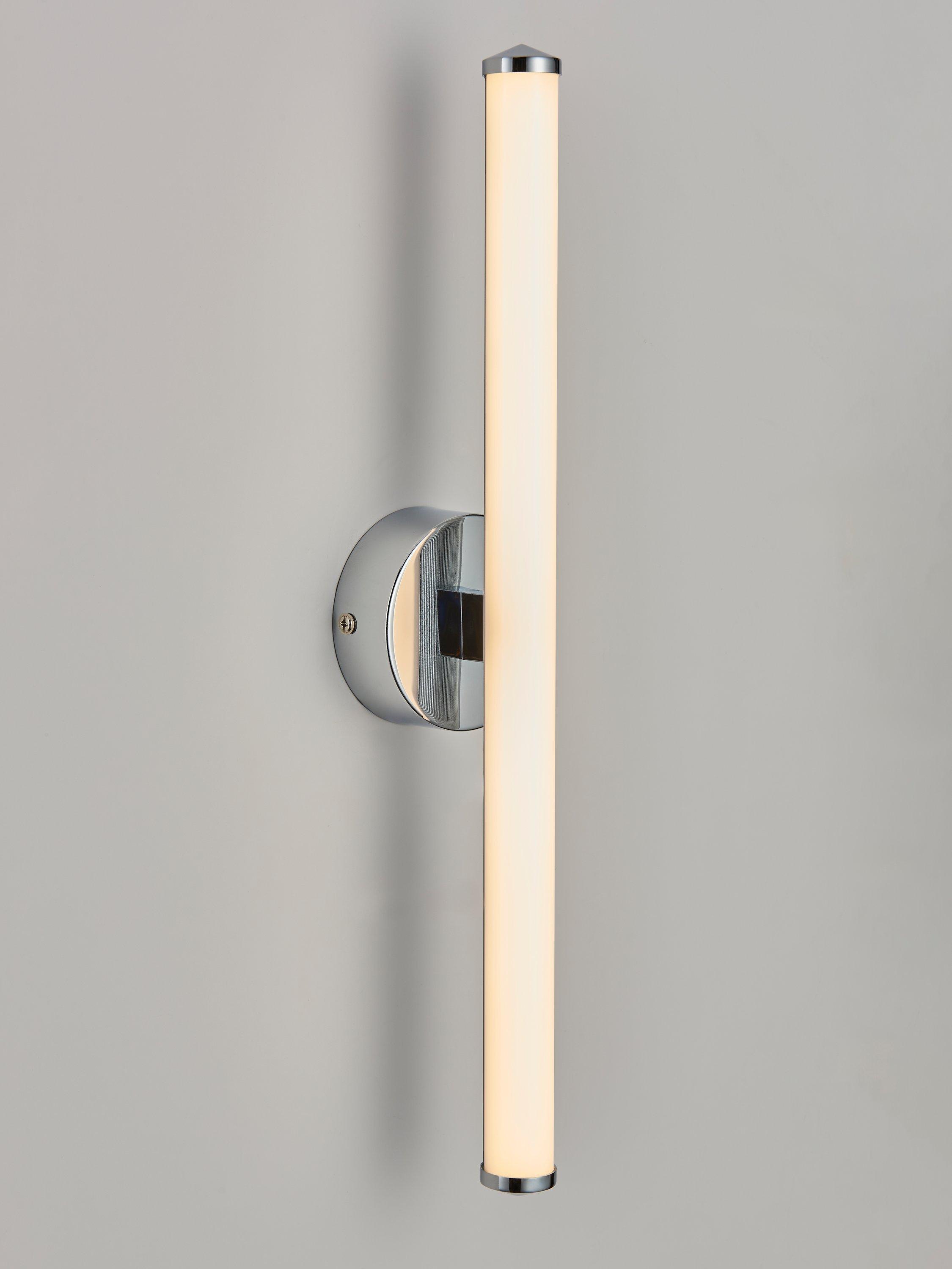 This linear LED fitting is IP44-rated so it's splashproof and safe for use in most bathroom areas and is evenly lit with a Cool White wash of light. The stylish end caps are a carefully chosen, bathroom-friendly finish. Great used individually positioned above a mirror or as a pair of lights on either side of a mirror.