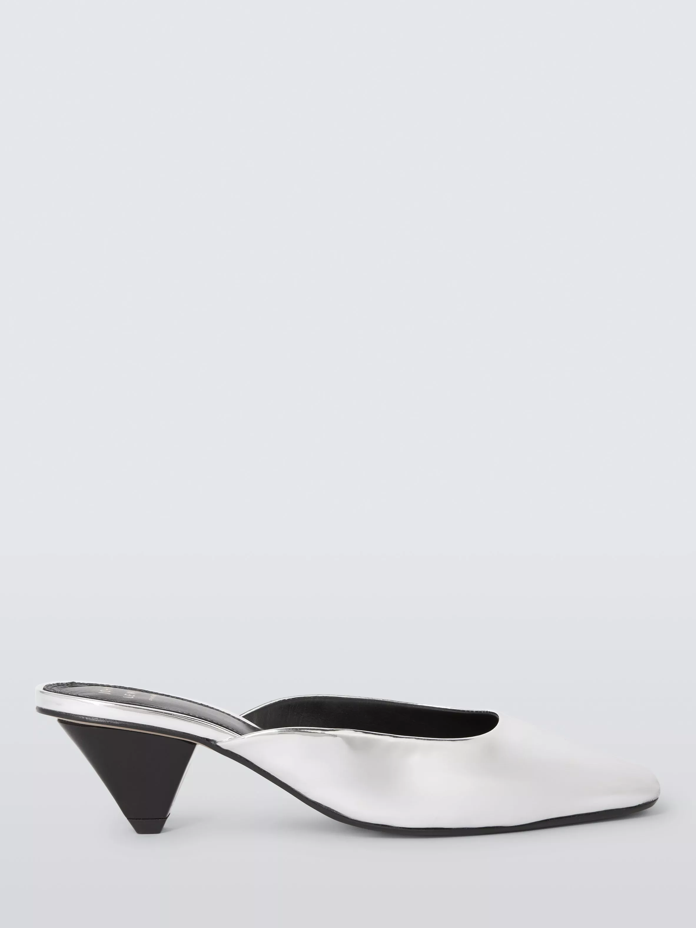 Devon is a backless mule with an elegantly squared toe and a mid-height cone heel, giving it a modernist silhouette with undeniable attitude. This flattering shape hugs the foot with a sleek look for day-to-night transitions.