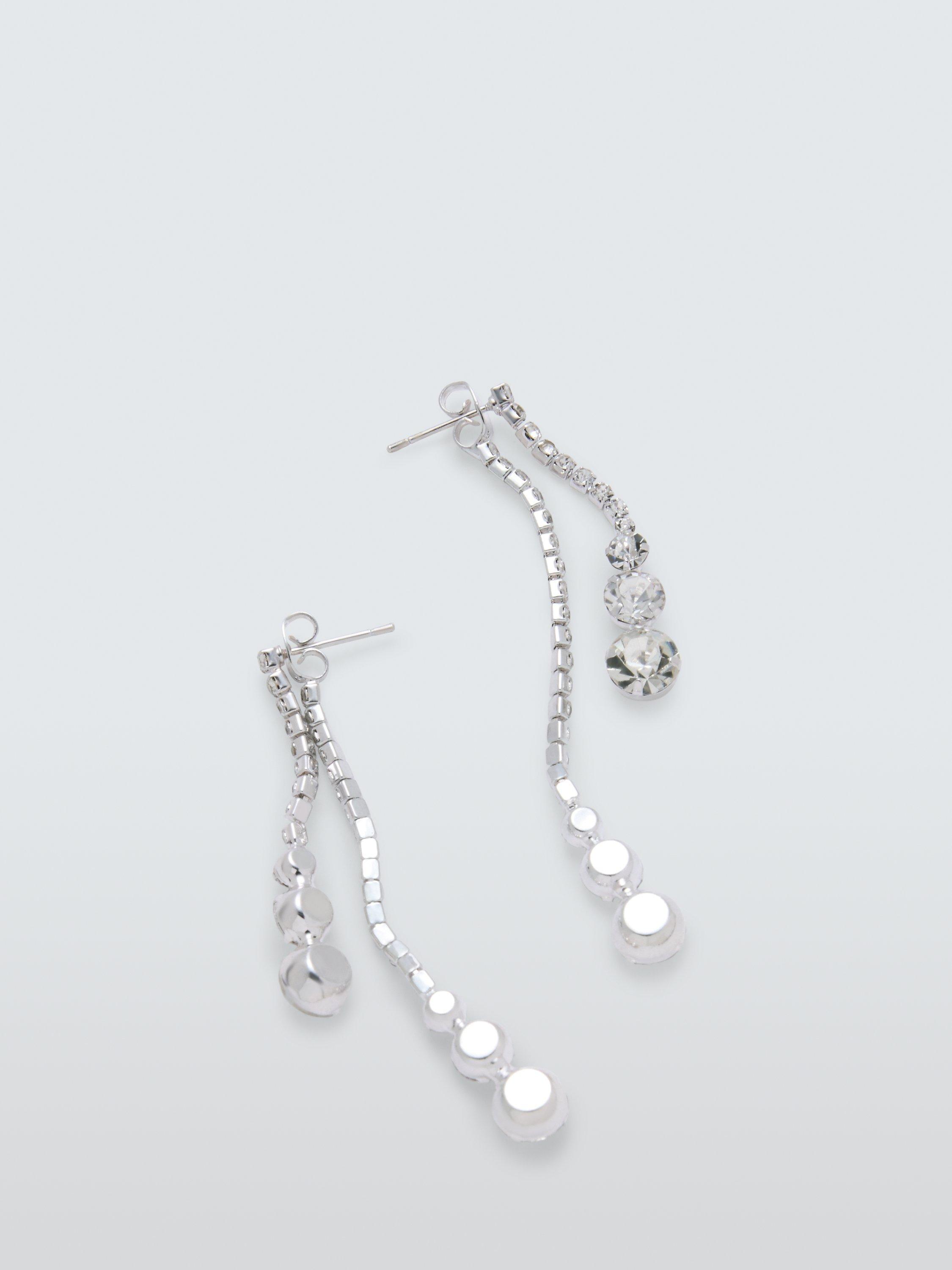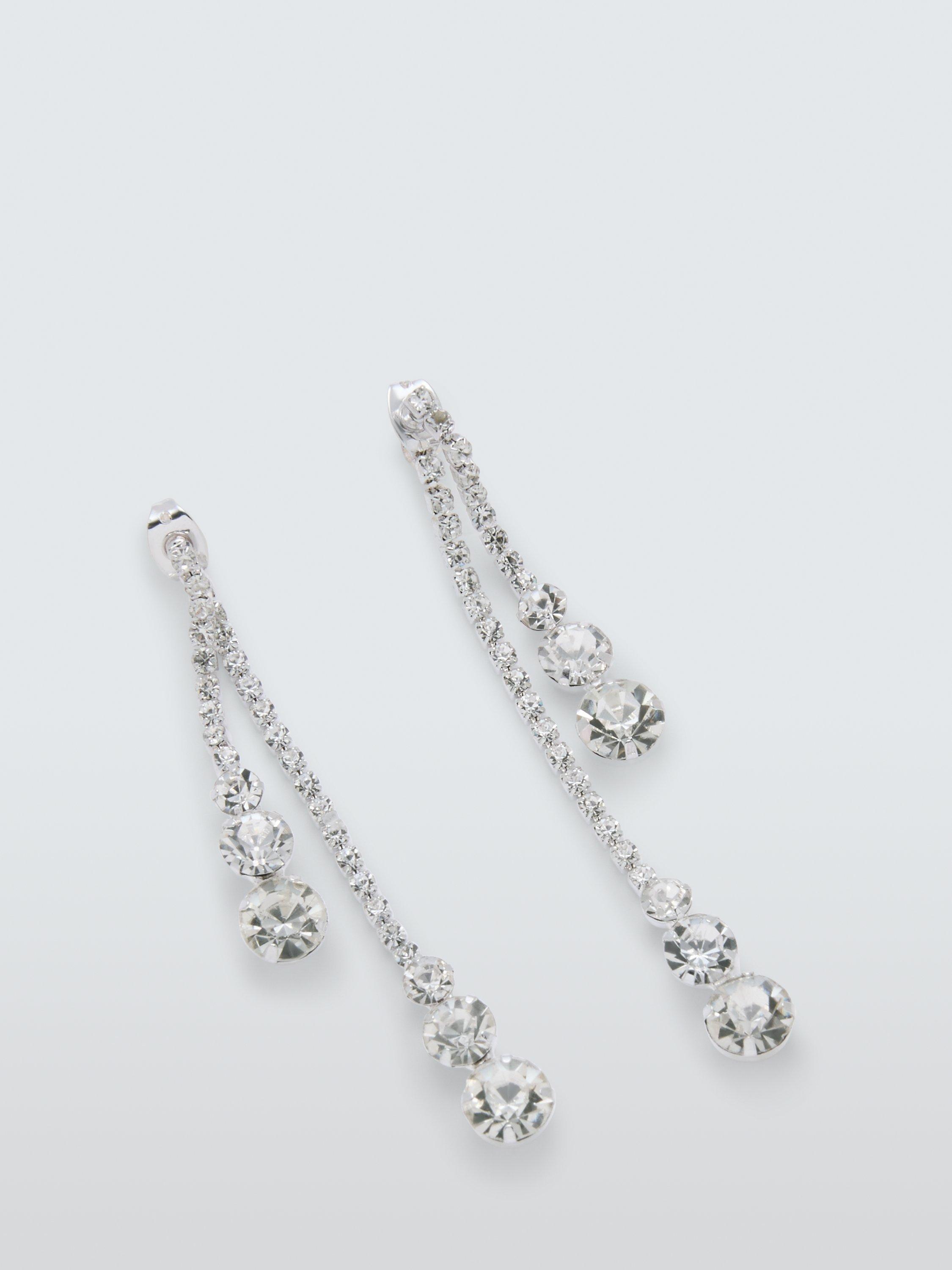 Designed for everyday, these earrings fall to a simple but elegant drop design with diamante and round clear crystal stones. Suitable for pierced ears only, they sit on post fittings.