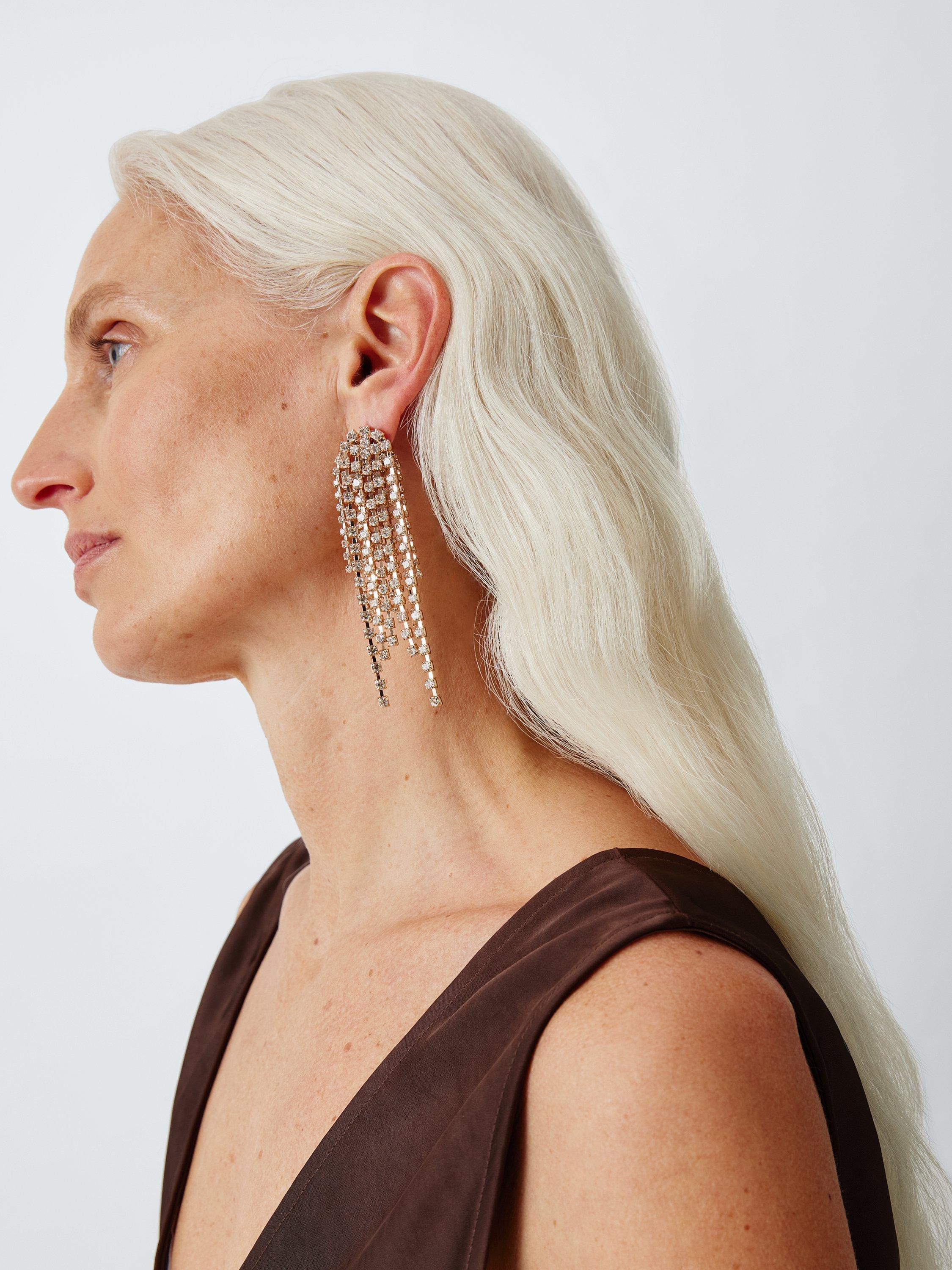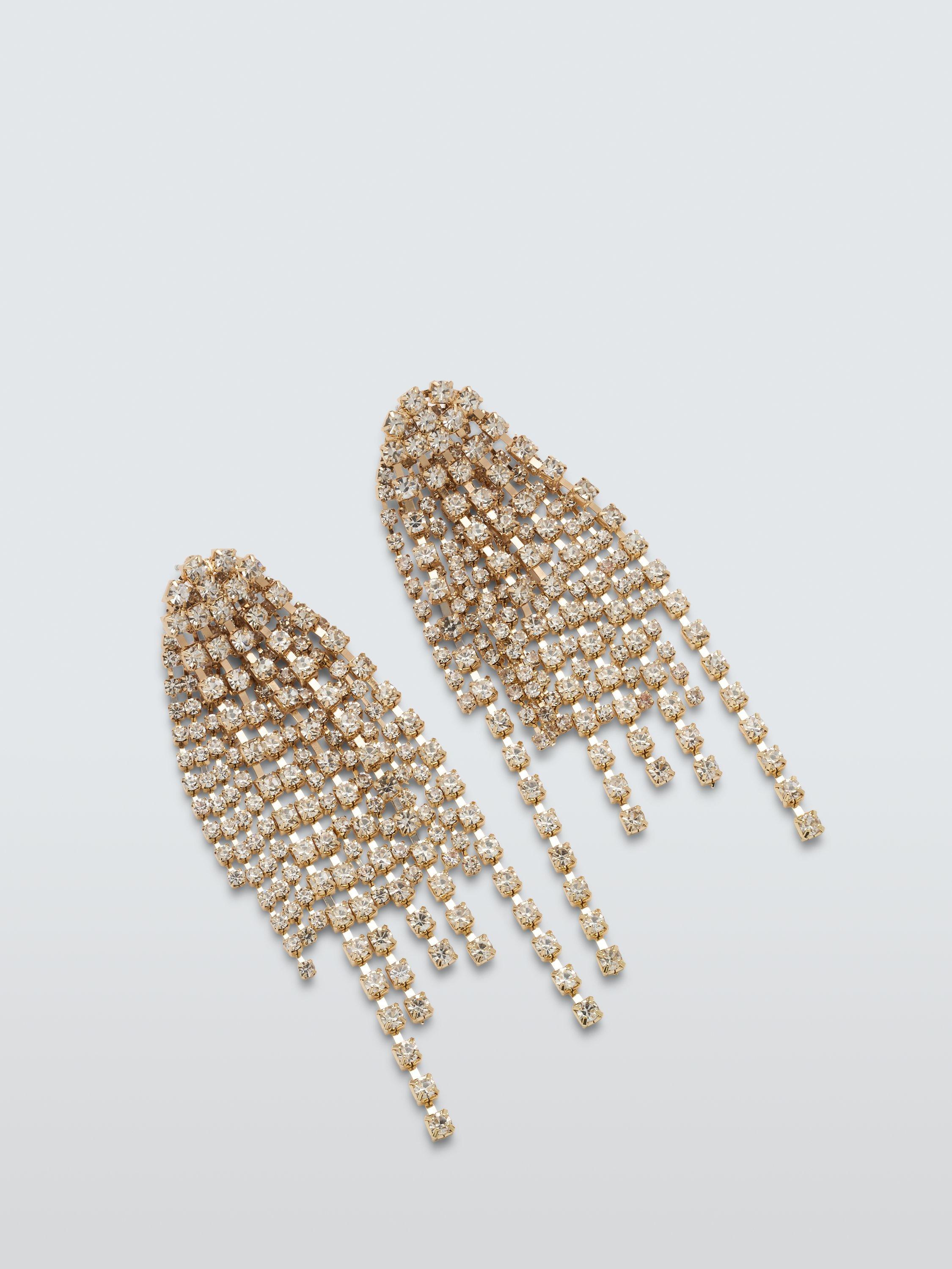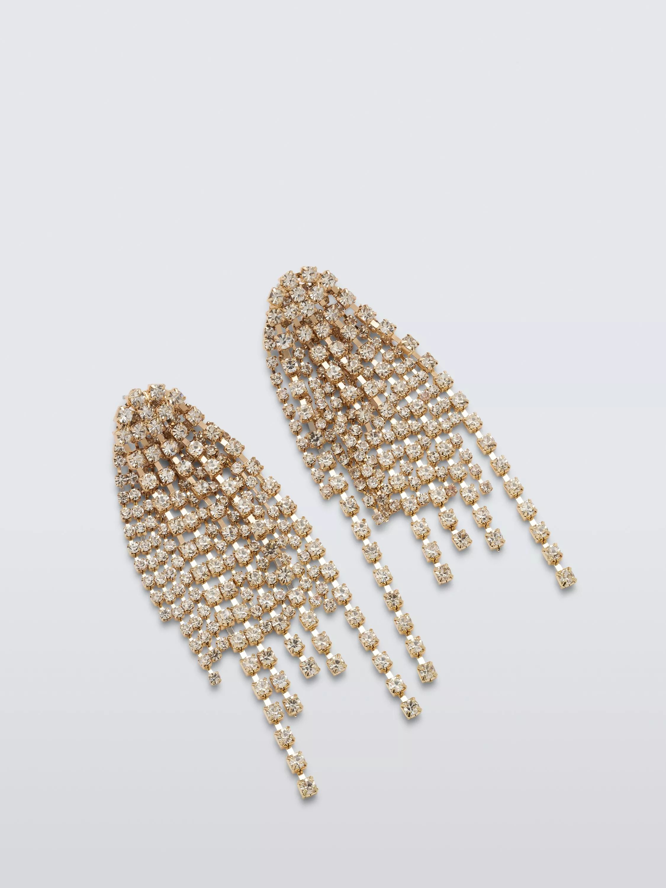 These earrings shine and sparkle thanks to the multi-chain drops set with diamante gemstones. Secured with post fittings.