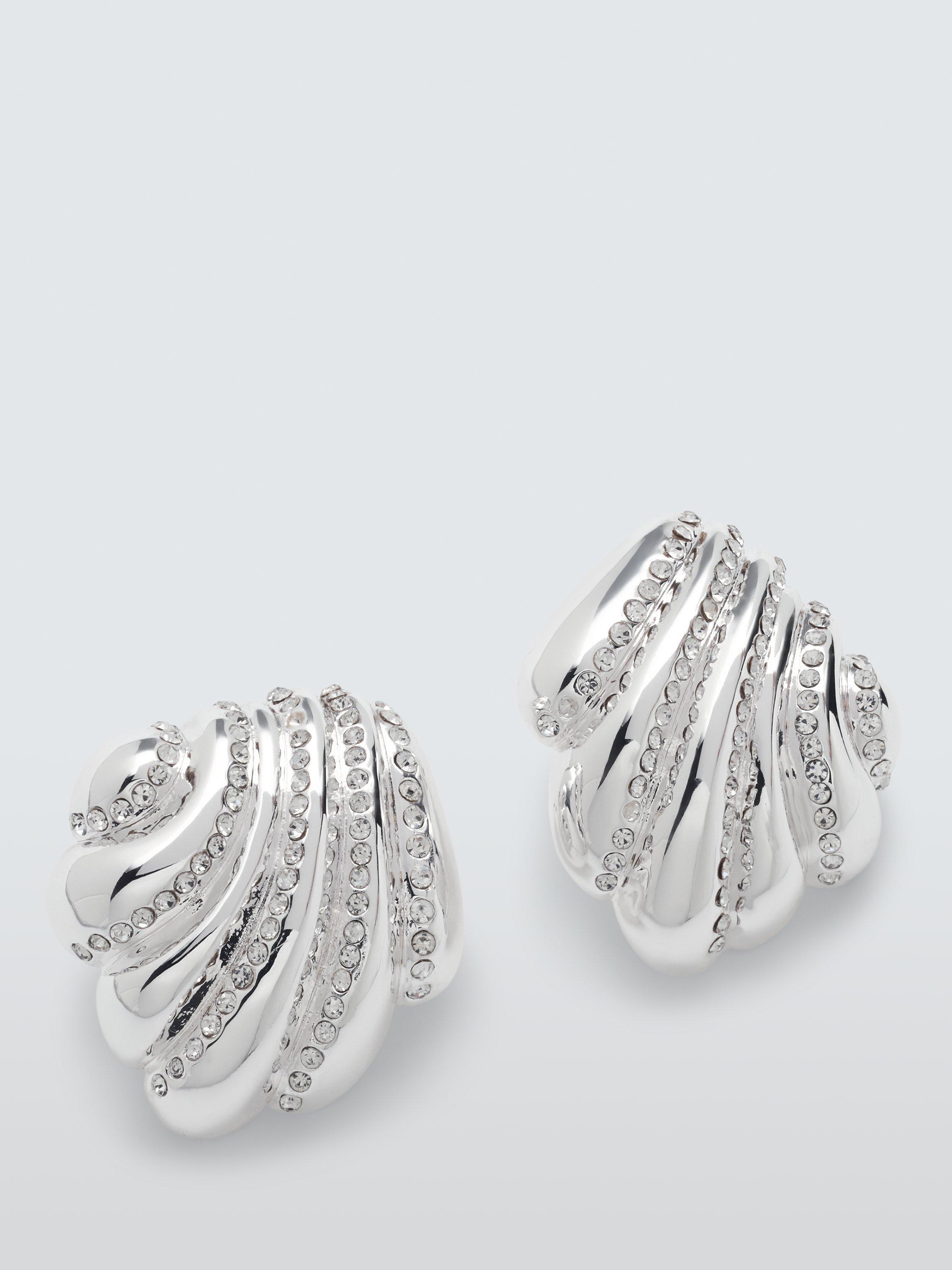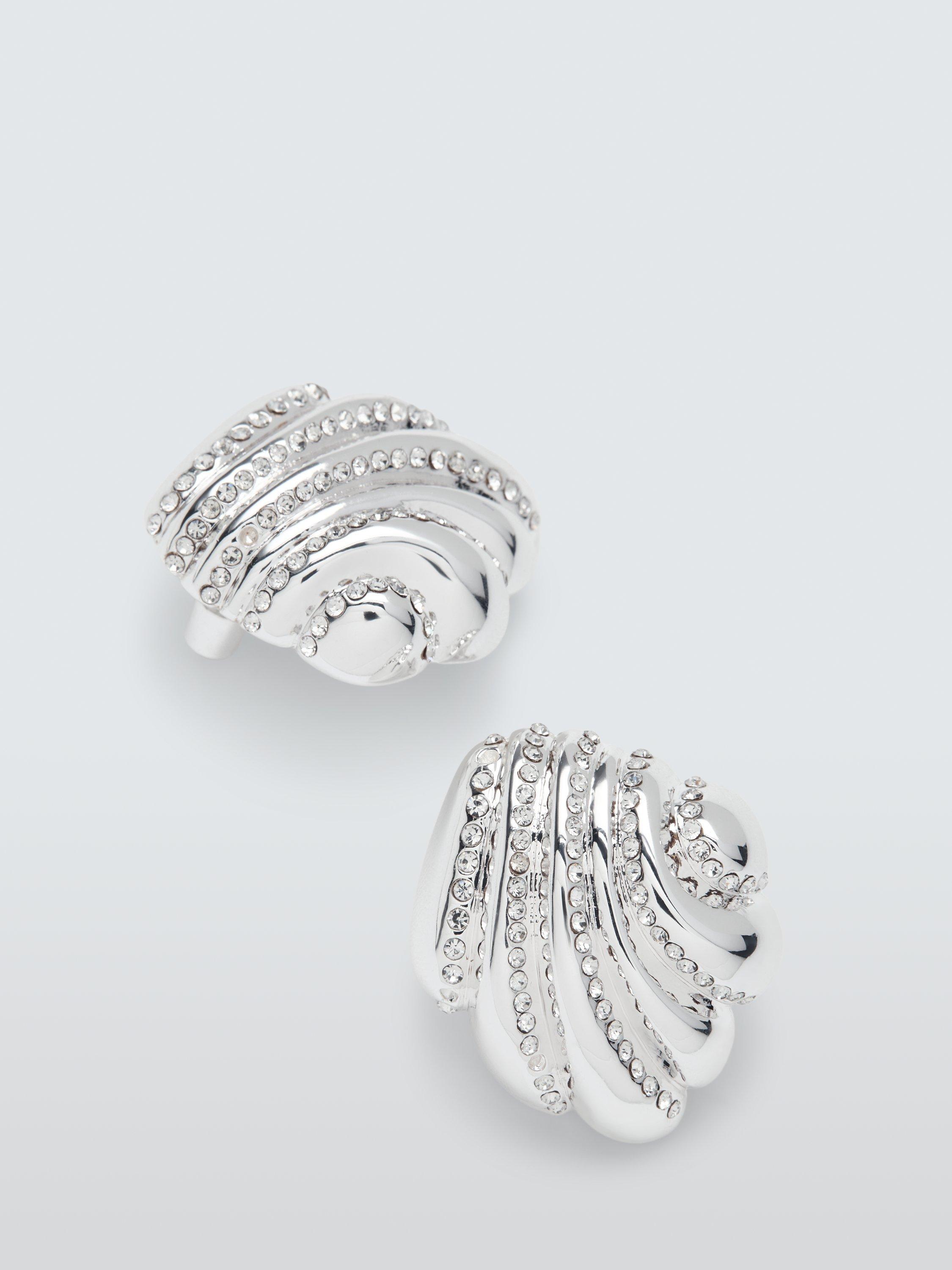 John LewisDiamante Shell Stud Earrings, Silver