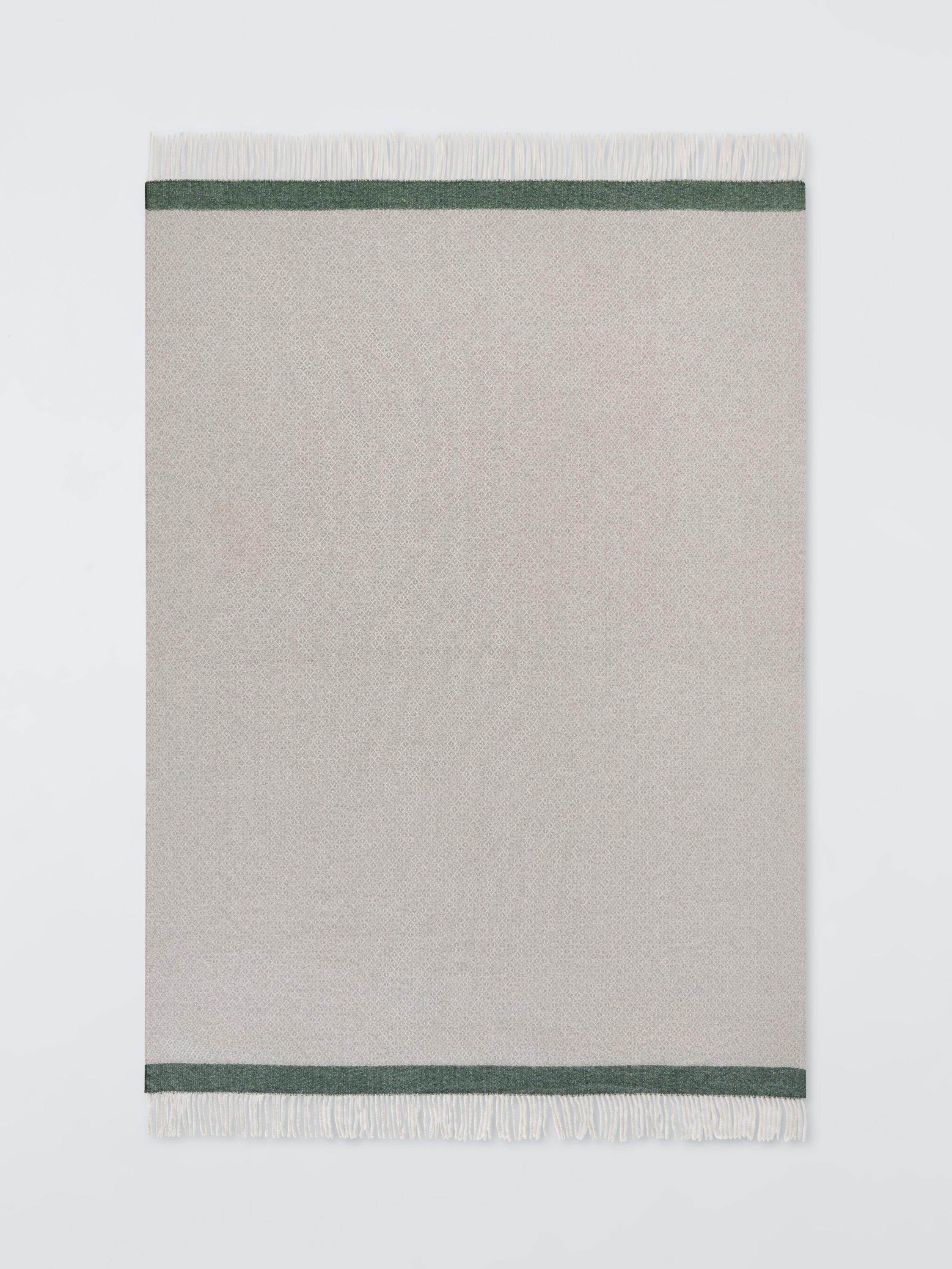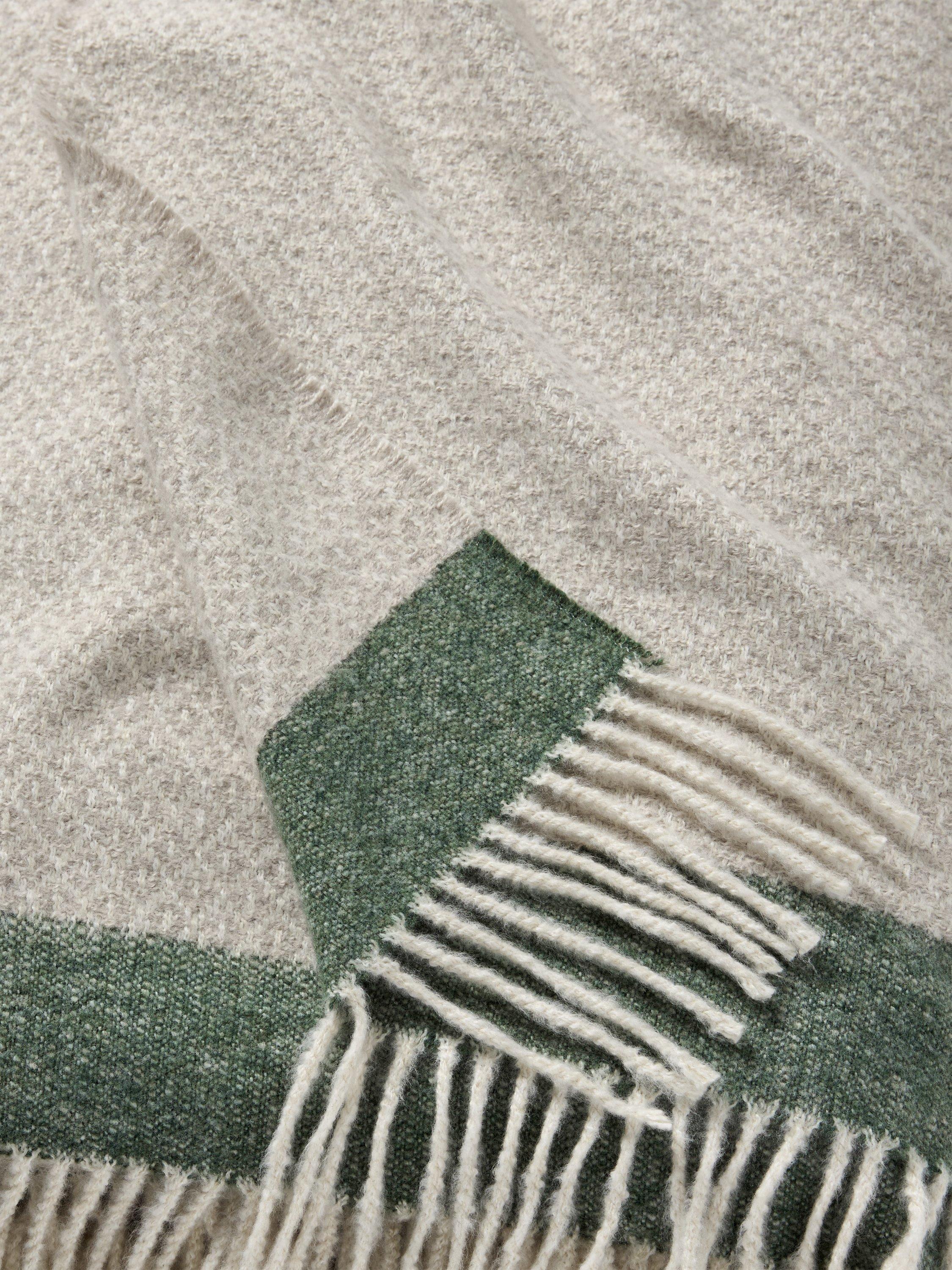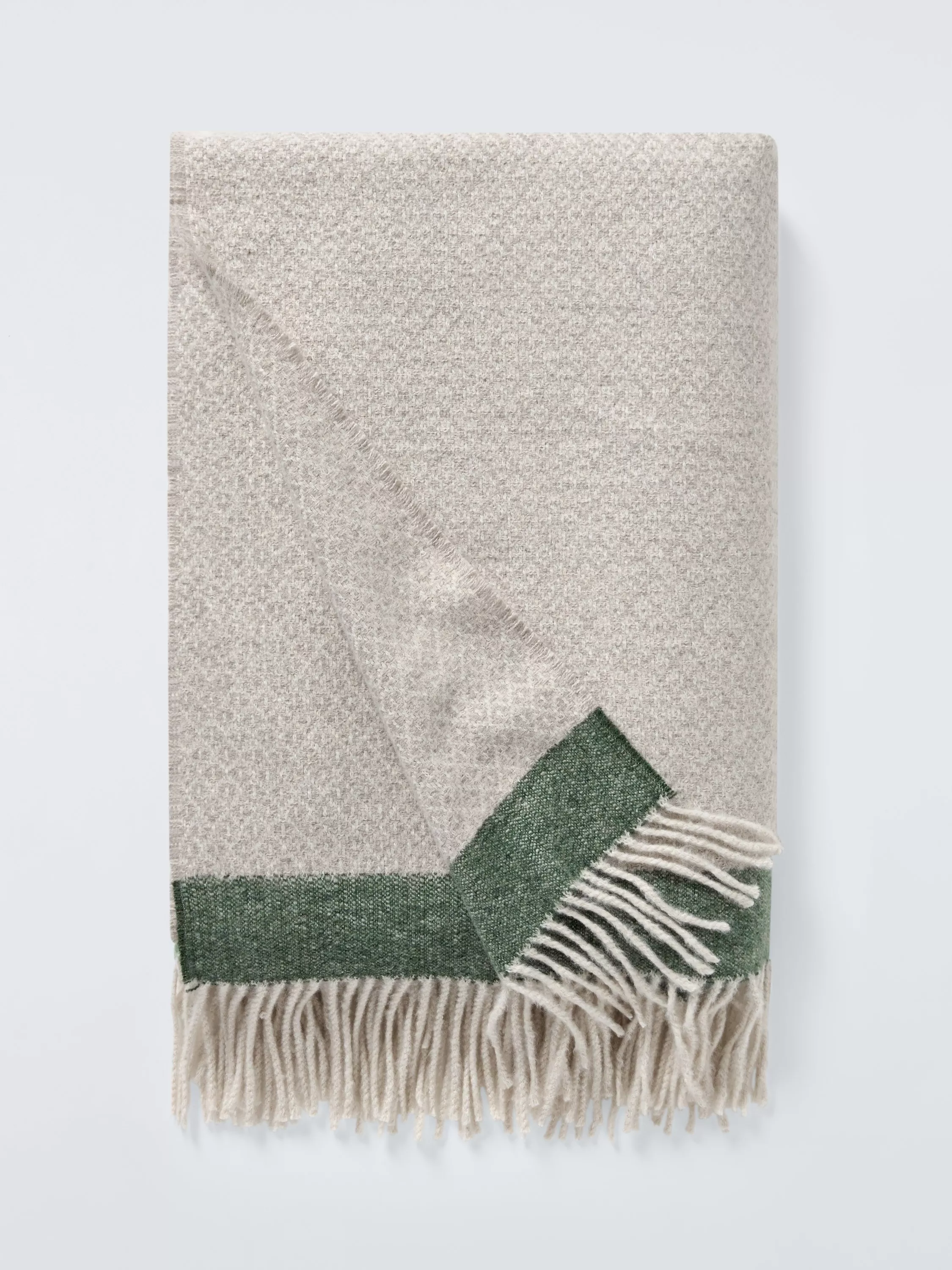 Woven with a subtle diamond pattern, this soft polyester throw is edged in green and has a fringed edge. Perfect for the bedroom or snuggling up in your favourite chair.
