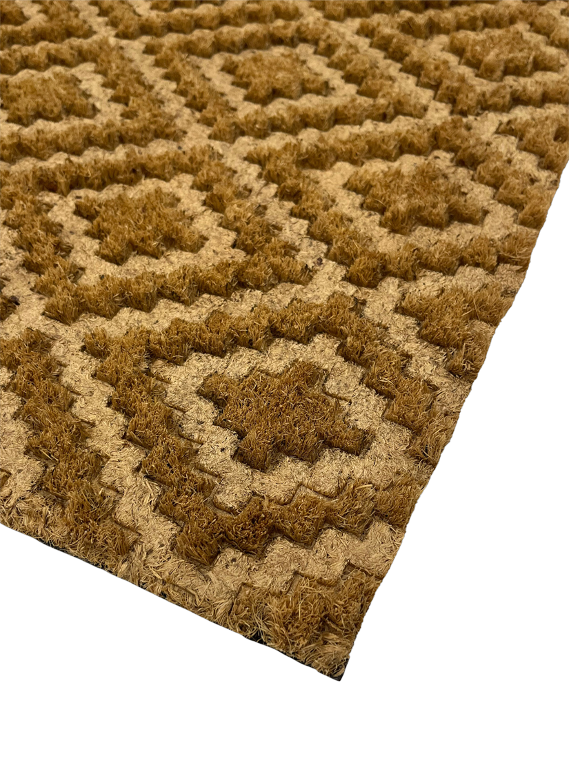 A hard-wearing coir door mat with an eye-catching diamond embossed design.