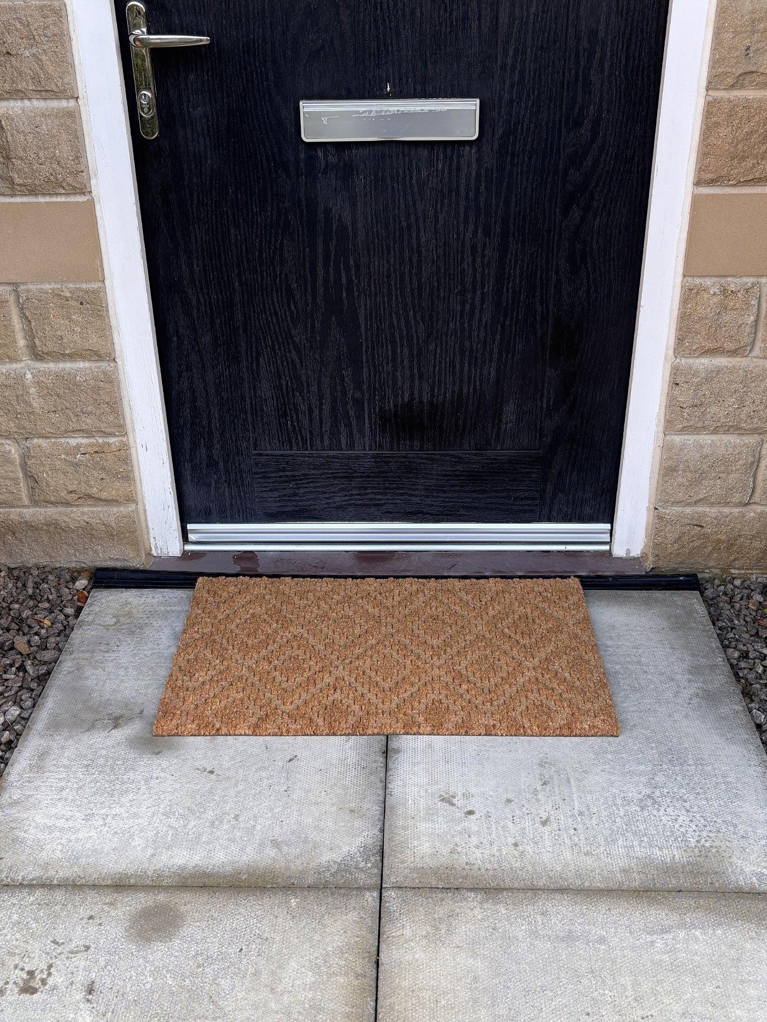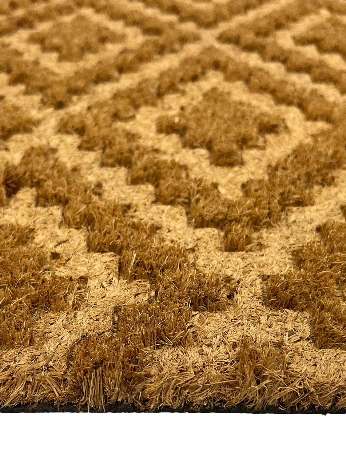 A hard-wearing coir door mat with an eye-catching diamond embossed design.