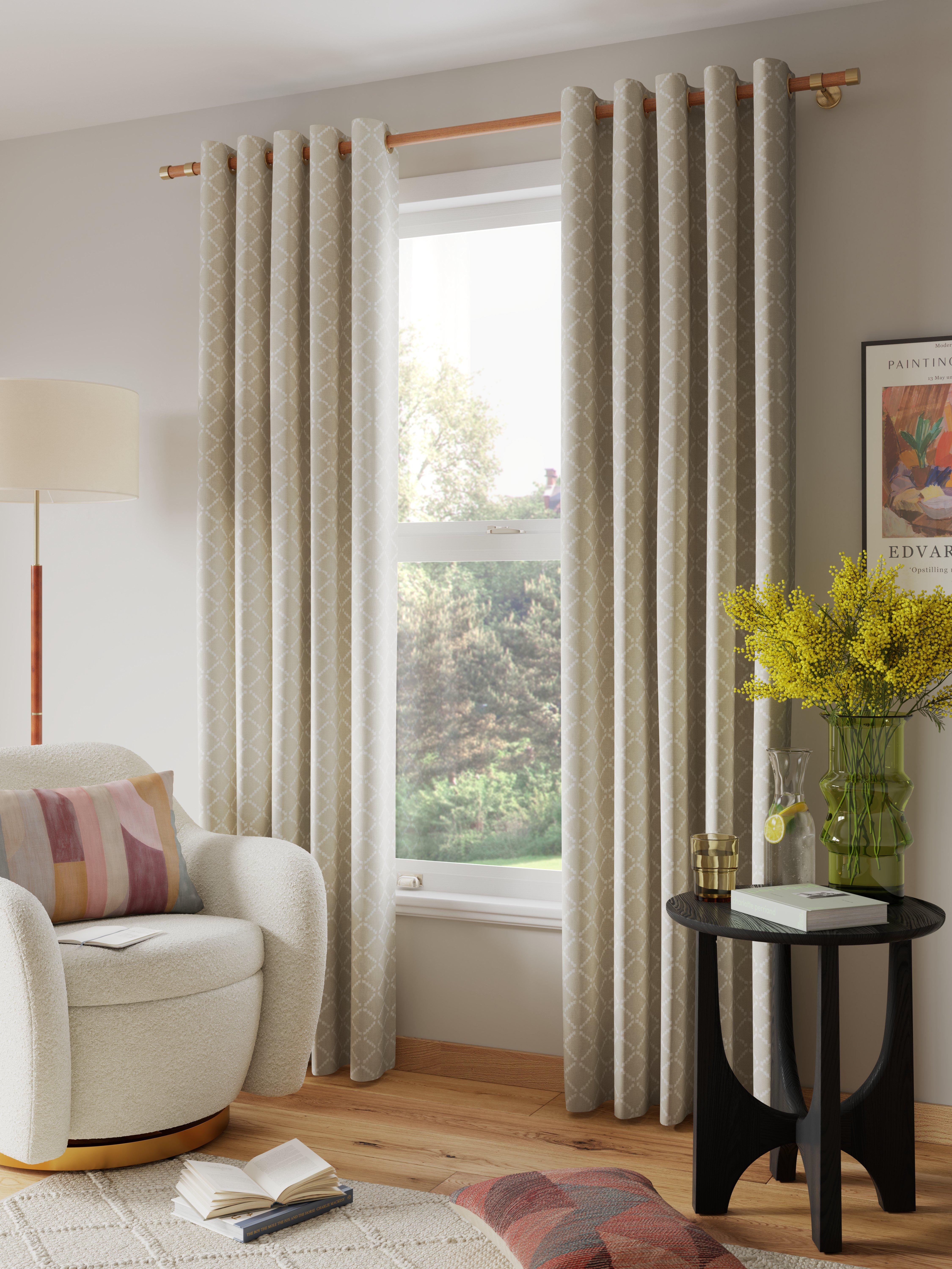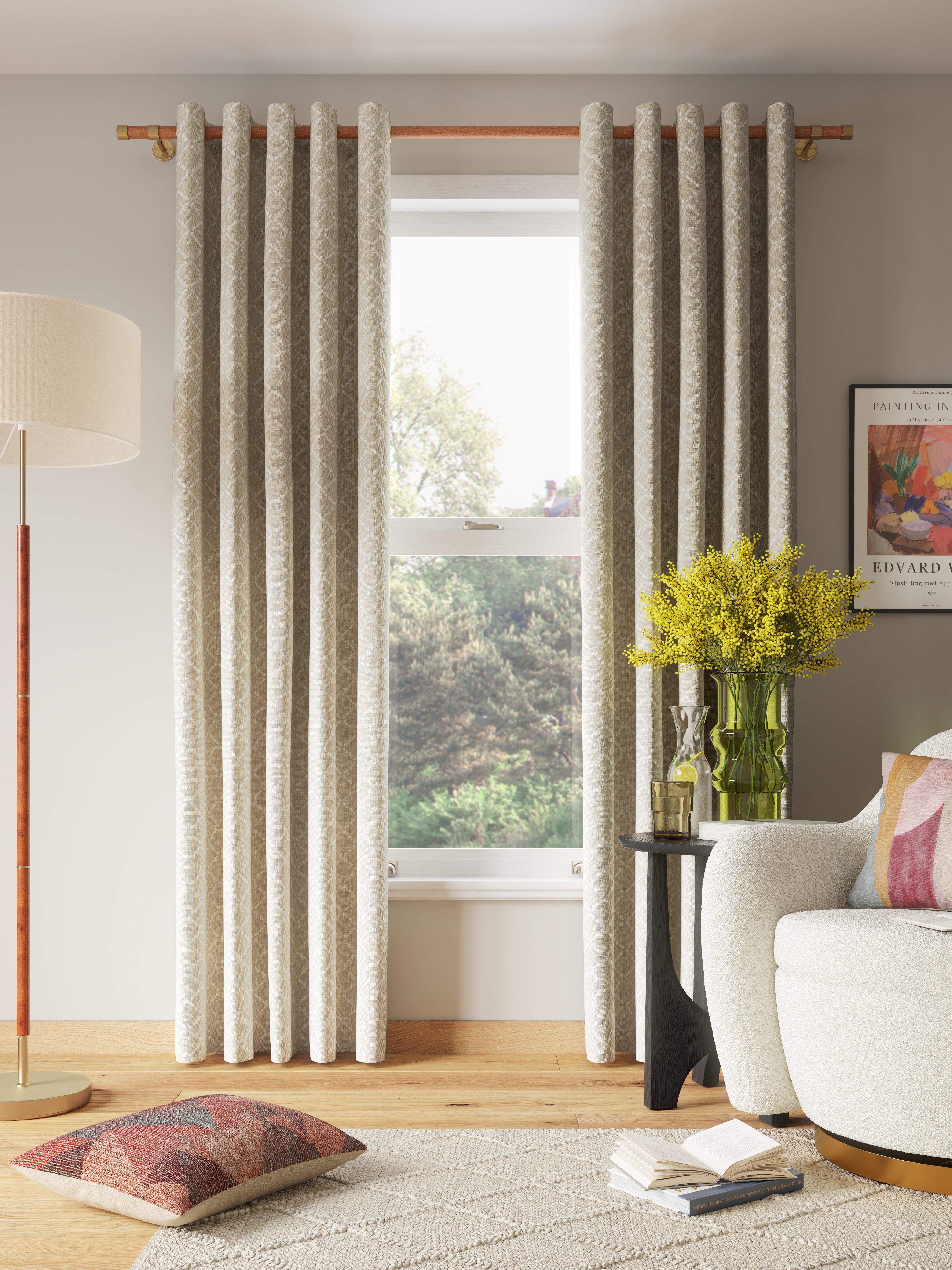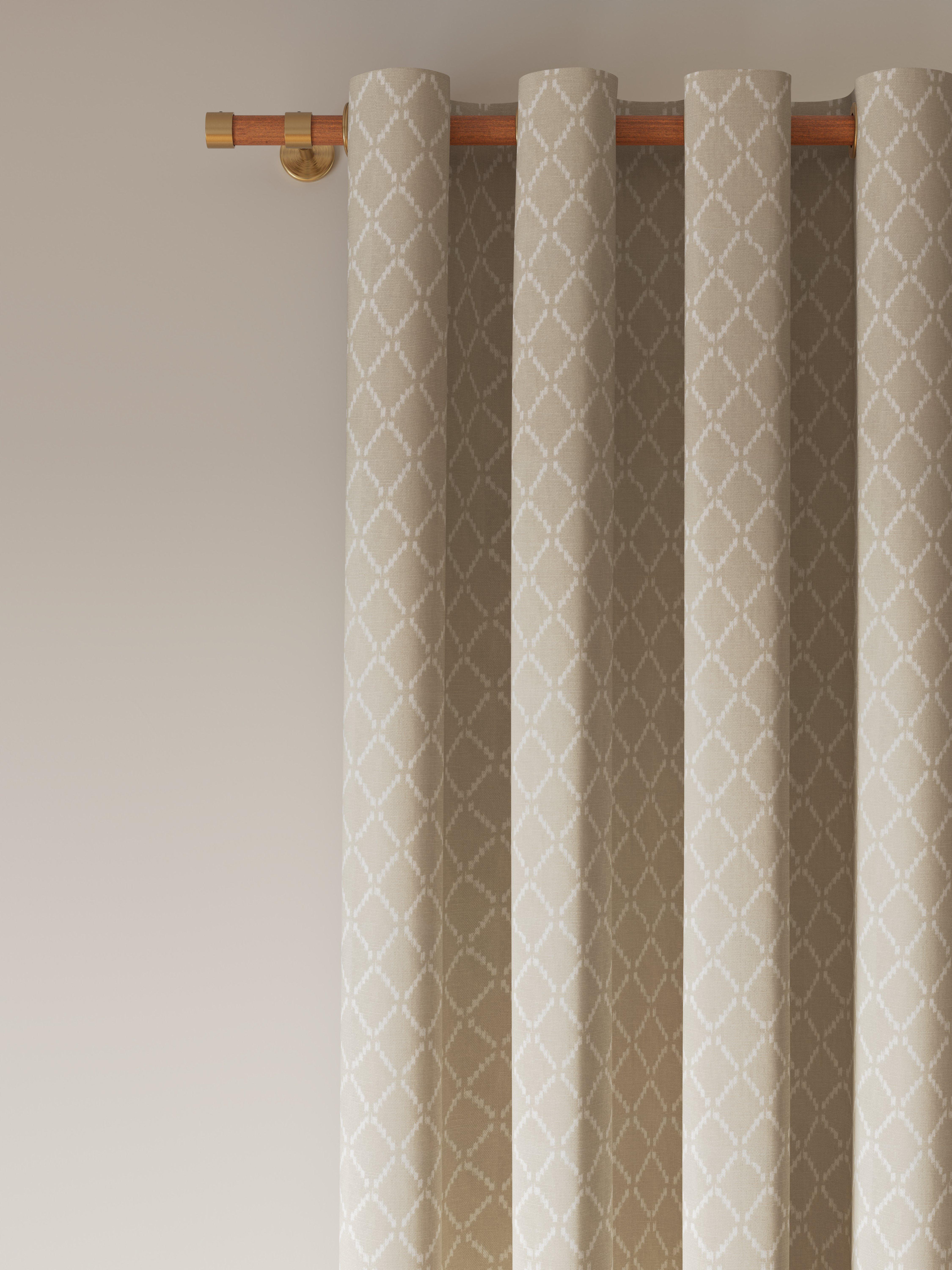 John Lewis ANYDAYJohn Lewis Diamond Ikat Print Pair Lined Eyelet Curtains, Putty