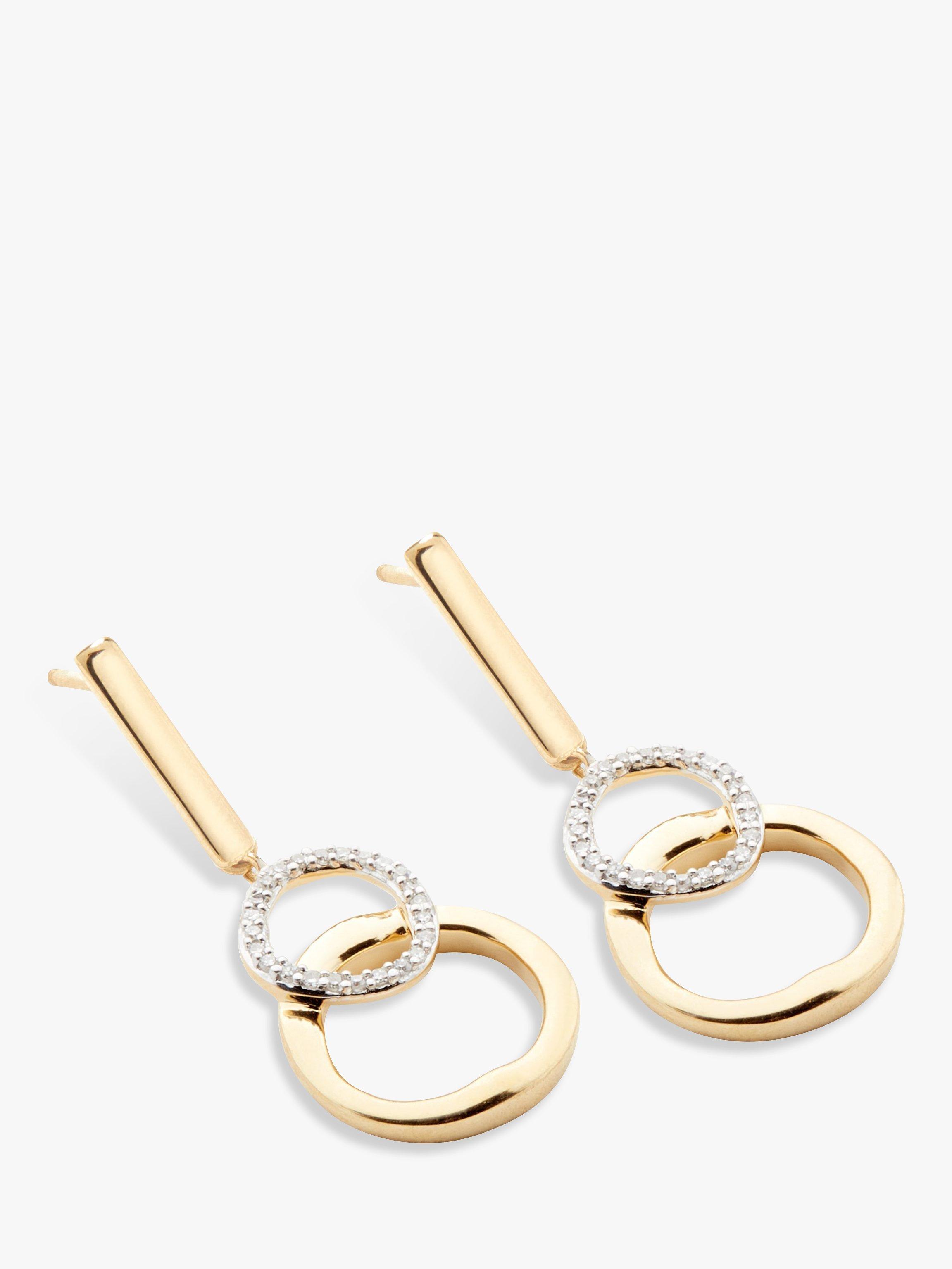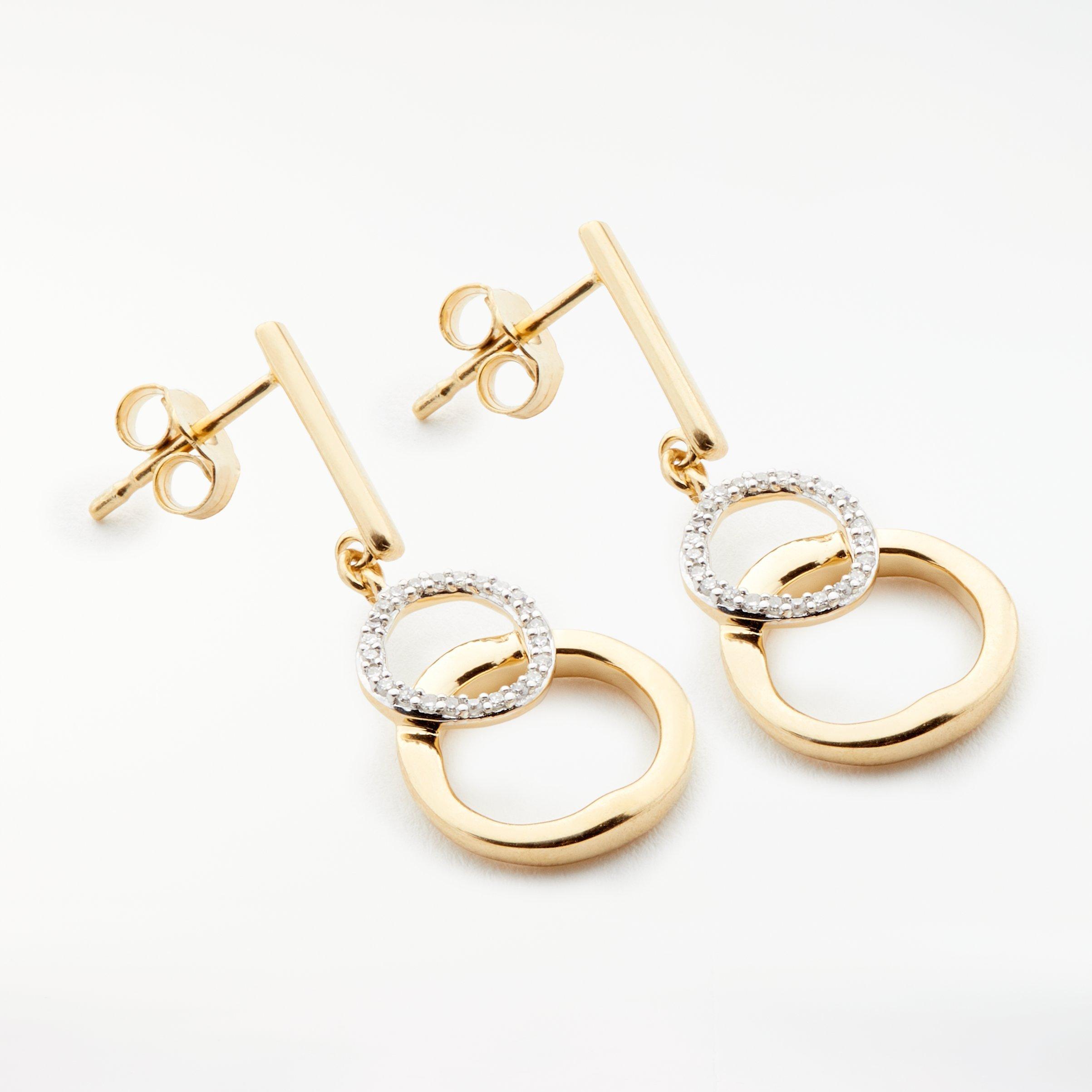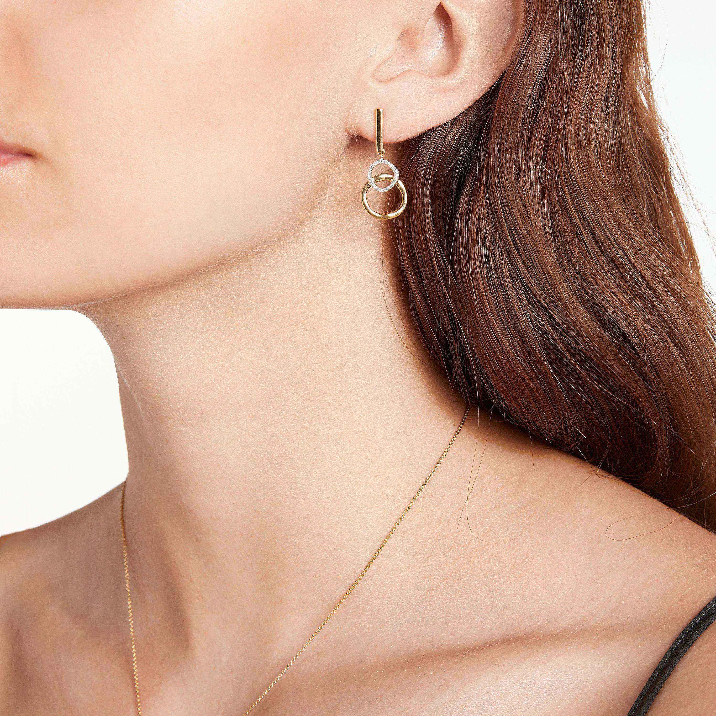 Designed in a choice of finishes, the earrings come with two interlinked circle-shaped elements. They have a slightly uneven texture and the smaller one is set with dazzling brilliant-cut diamonds. The earrings fasten with post fittings that are for pierced ears only.