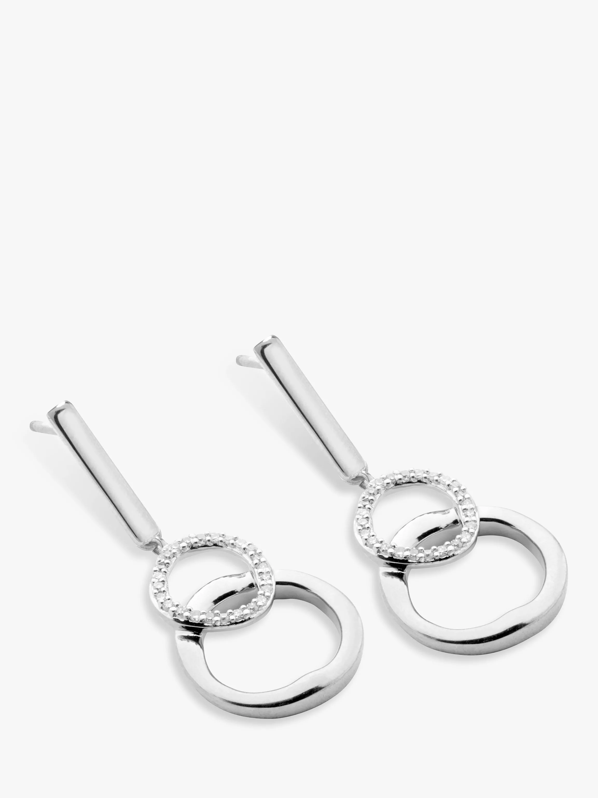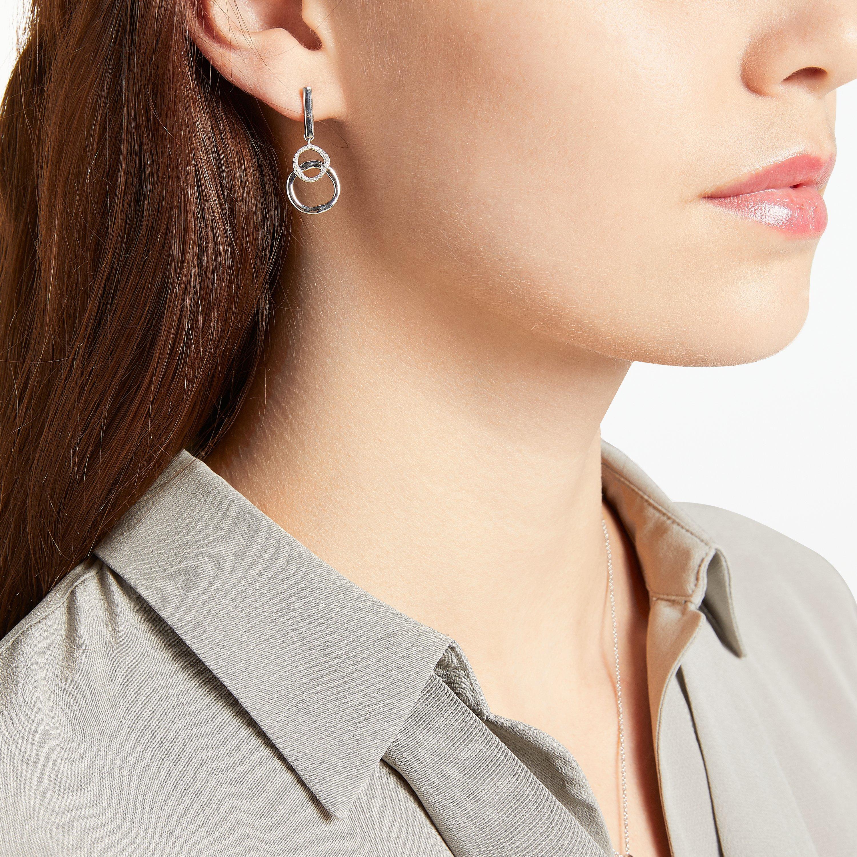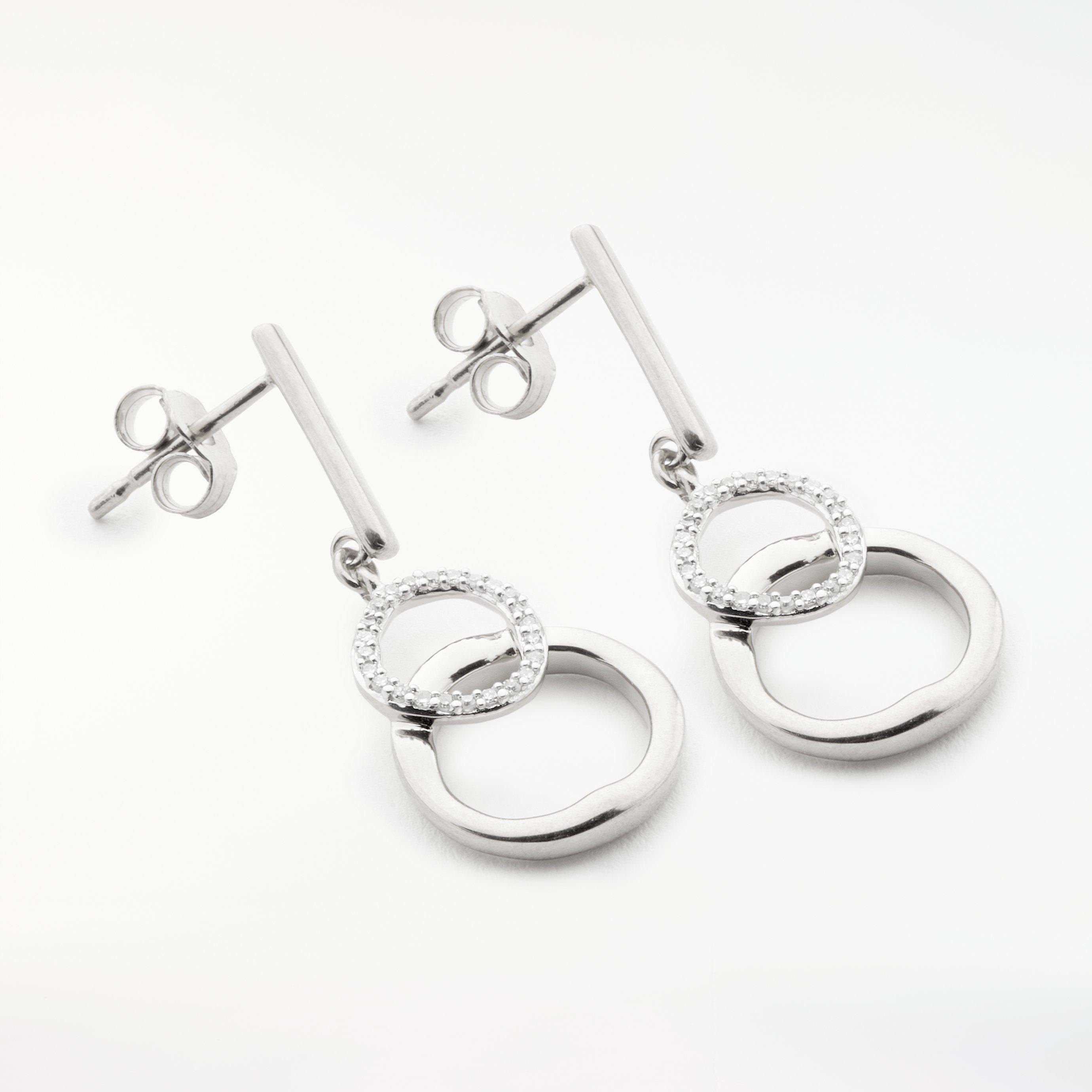 Designed in a choice of finishes, the earrings come with two interlinked circle-shaped elements. They have a slightly uneven texture and the smaller one is set with dazzling brilliant-cut diamonds. The earrings fasten with post fittings that are for pierced ears only.
