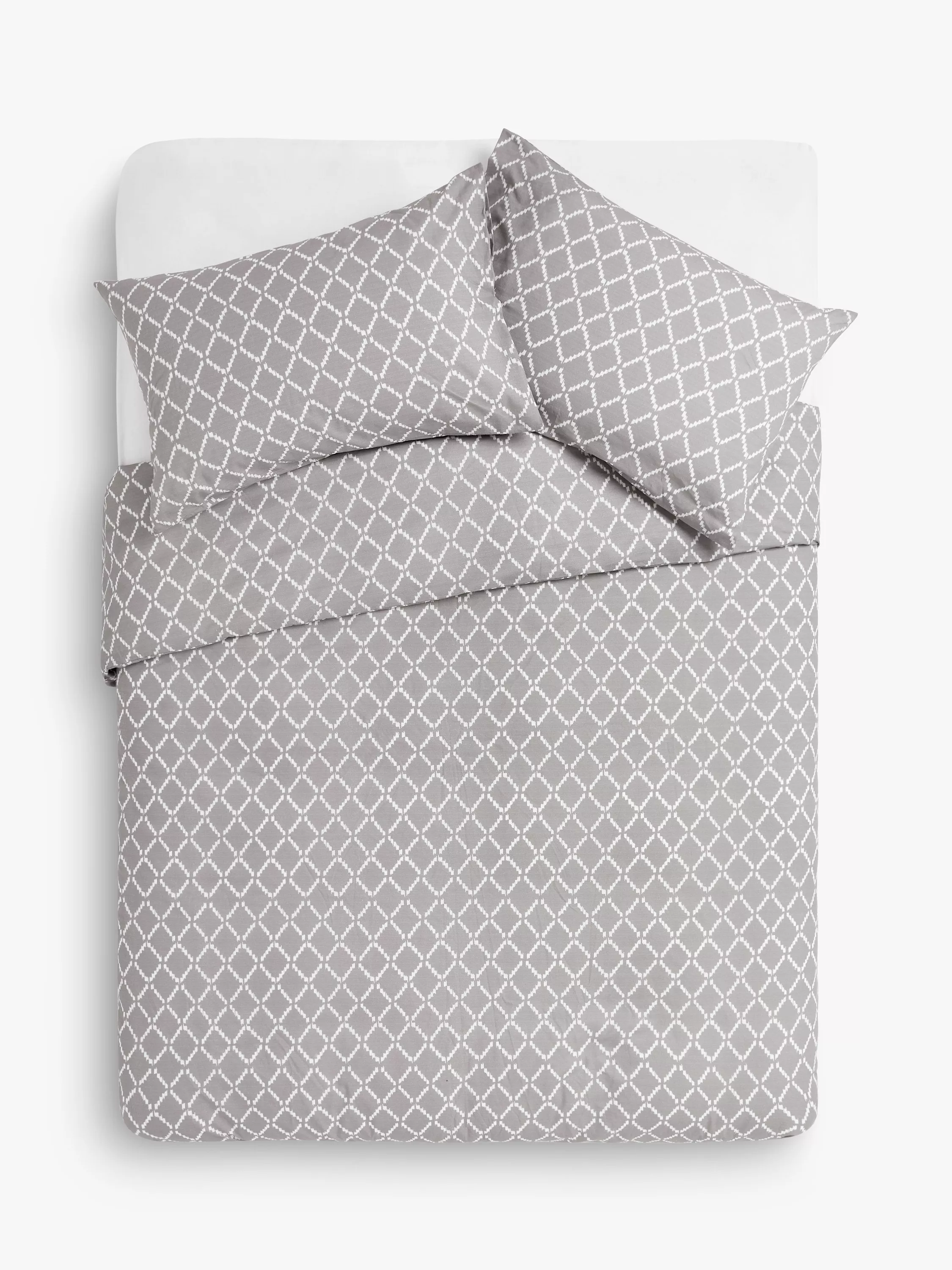 Contemporary diamond print bedding made from a blend of polyester and cotton. It dries quickly, keeps its colour and size and needs minimal ironing.