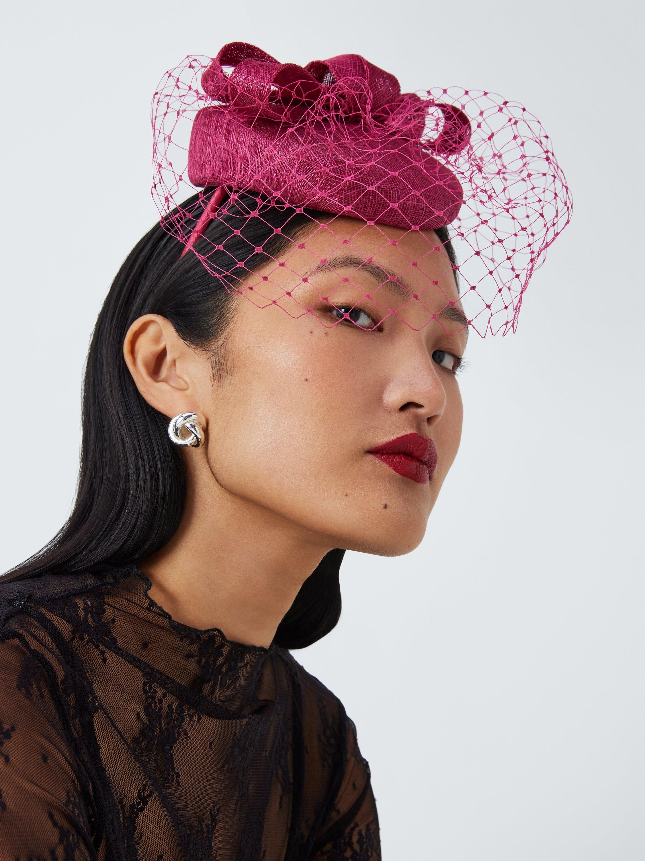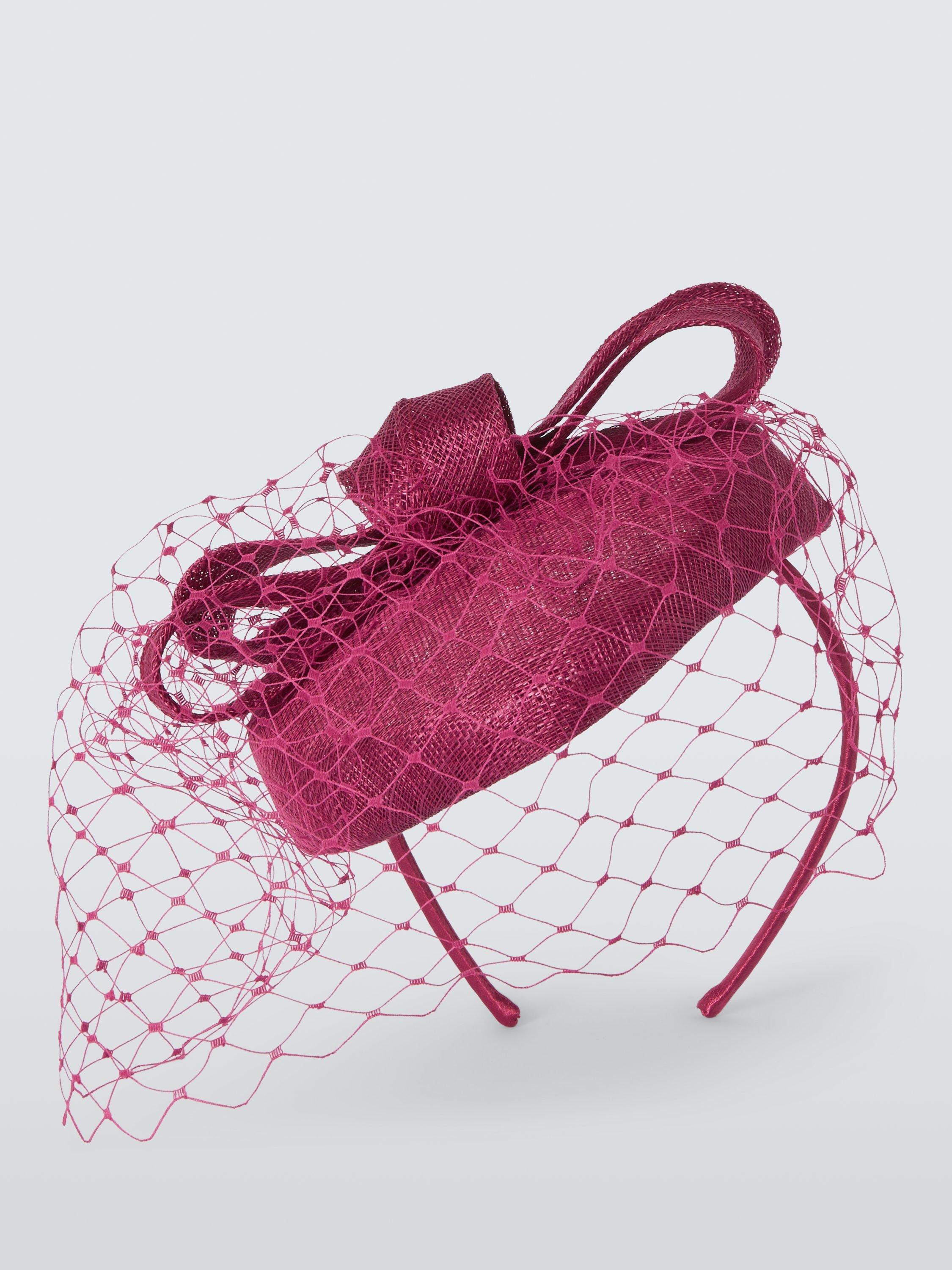 In a flattering mini pill box styling with bow texture and sophisticated veil front, this fascinator is a great choice for your next formal event.