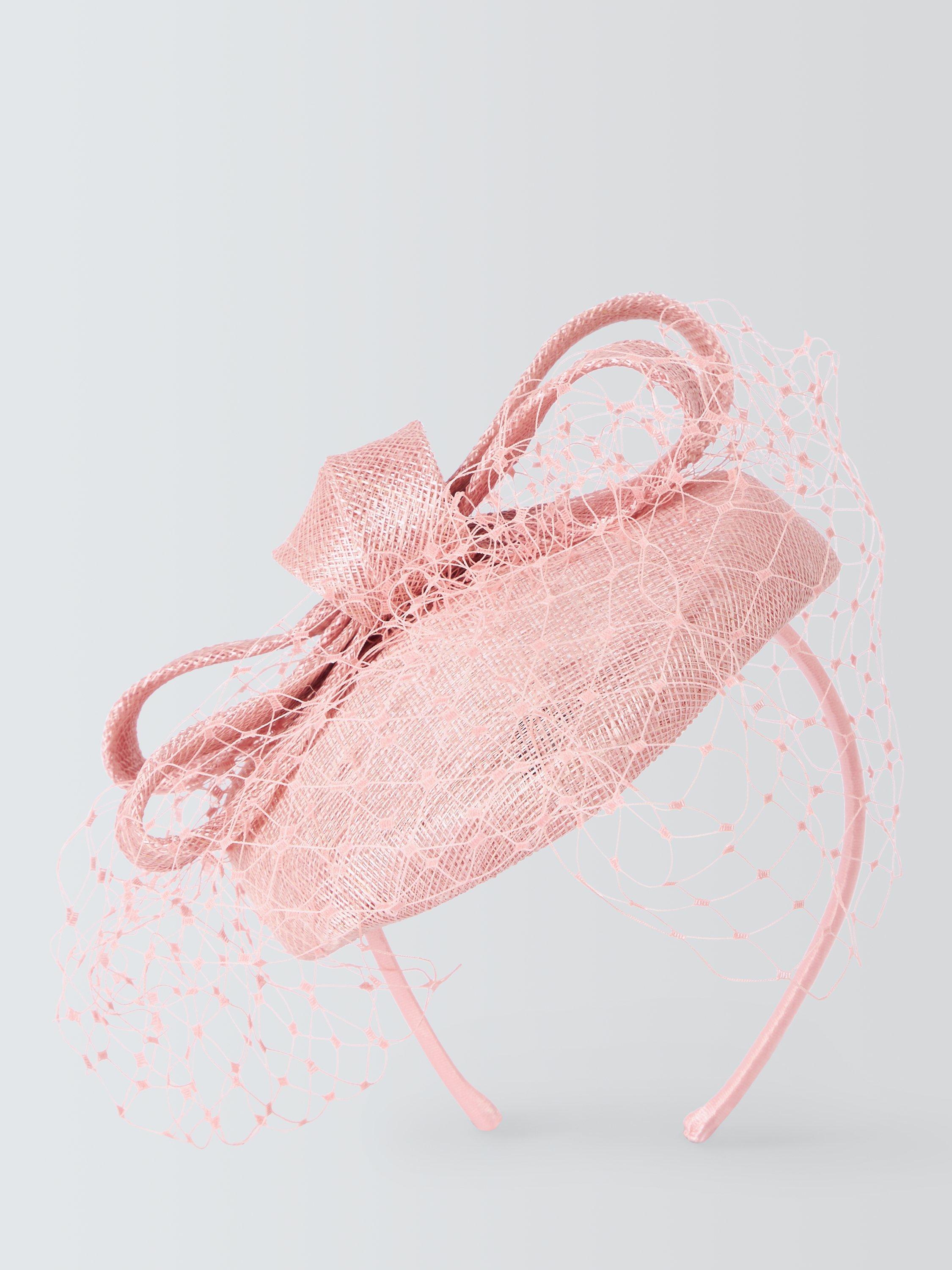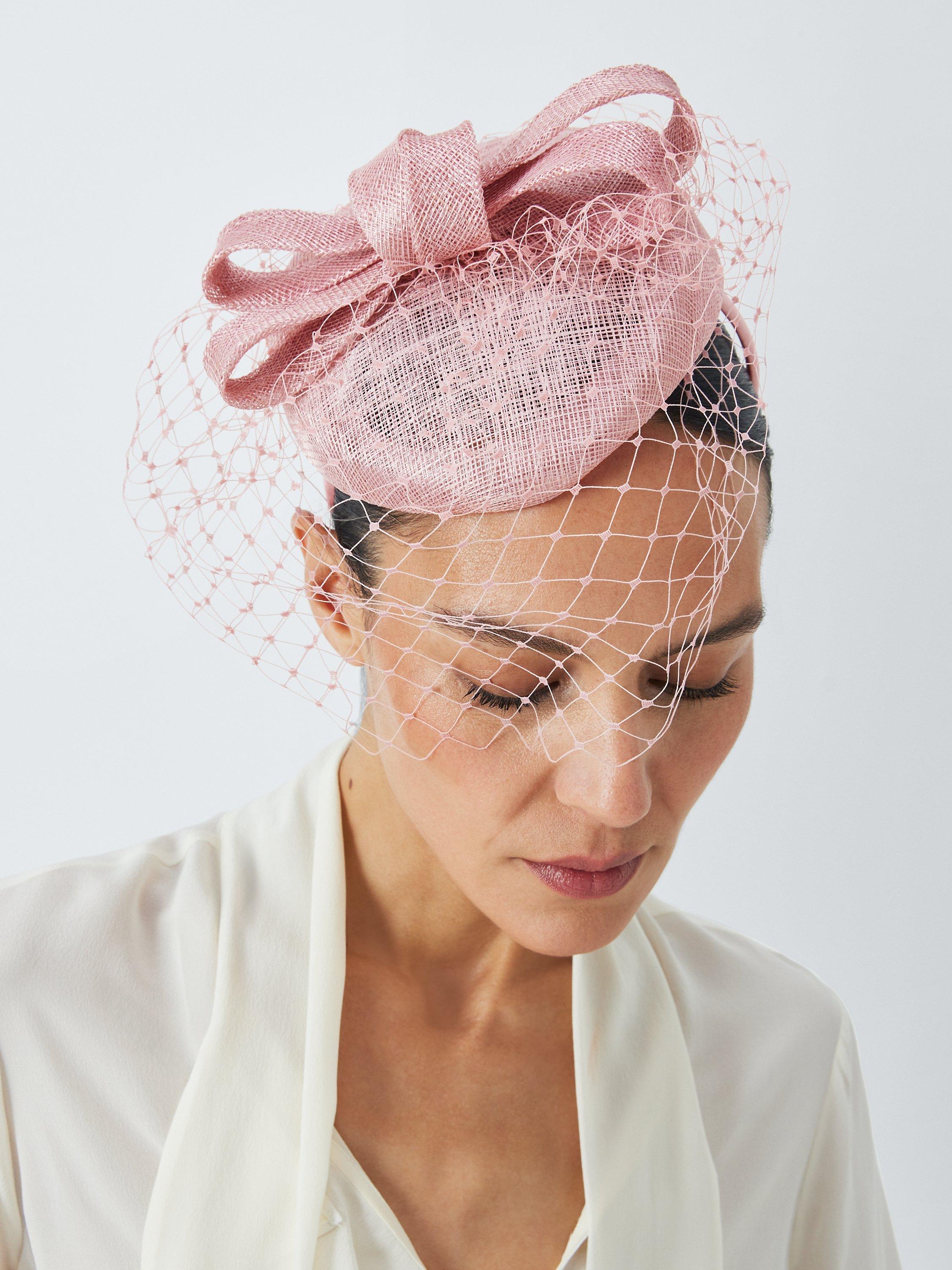 In a flattering mini pill box styling with bow texture and sophisticated veil front, this fascinator is a great choice for your next formal event.