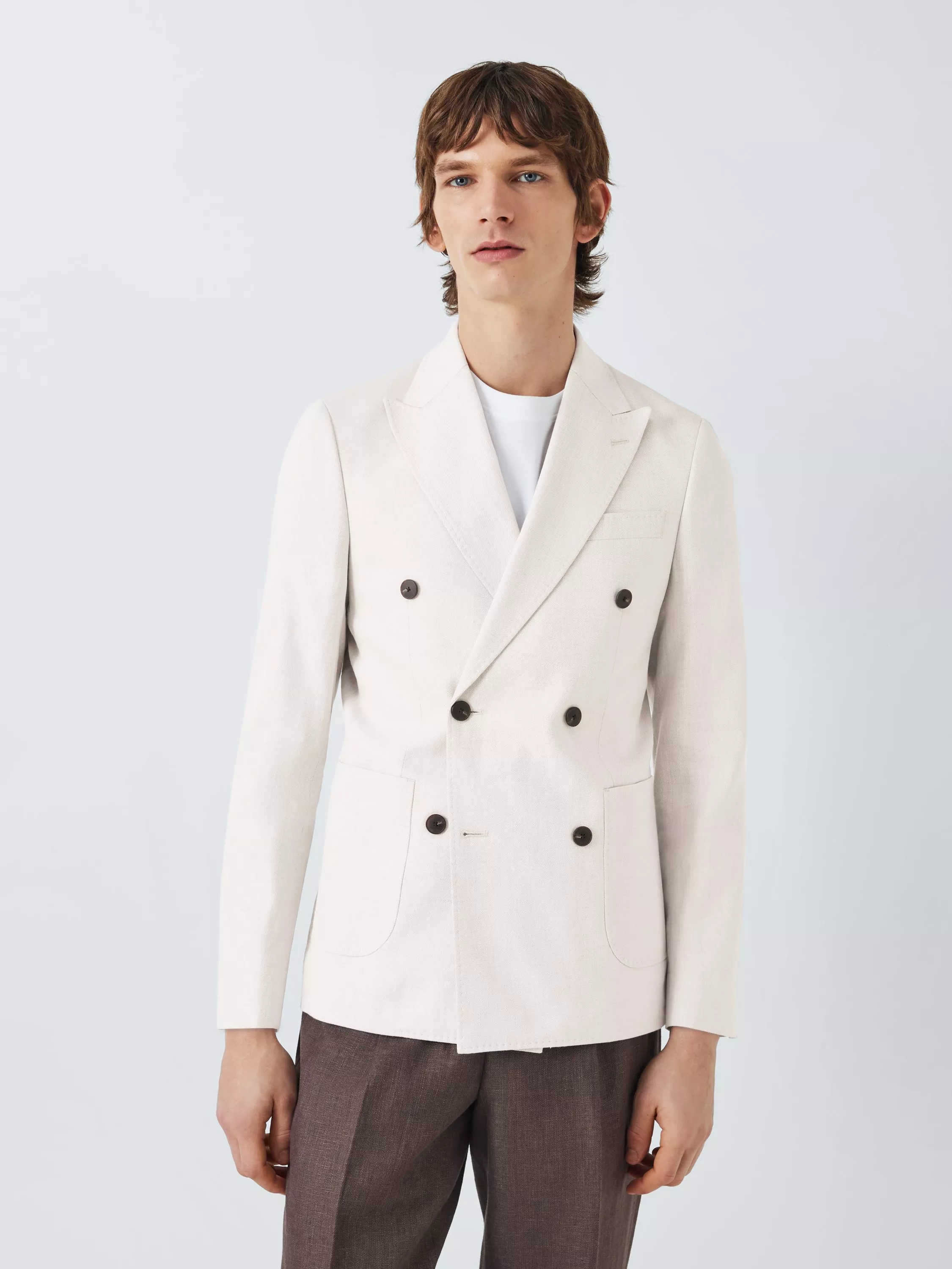 Our Dilham double-breasted blazer is presented here in a twill cream fabric that will smarten up any outfit and is styled with 2 front patch pockets and cut to our regular fit specifications.