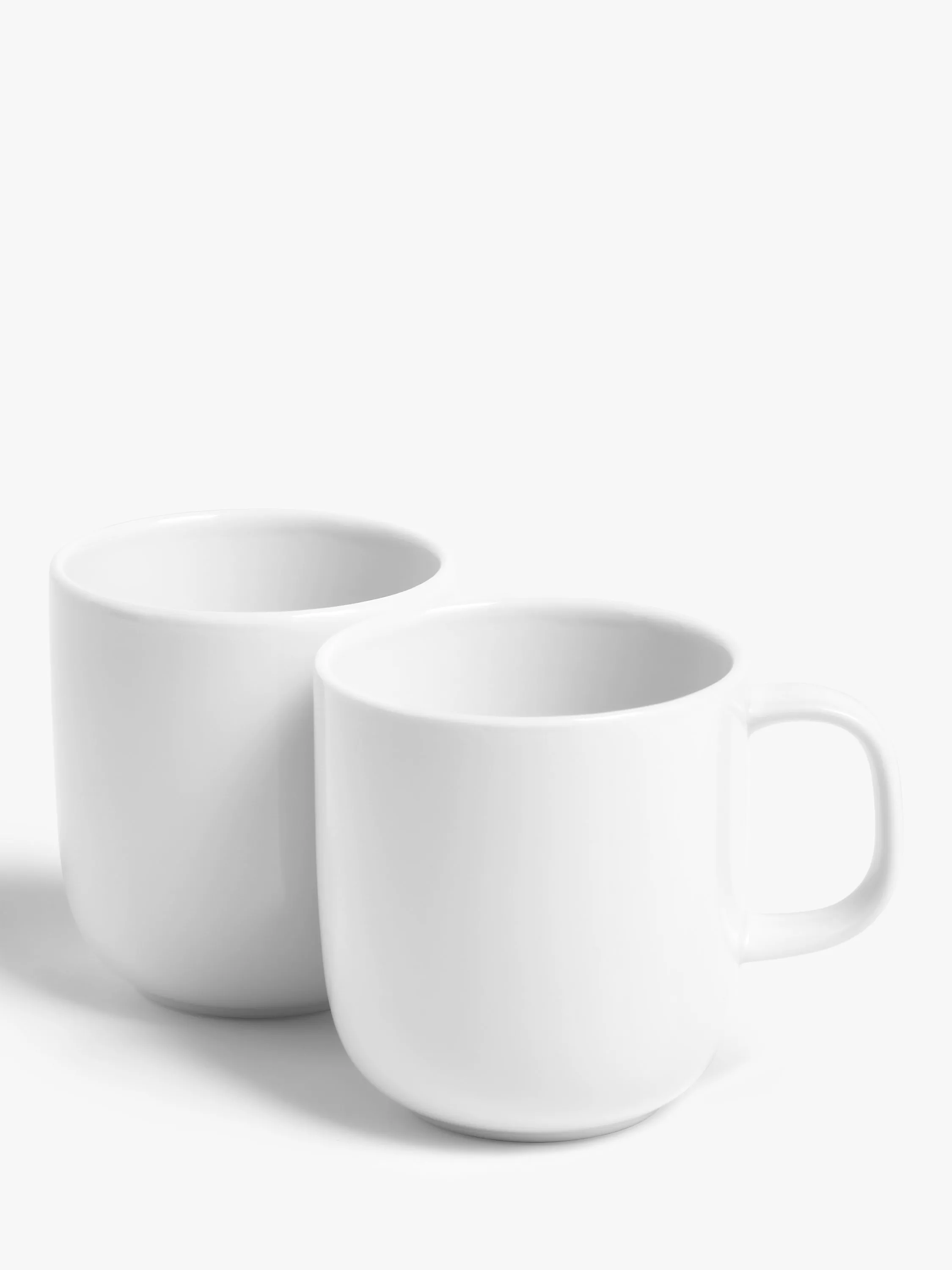 Contemporary pair of mugs from our Dine collection. Made of porcelain, they're dishwasher, microwave and freezer safe.