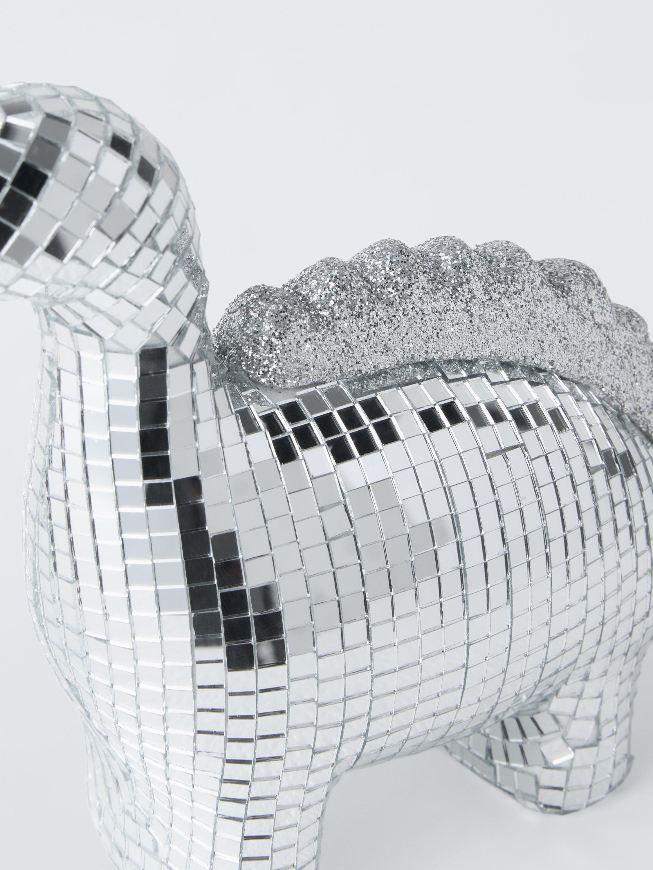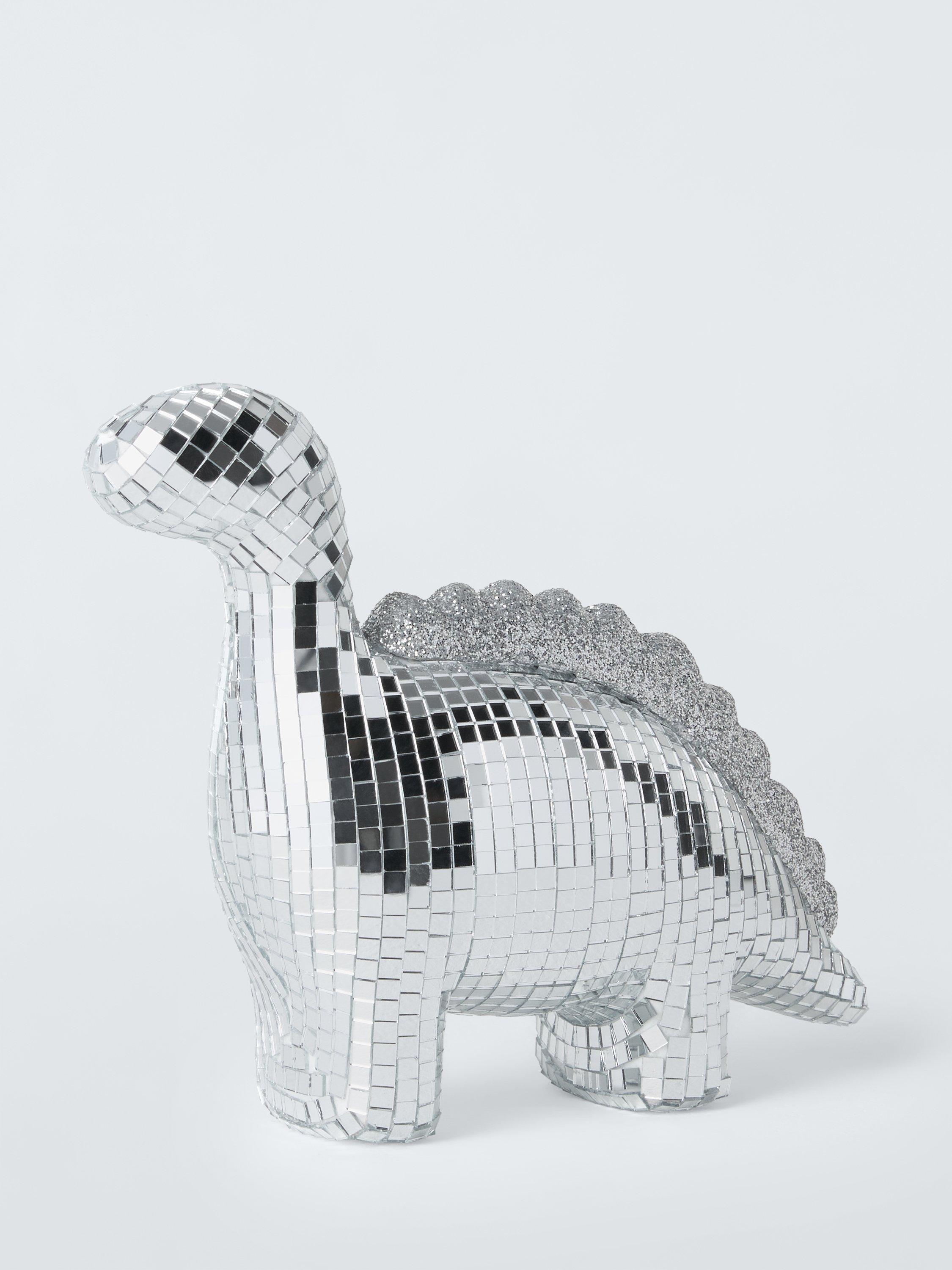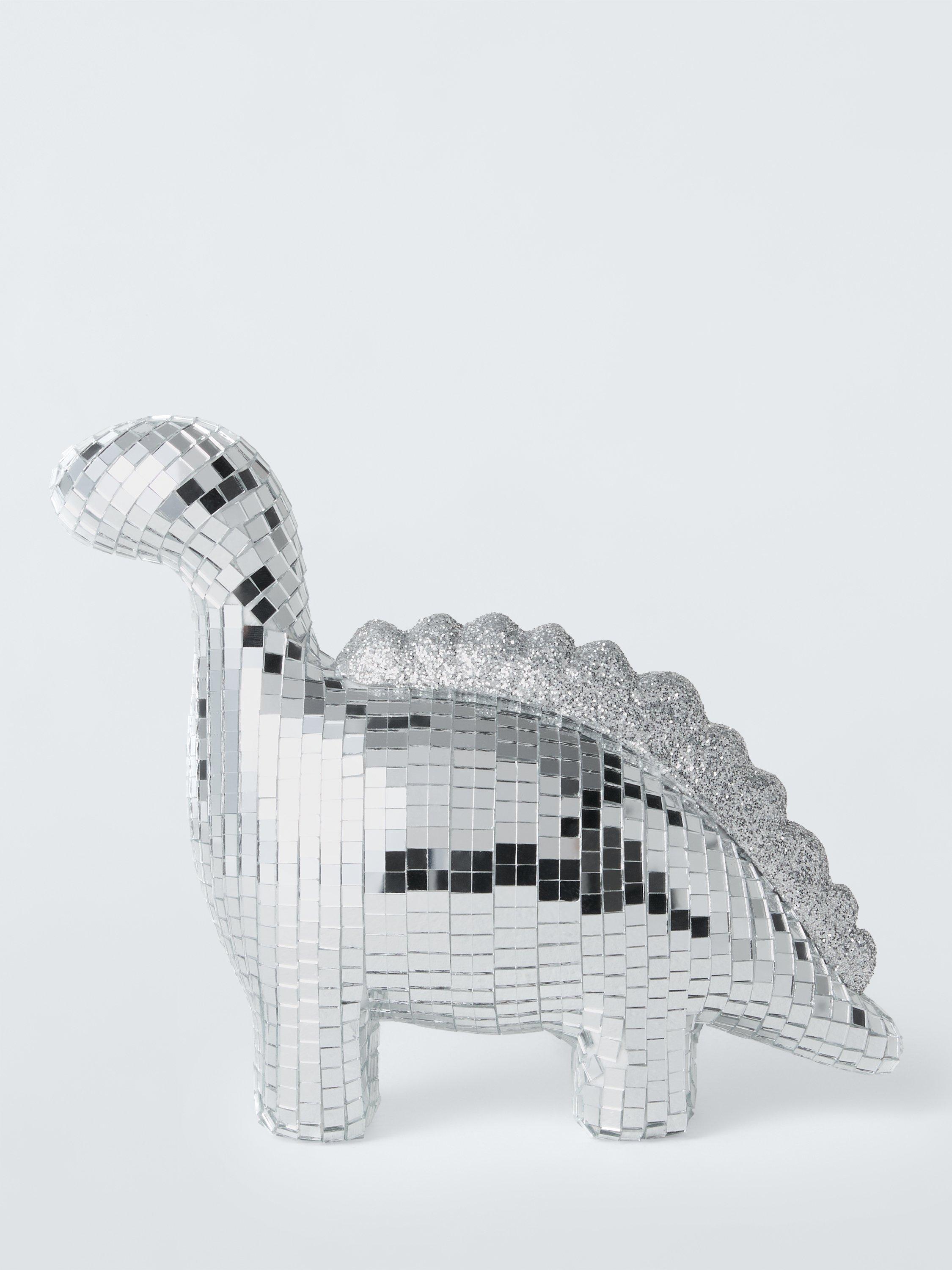 This seasonal stegosaurus is all dressed to party in silver glass chips with a sparkly spine. Just stand him in the right spot to cast scattered light around the room.