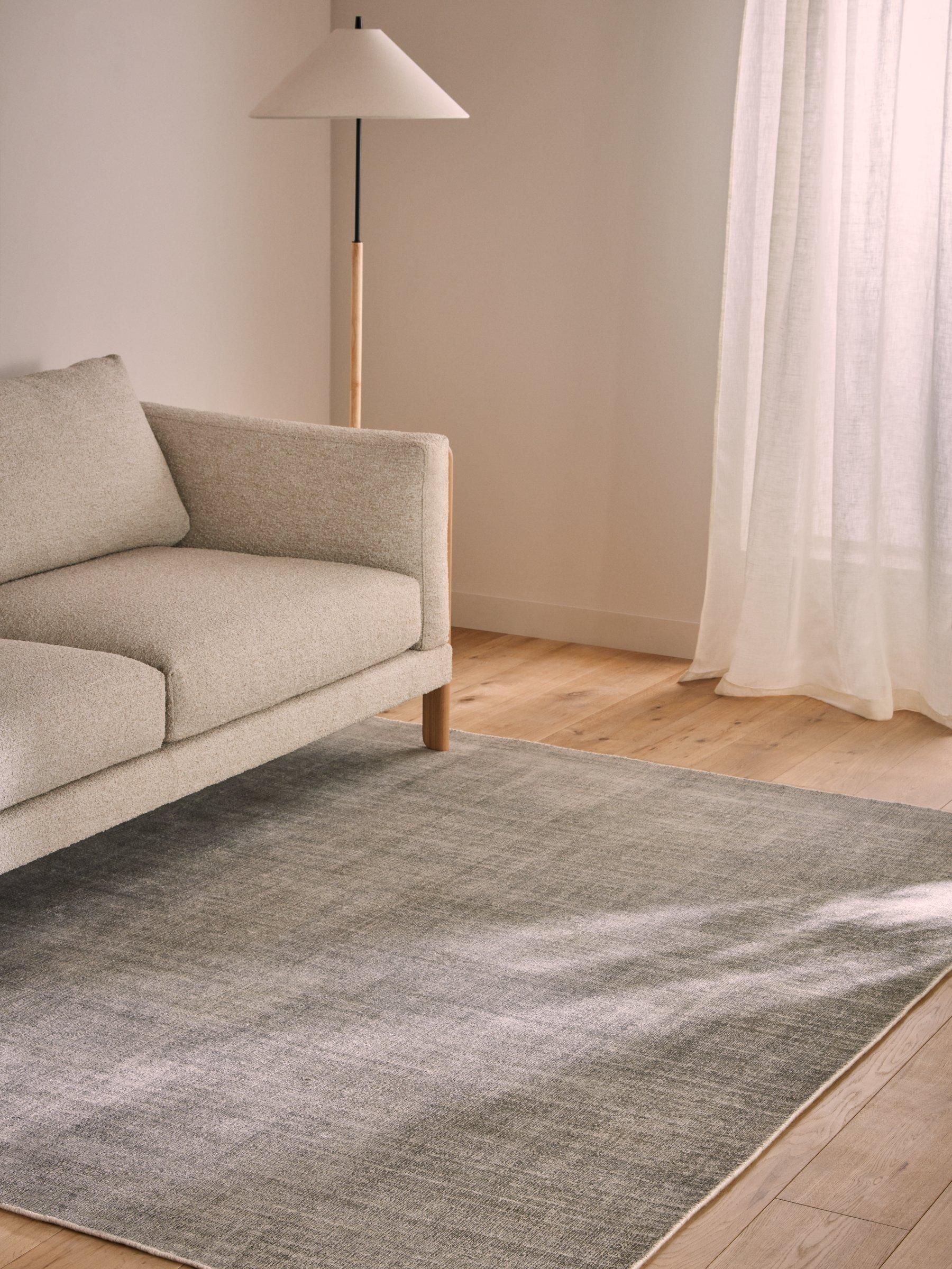 A subtle upgrade on a purely plain design, this rug is woven with a tonal palette of colours from a mixture of yarns to offer the subtlest of variations. Slightly contrasted with a whipped edge all around, it's ideal for rooms that are already busy with colour - perfect for bedrooms where there is always a different colour duvet set on as this will match well with all of them.