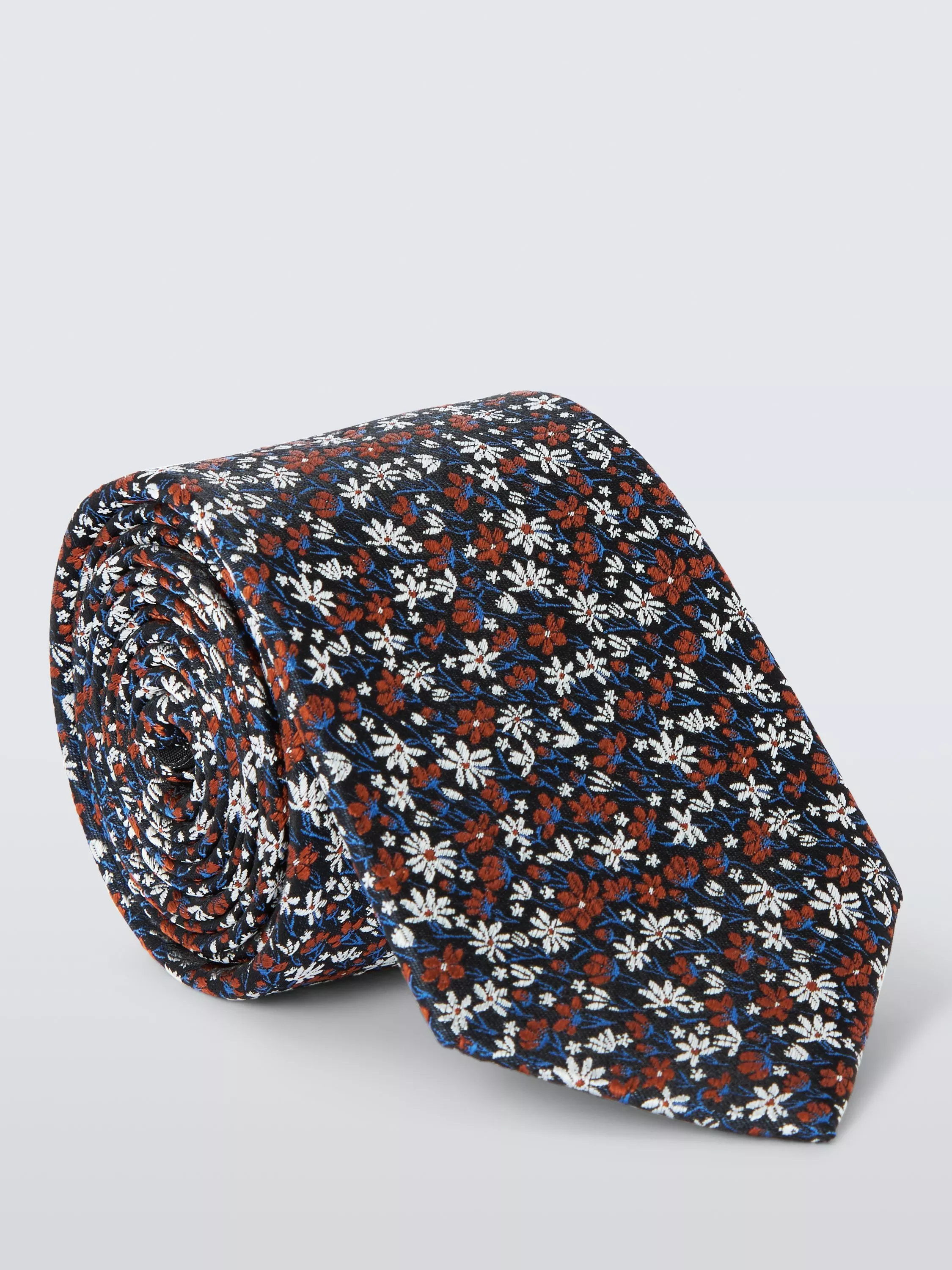 John LewisDitsy Floral Silk Tie, Navy/Orange