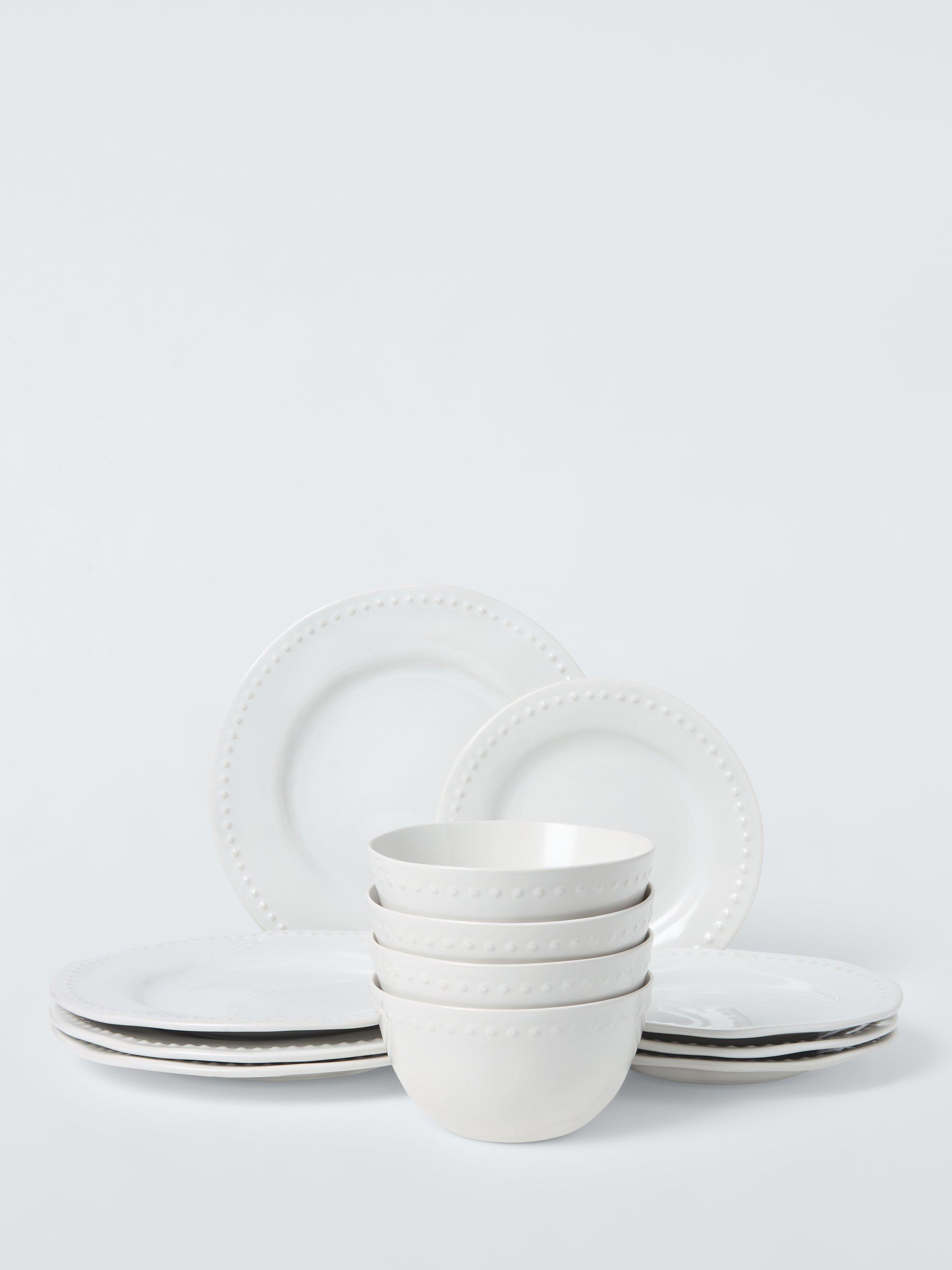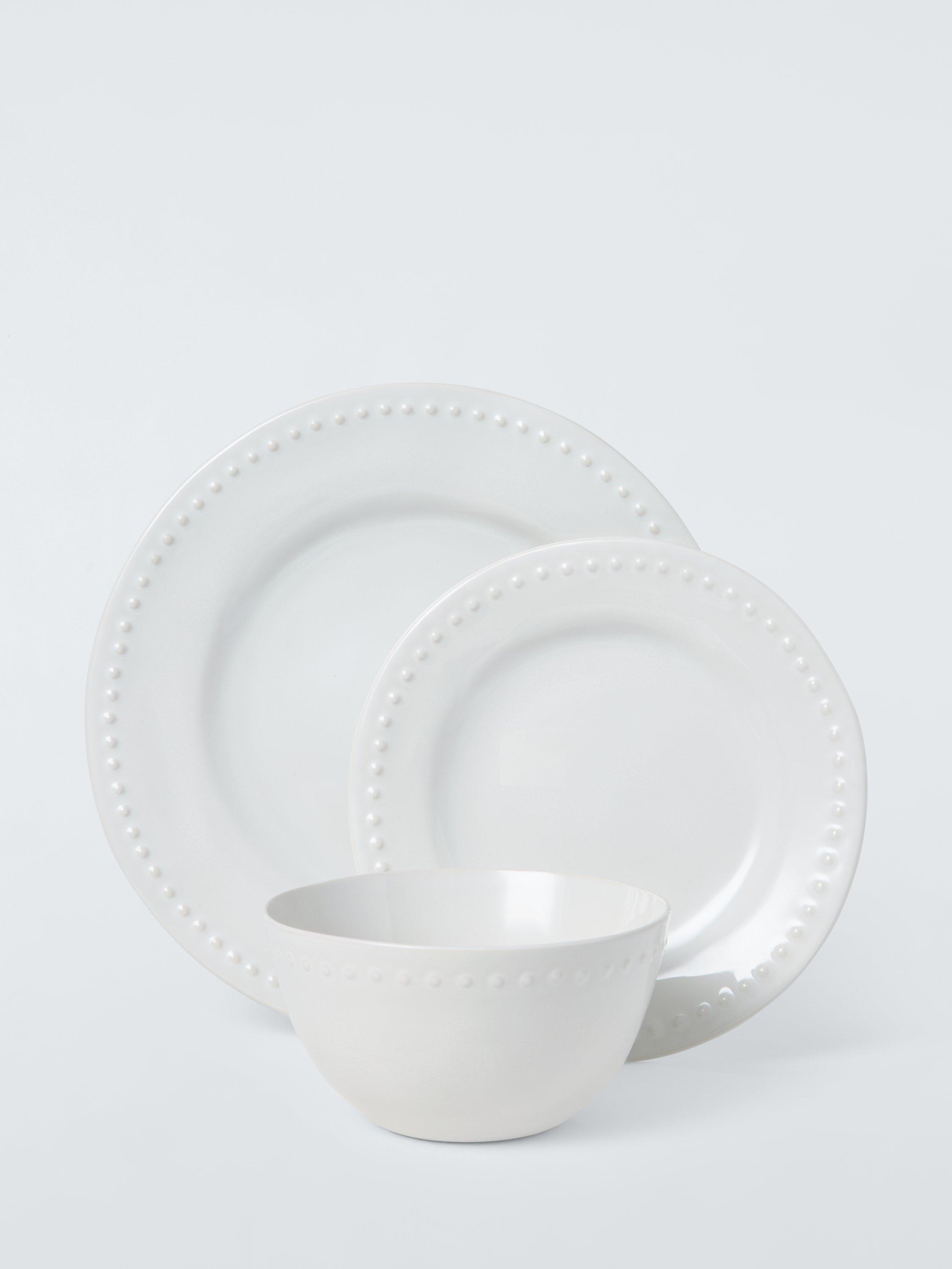 John LewisDot Stoneware Dinnerware Set, 12 Piece, White