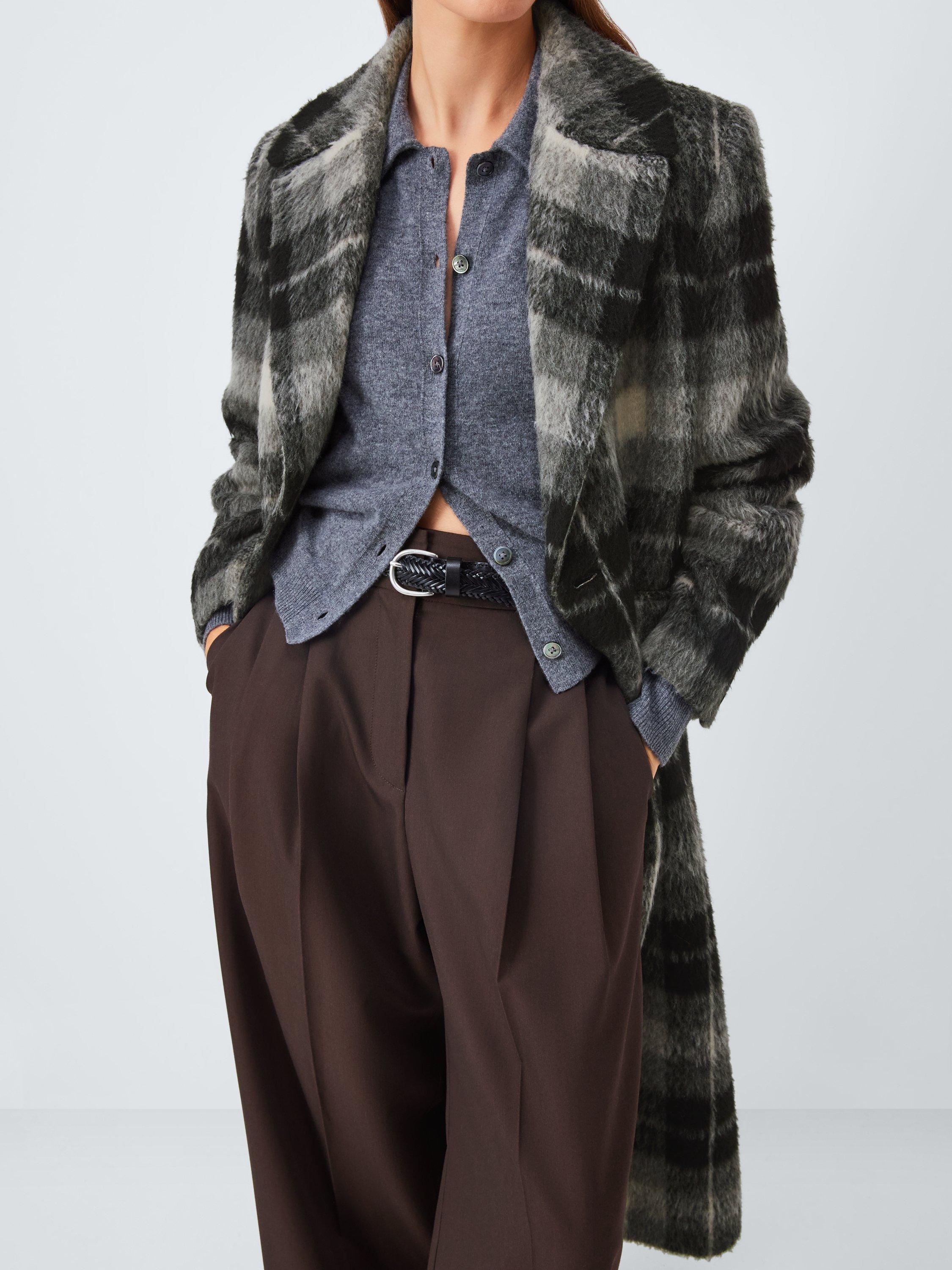 Double-breasted coat in a heritage-inspired check pattern with a notch lapel and two flap pockets. Lined for comfortable wear, it's made from a fabric blend with naturally temperature-regulating wool for a soft hand feel.