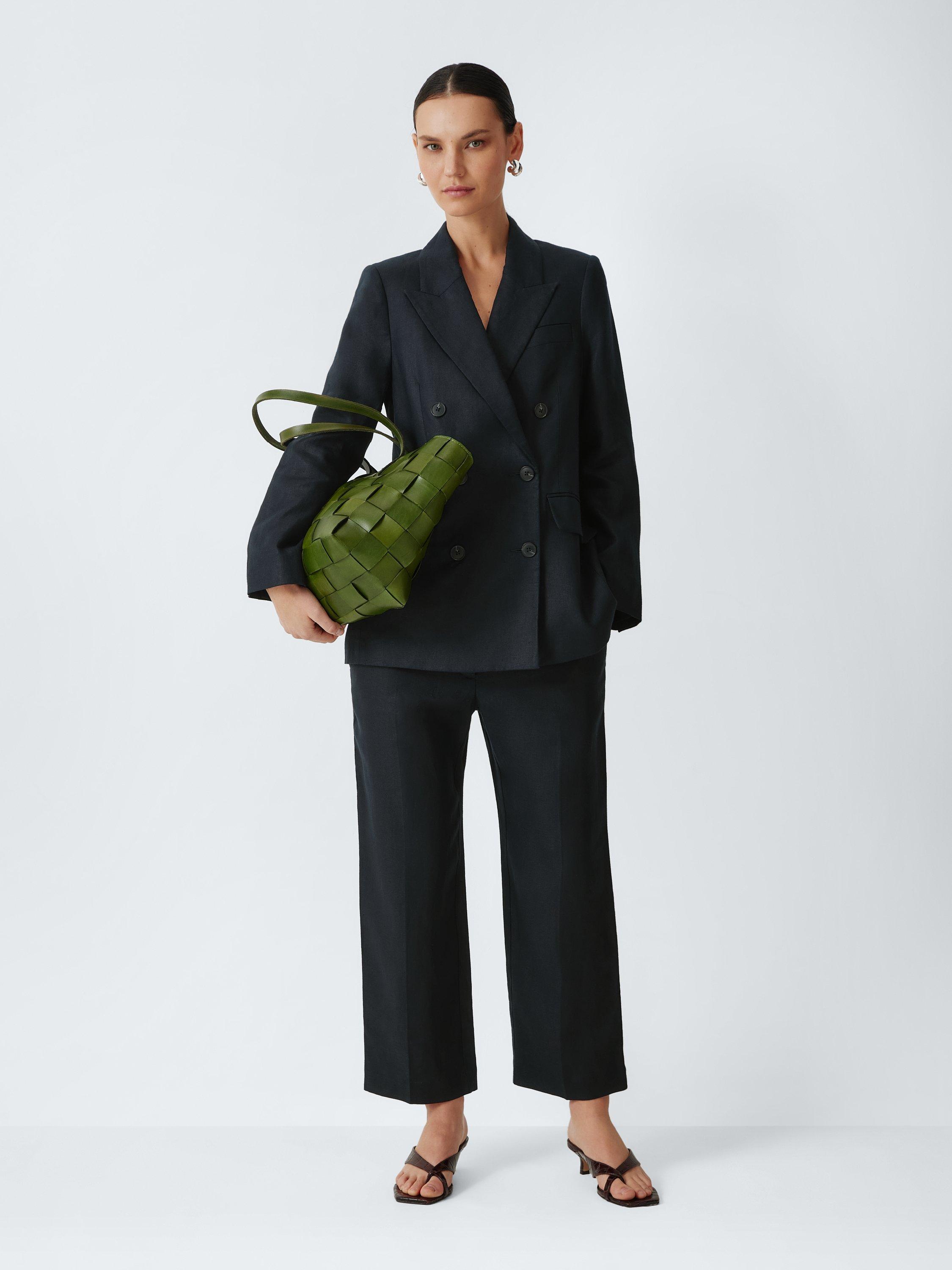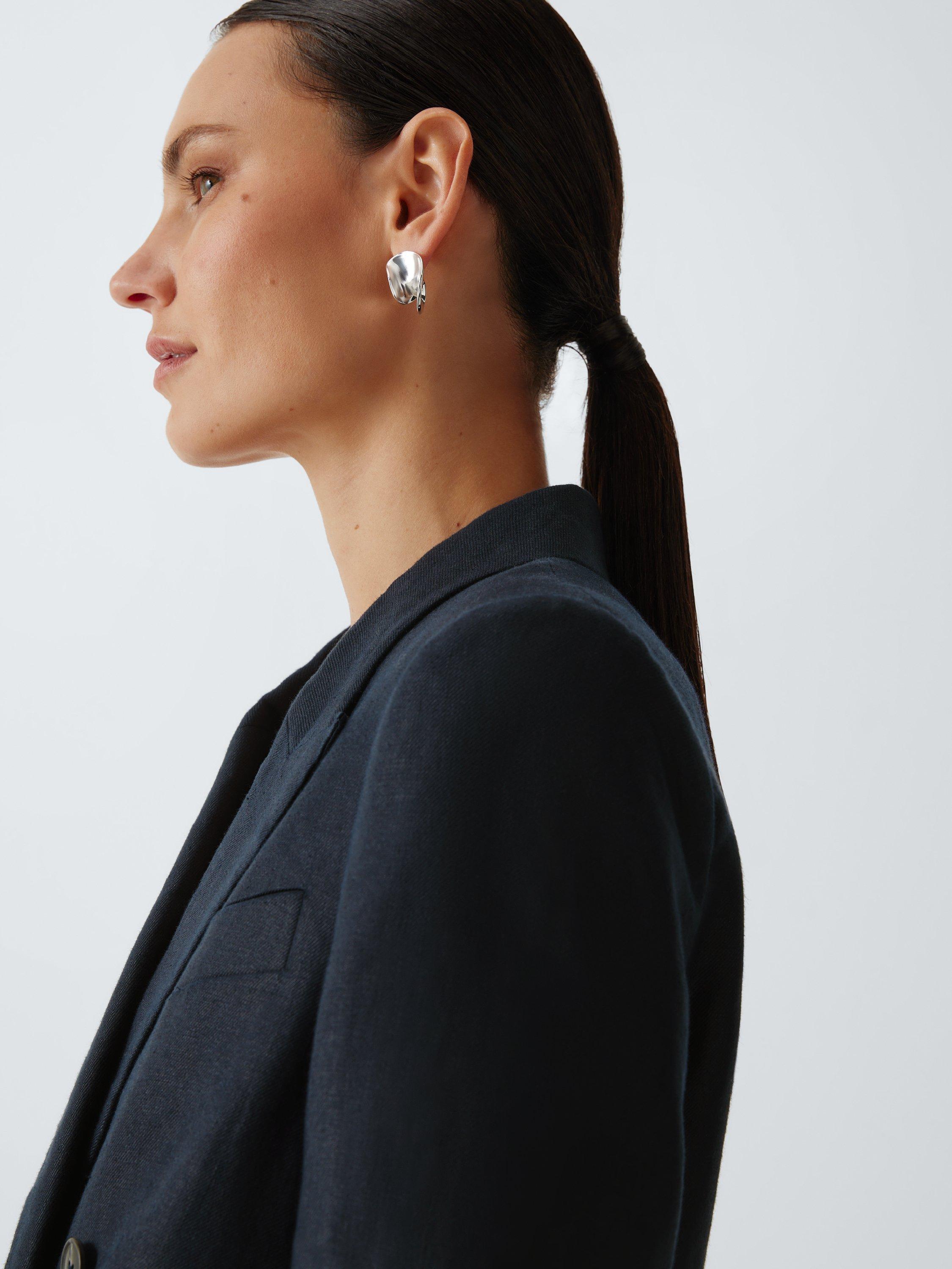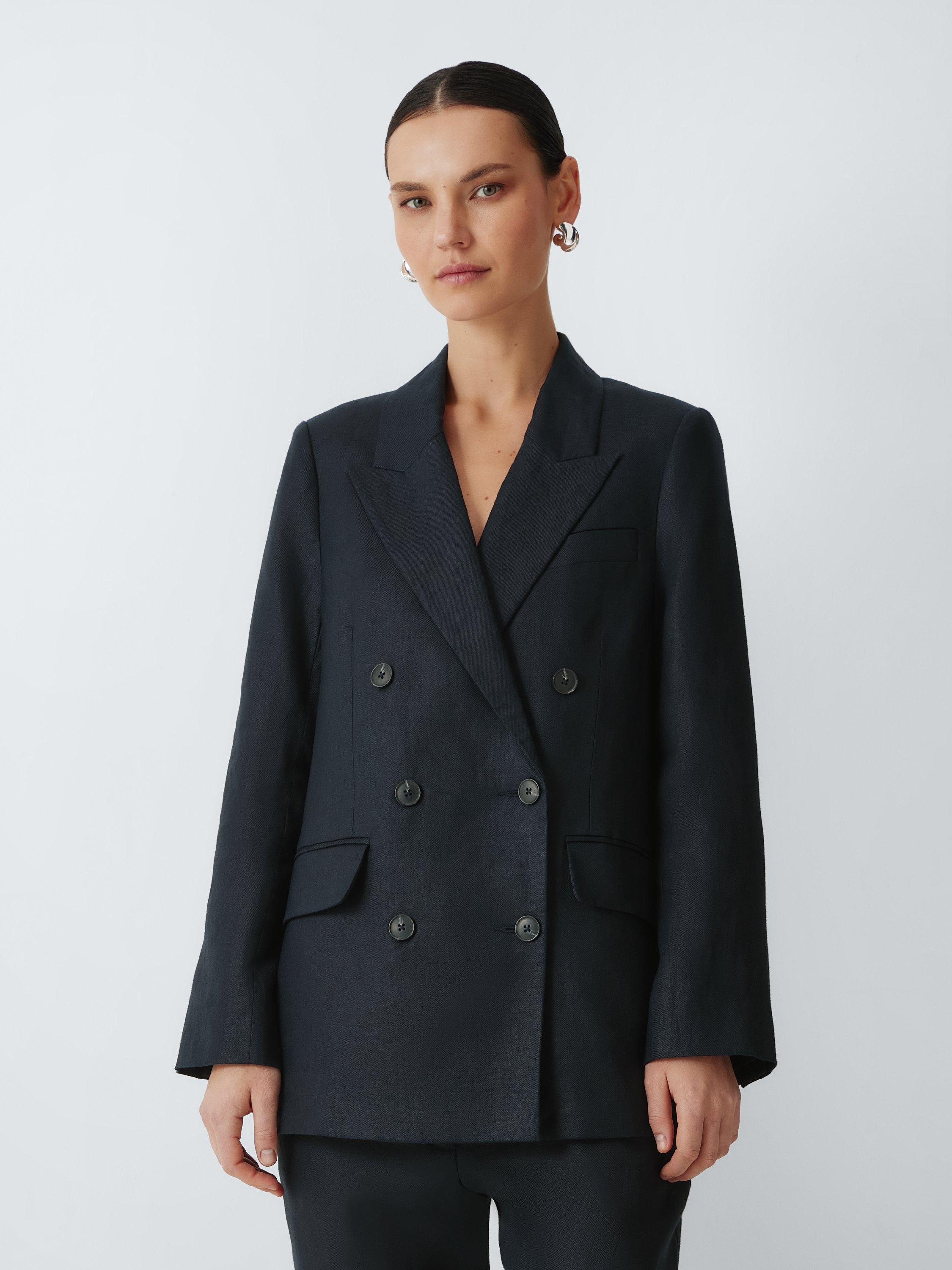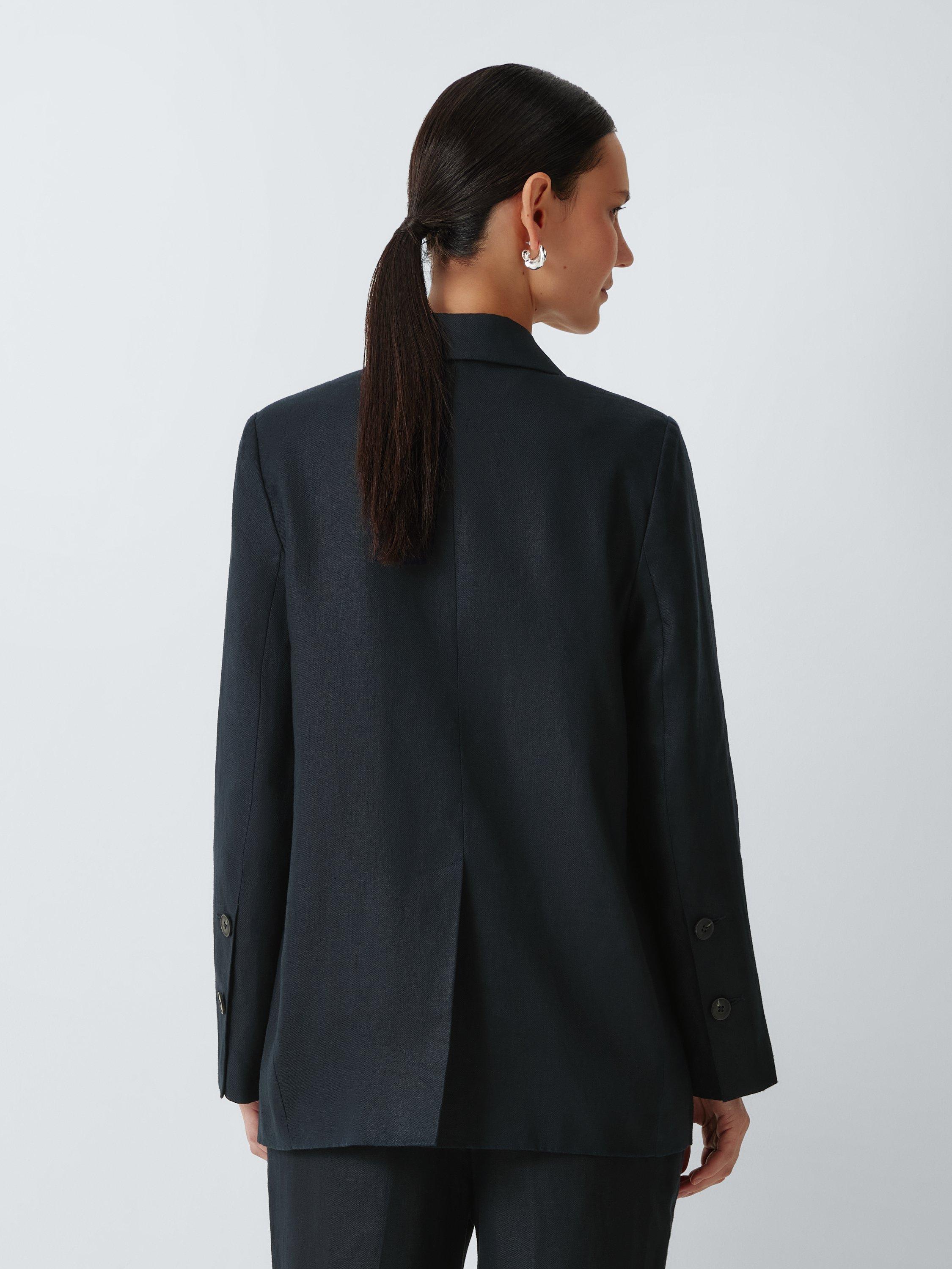 John LewisDouble Breasted Linen Blazer, Dark Navy