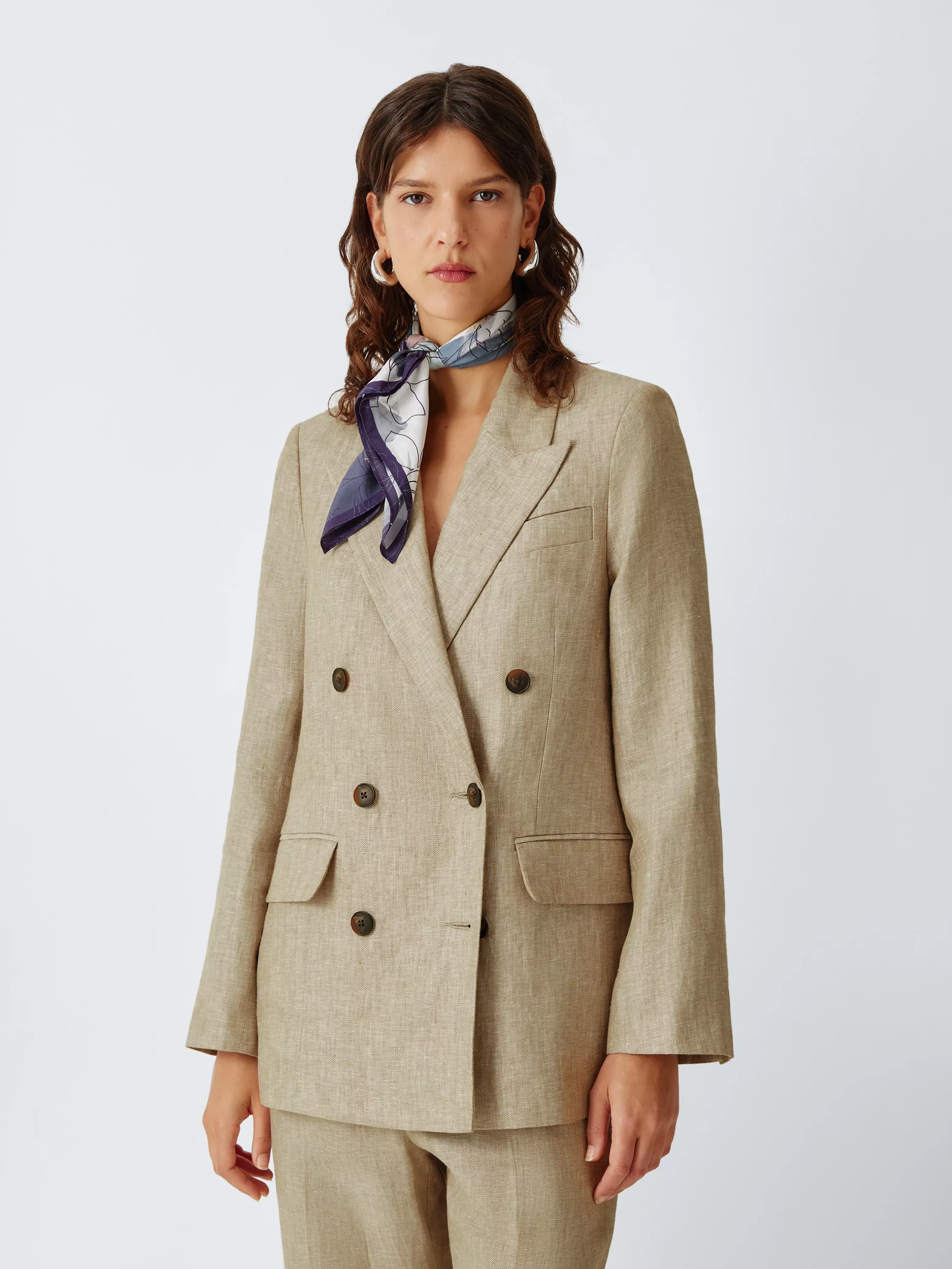 John LewisDouble Breasted Linen Blazer, Natural