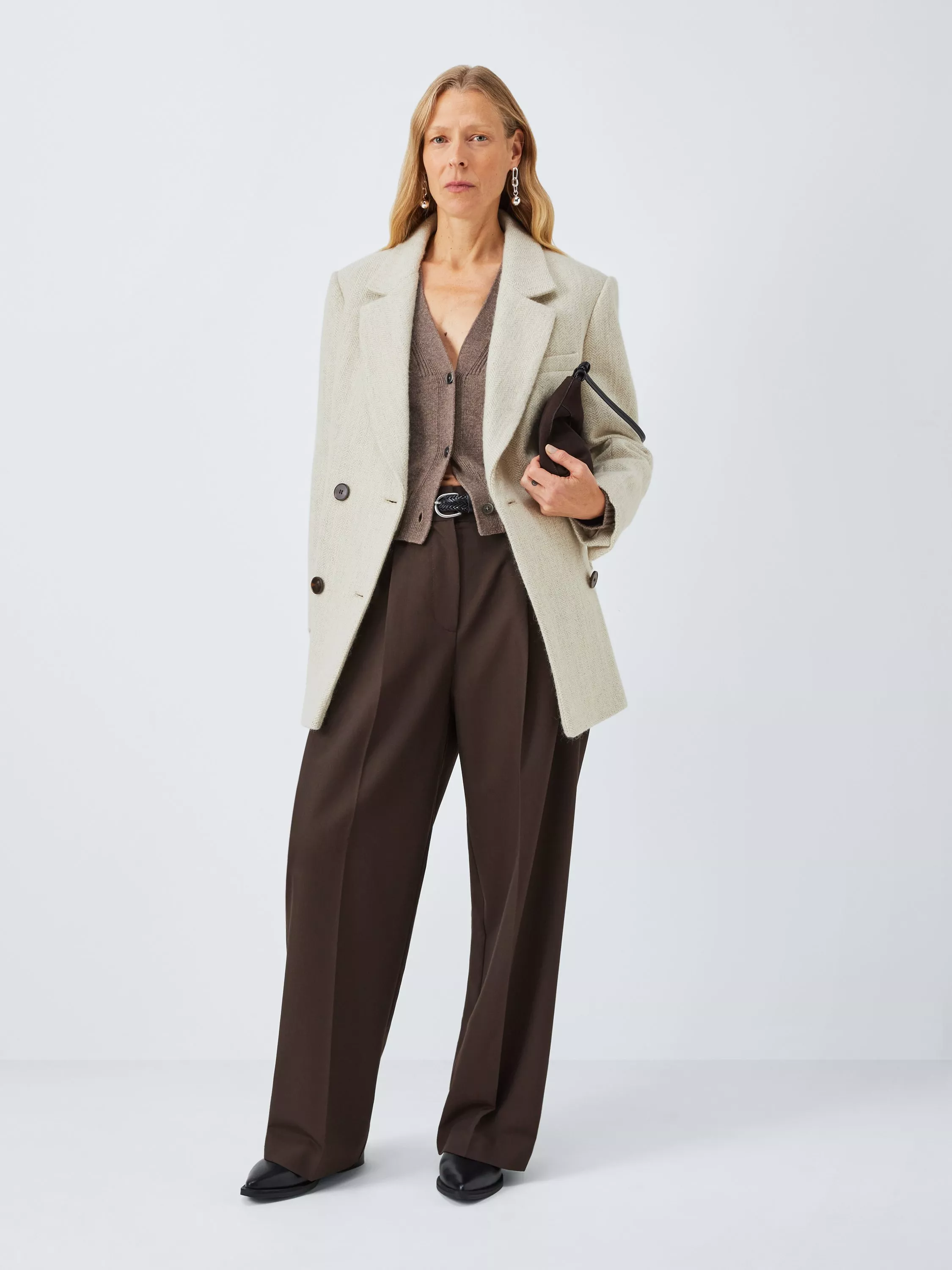 Heritage-inspired blazer for your wardrobe in a classic herringbone pattern, updated in an oversized fit. This double-breasted design features a notch lapel, single welt pocket on the left chest and two flap welt pockets. Lined for comfortable wear, it's made from a fabric blend with naturally temperature-regulating wool for a soft hand feel.