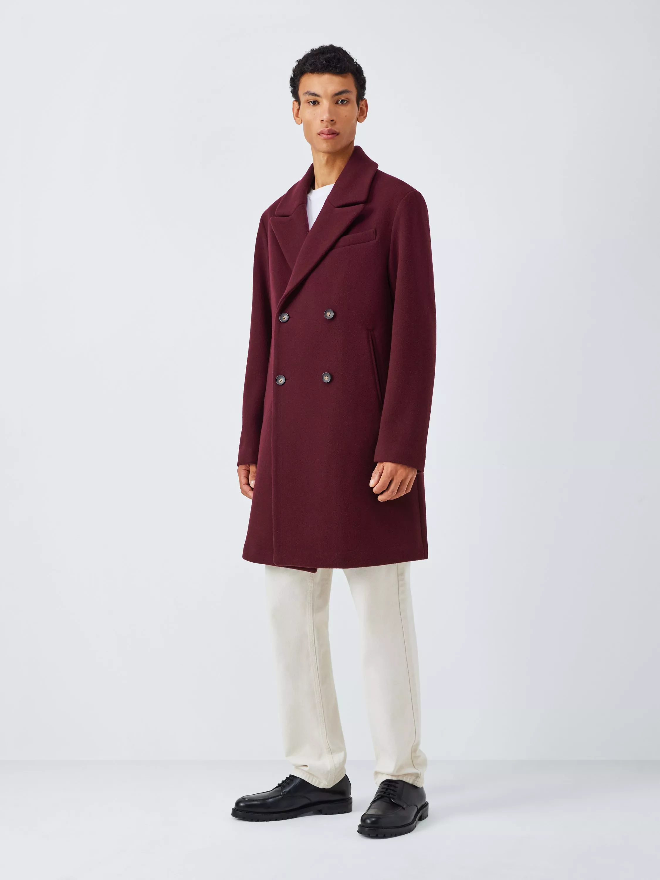 Double-breasted overcoat with a button-down closure, made of a soft, warm wool blend. Styled with two side welt pockets, one angled chest pocket, a notch lapel and a single vent at the back.