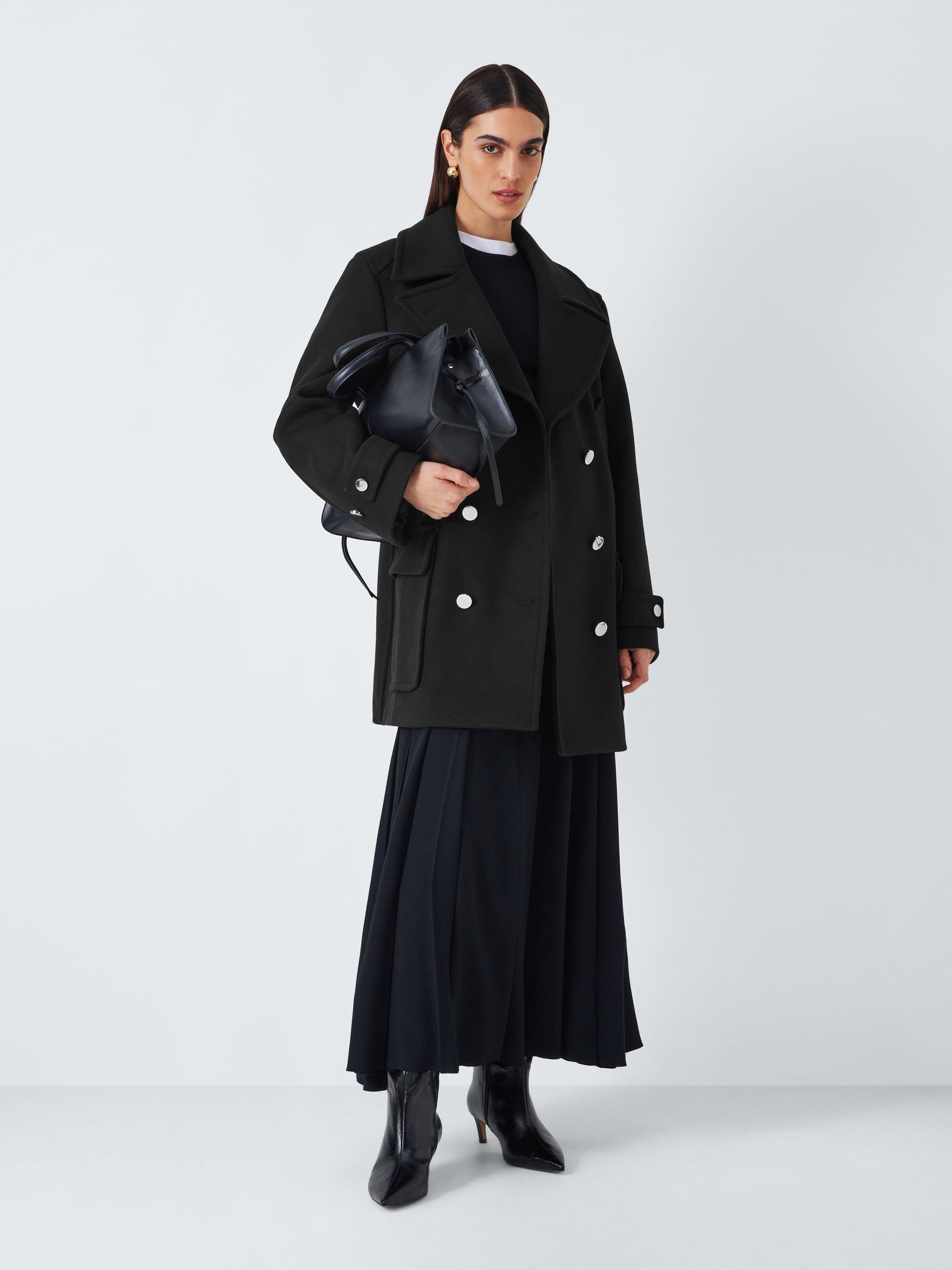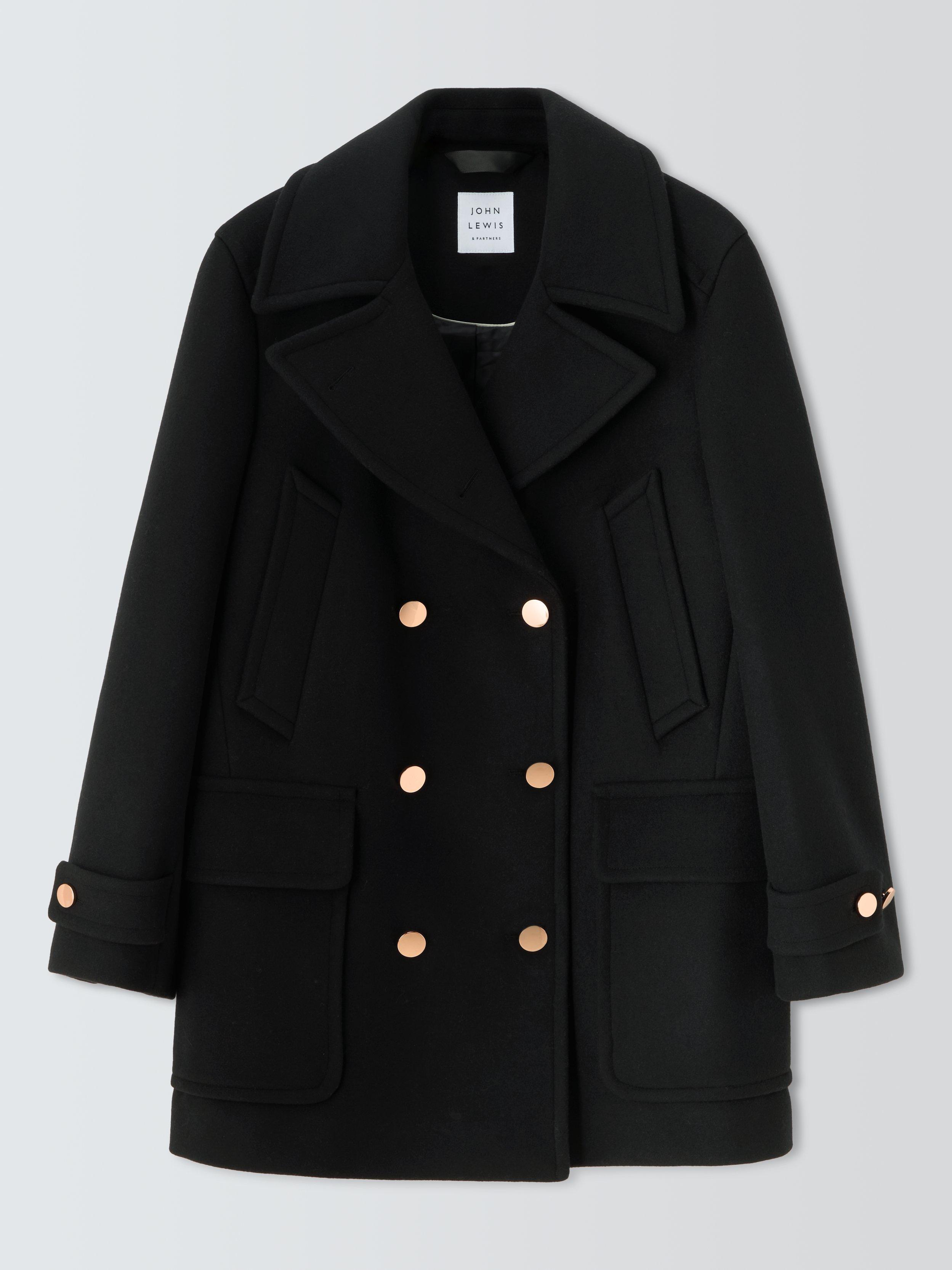 John LewisDouble Breasted Wool Blend Peacoat, Black