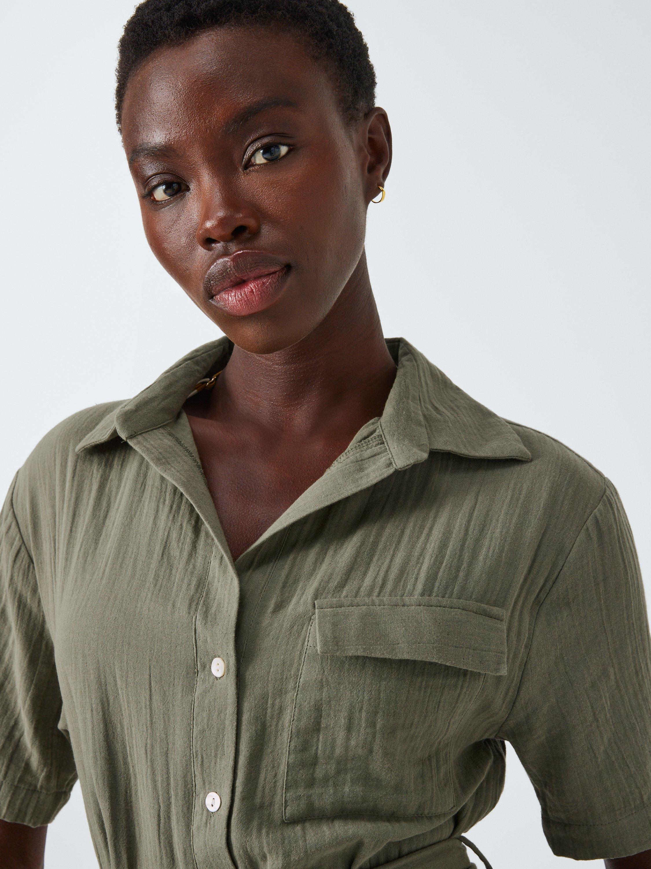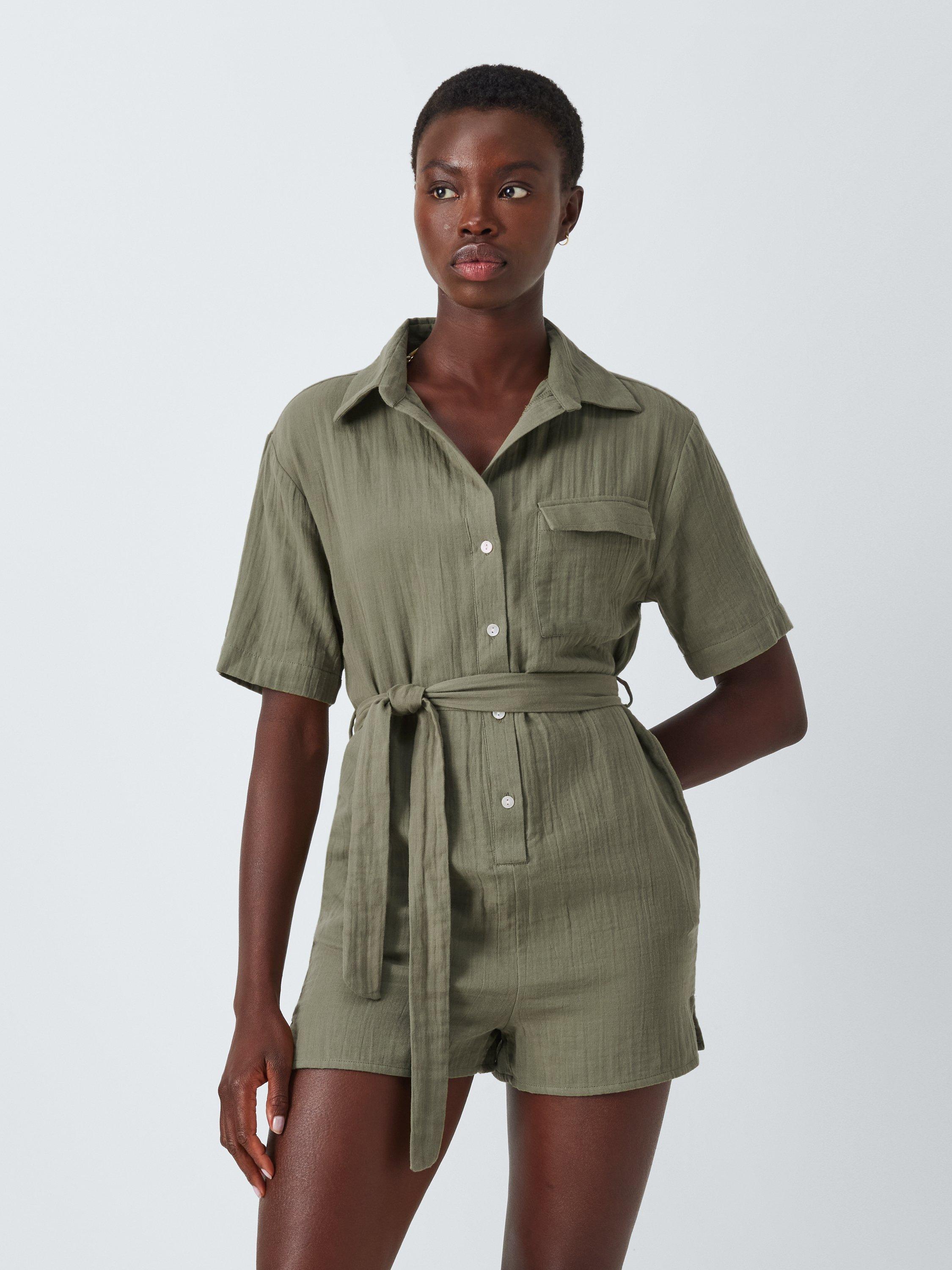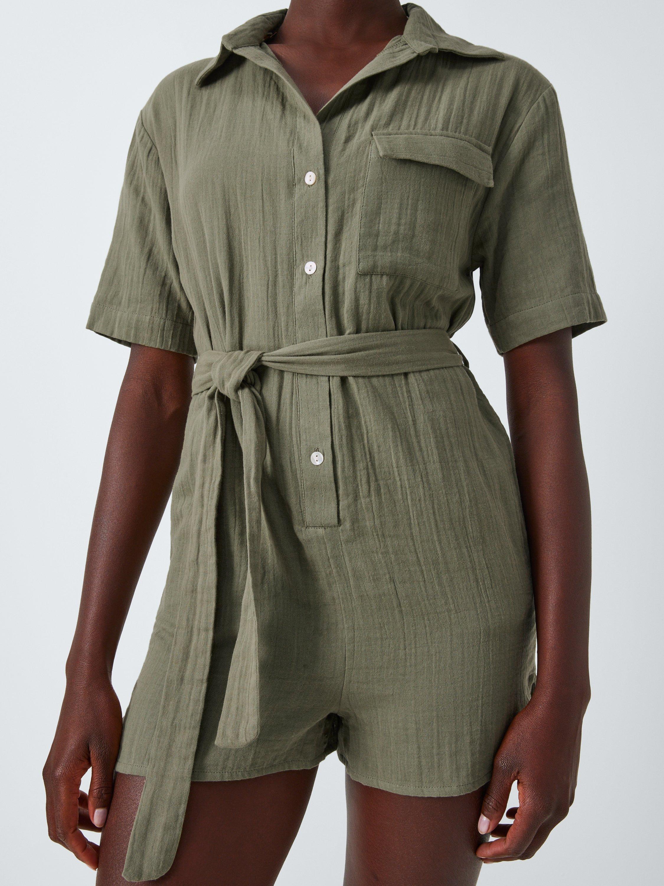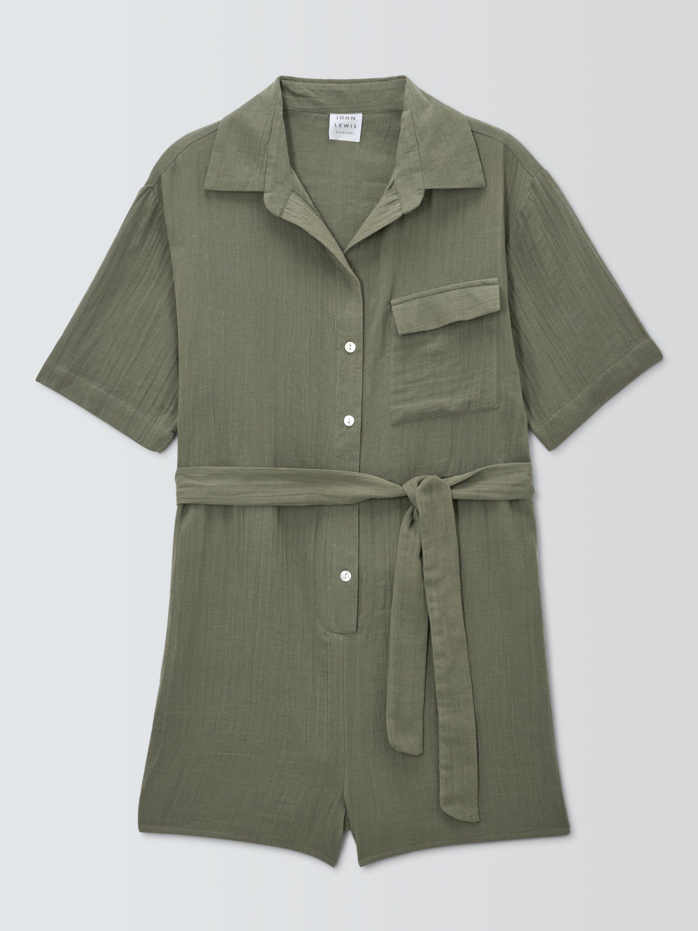 John LewisDouble Cloth Beach Playsuit, Khaki