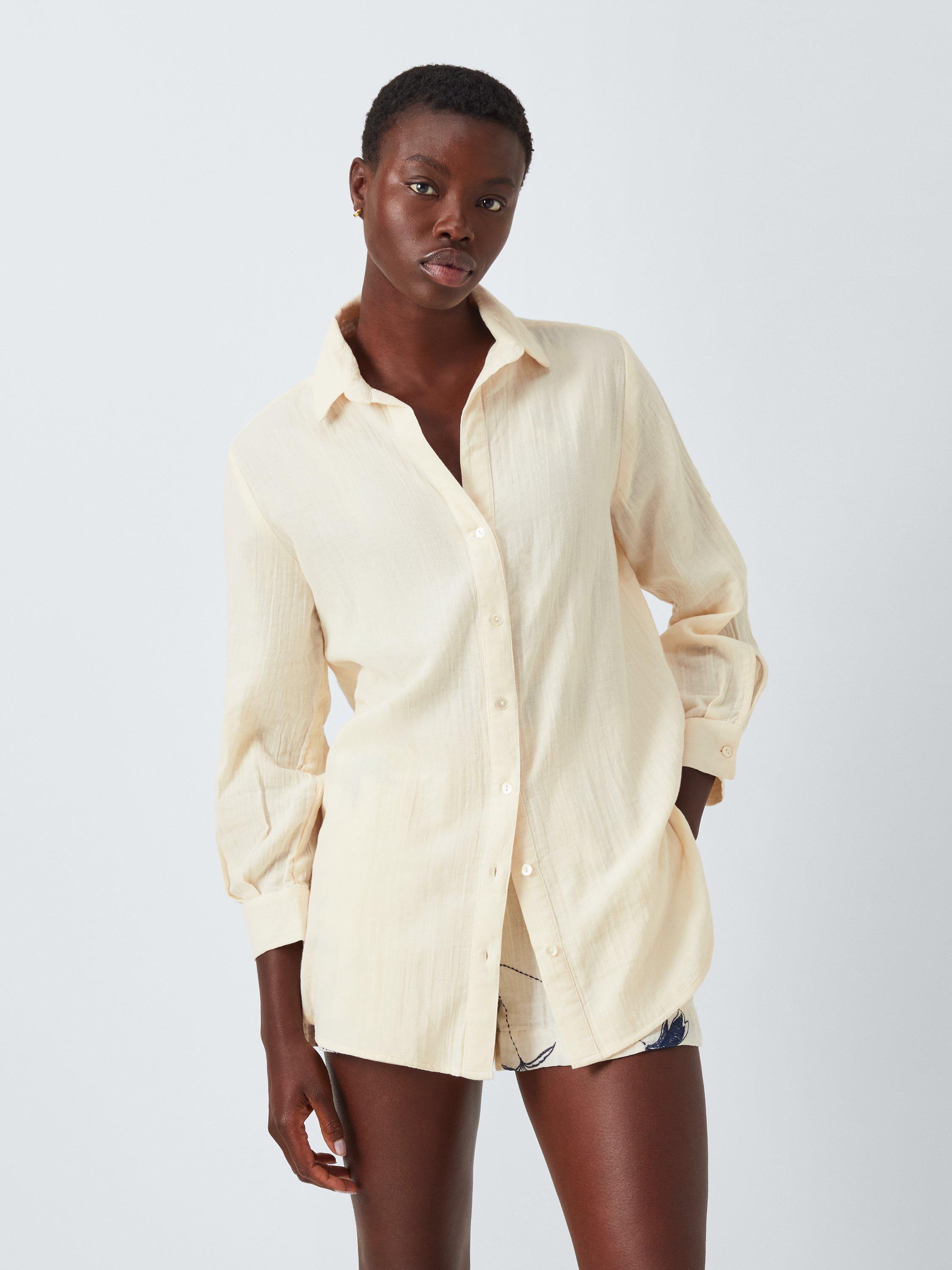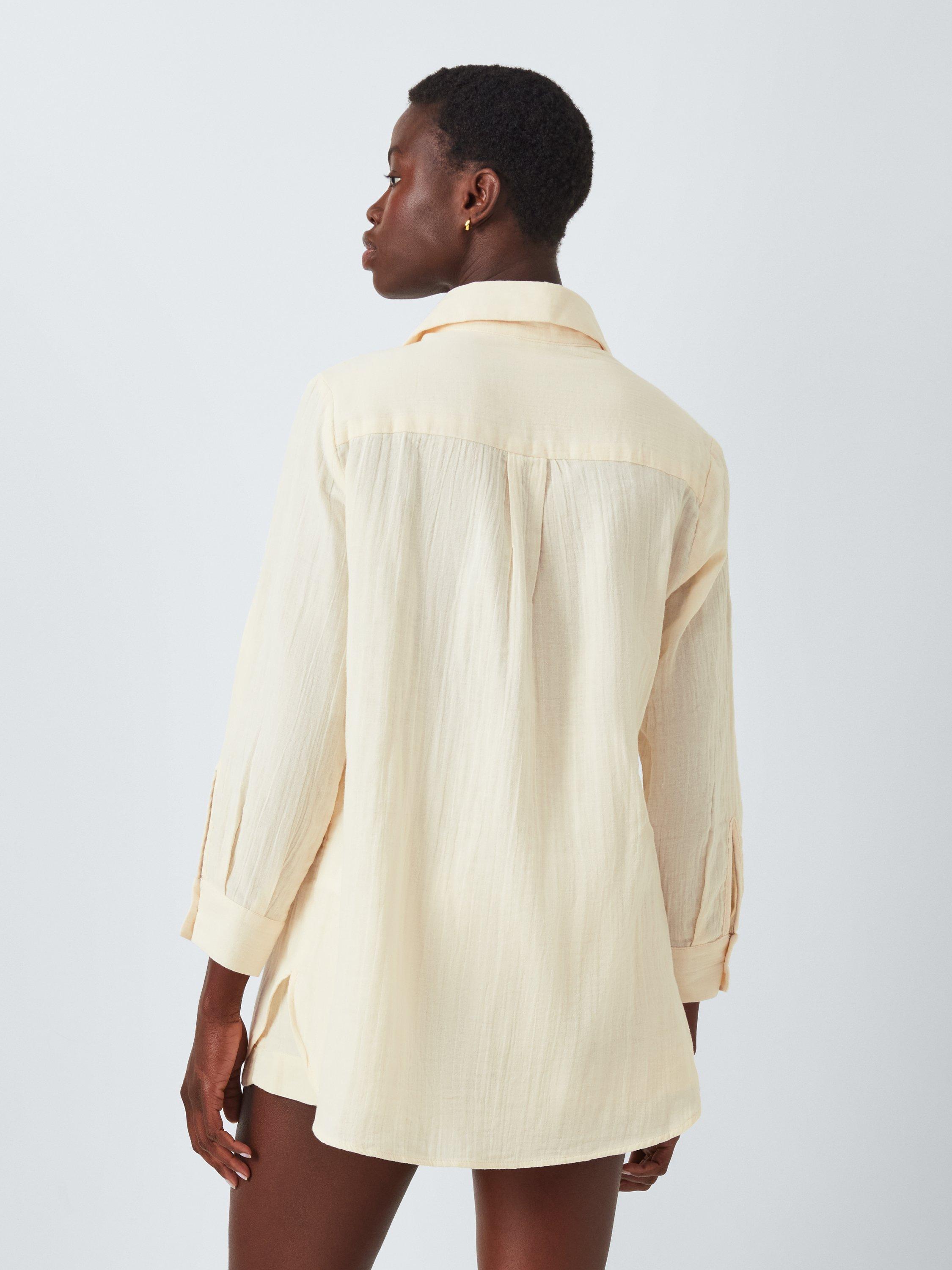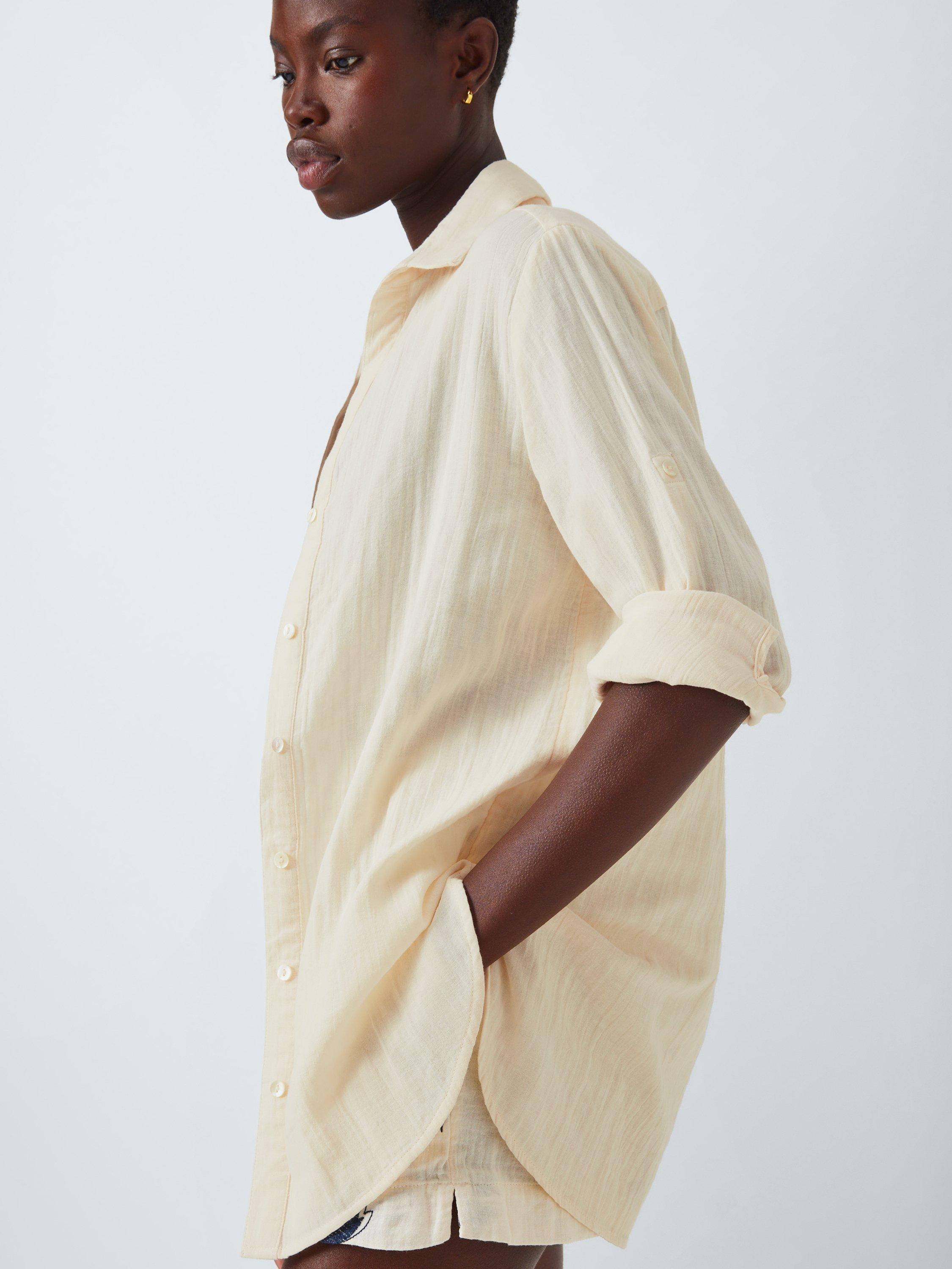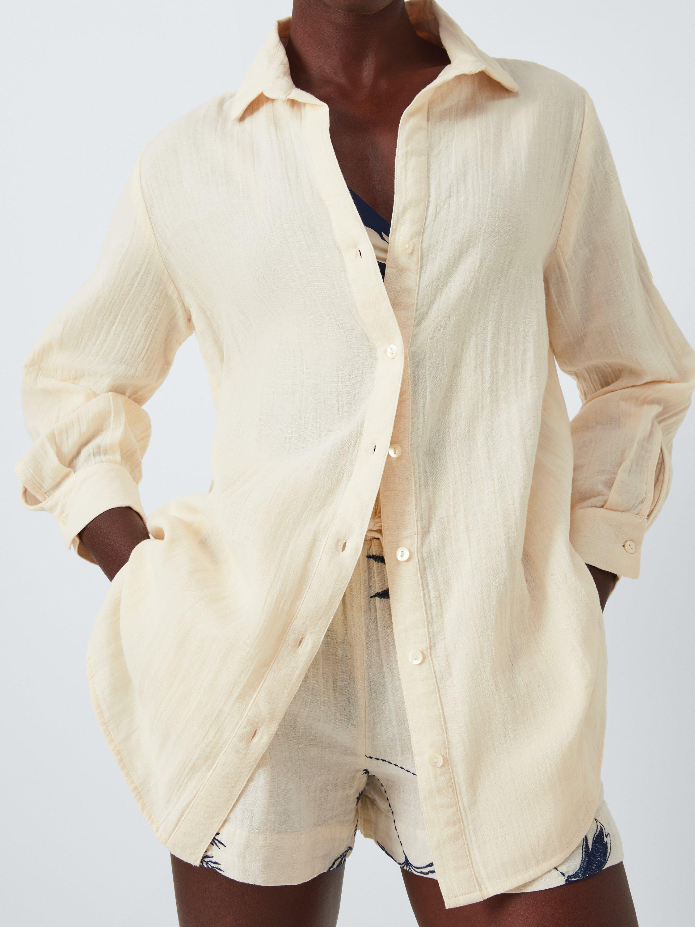 Gorgeously soft and practical for beach days, this longline beach shirt is the perfect cover up to layer over swimwear or wear alone with denim for the bar or evenings out.