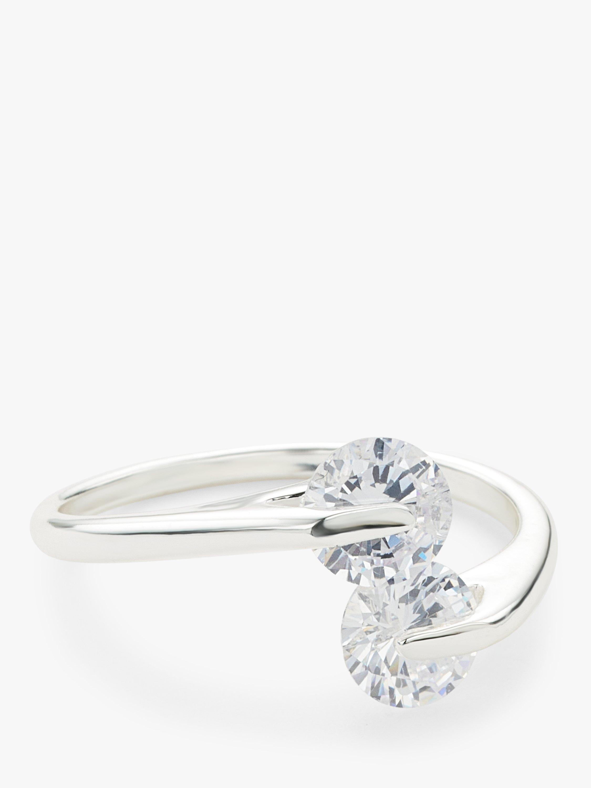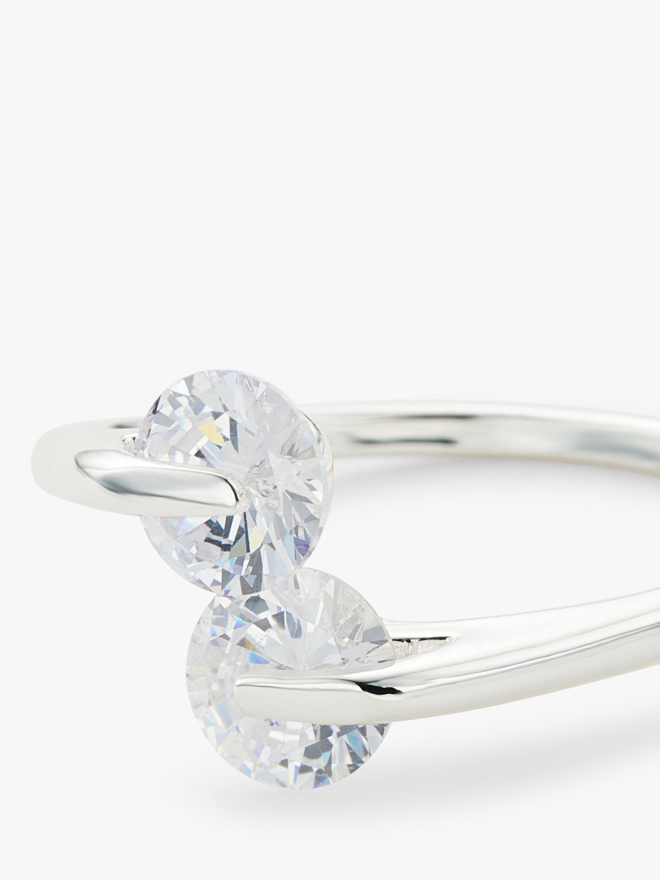 Uniquely designed to give the appearance of floating cubic zirconia gemstones, this ring is an eye-catching statement style. The open-ended shape means, the style can be easily adjusted to fit whichever finger you like.